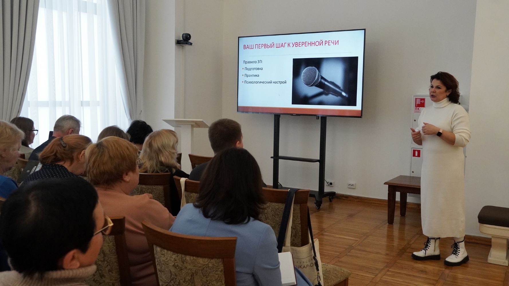 Улучшить ораторские качества экскурсоводы имели возможность на мастер-классе заслуженной артистки Республики Марий Эл Юлии Охотниковой. Голос – это рабочий инструмент экскурсовода, как им работать правильно, как развить технику речи, как увеличить свой диапазон – эти и многие другие вопросы раскрыла Юлия Владимировна. Все практические советы тут же были опробованы и закреплены слушателями.