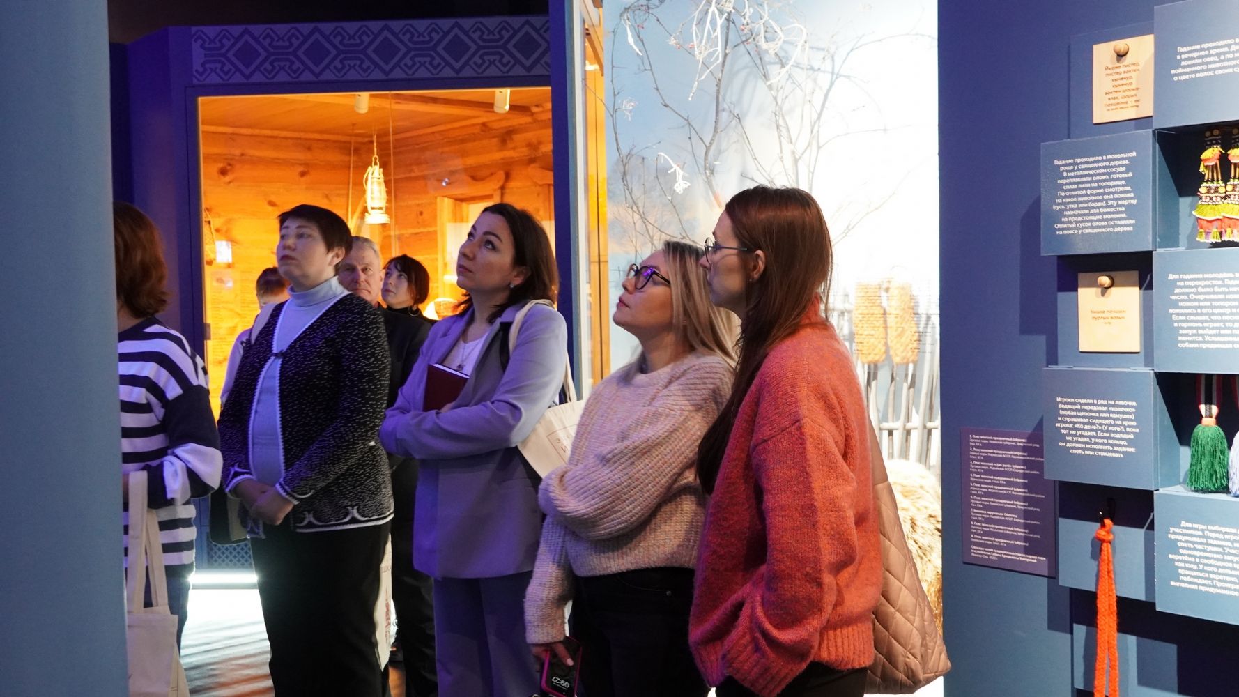 В этот день экскурсоводы стали экскурсантами. Экскурсию по обновленной экспозиции «Земля, рождённая небом» для гостей провела Диана Ефремова.