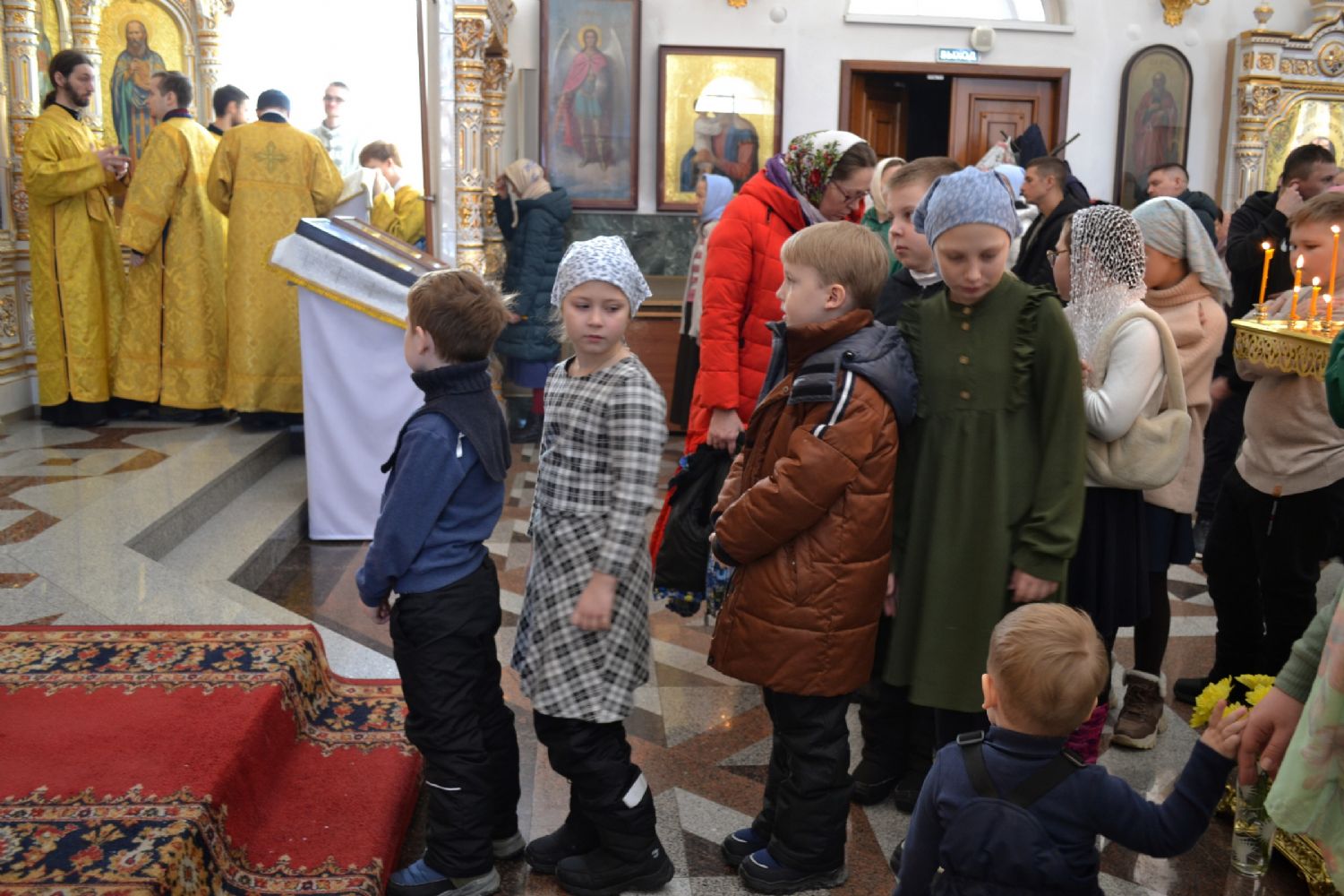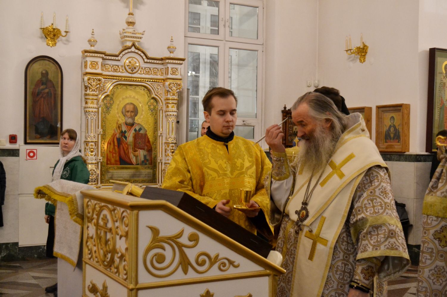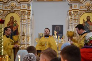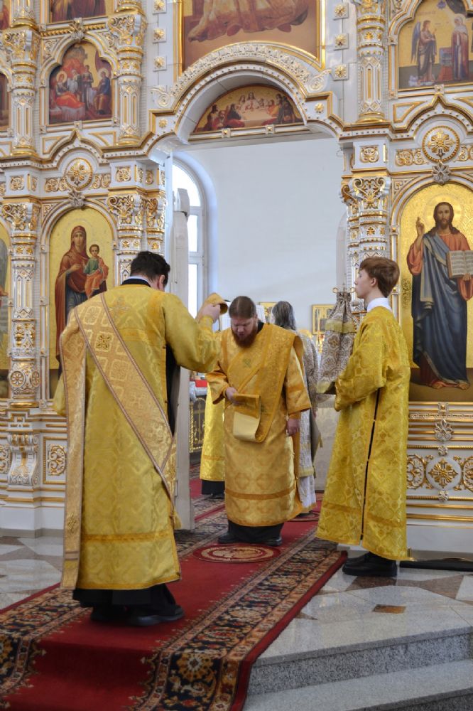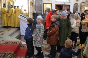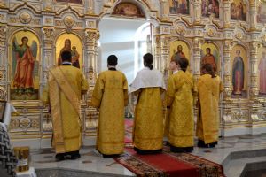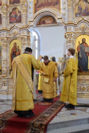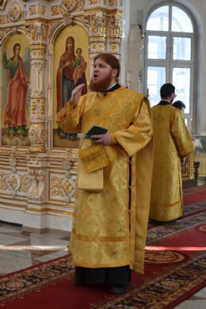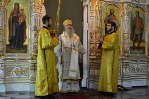 За всенощным бдением Его Высокопреосвященству сослужили секретарь Йошкар-Олинского епархиального управления иеромонах Серафим (Пасанаев), настоятель собора иерей Андрей Кочаков и клирики собора. За Литургией – духовенство собора и клирик Благовещенского кафедрального собора диакон Андрей Дружинин. Песнопения исполнял хор Воскресенского собора под управлением Алисы Вылегжаниной.