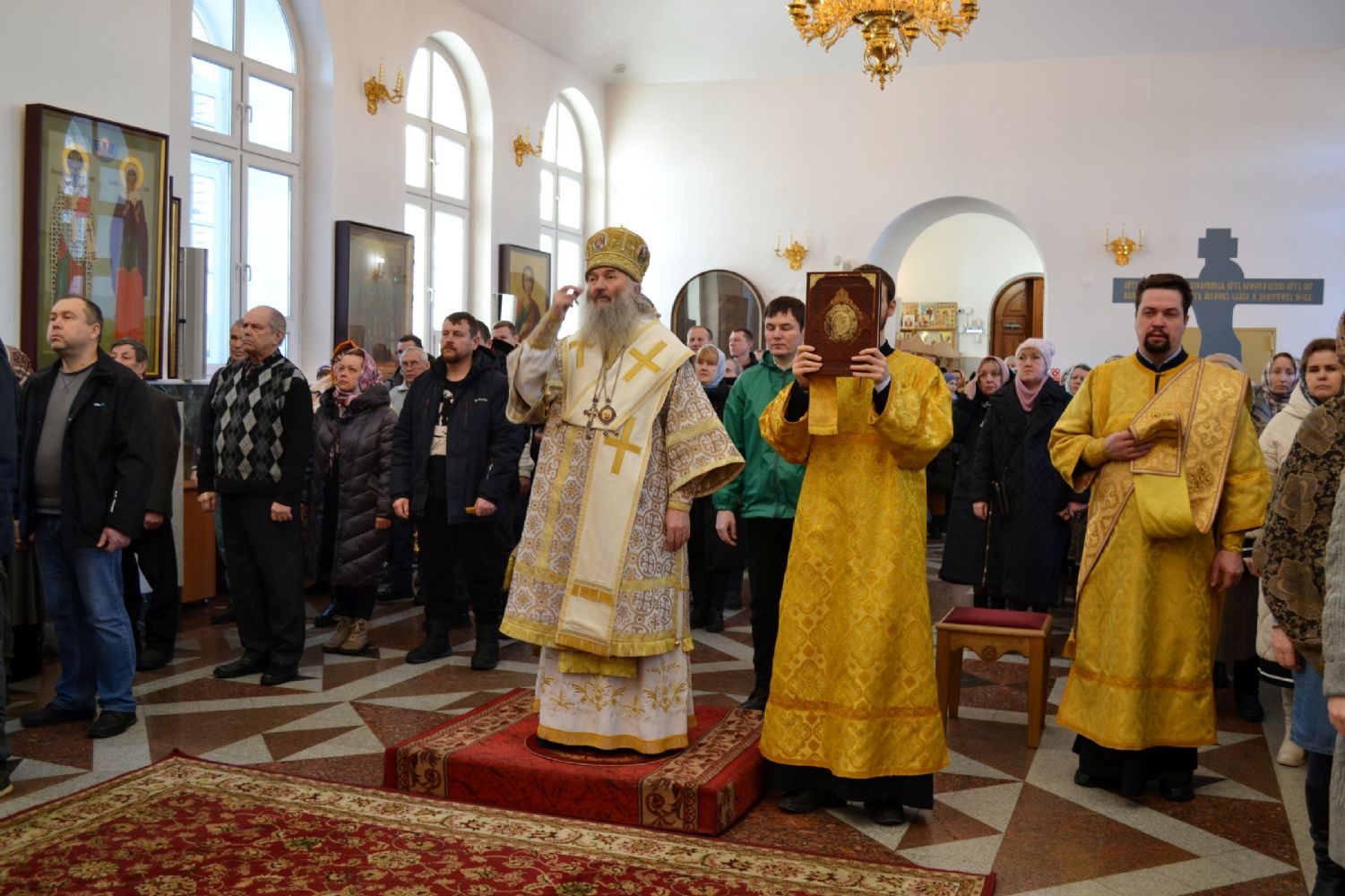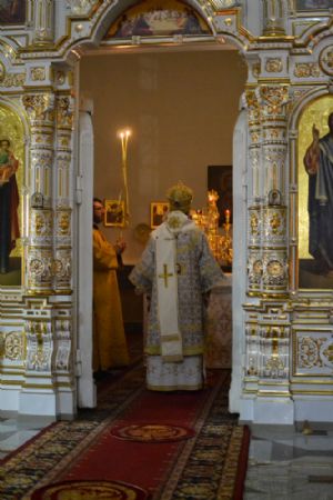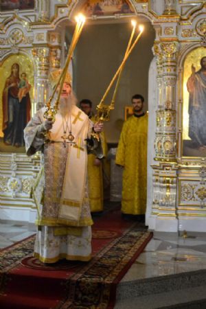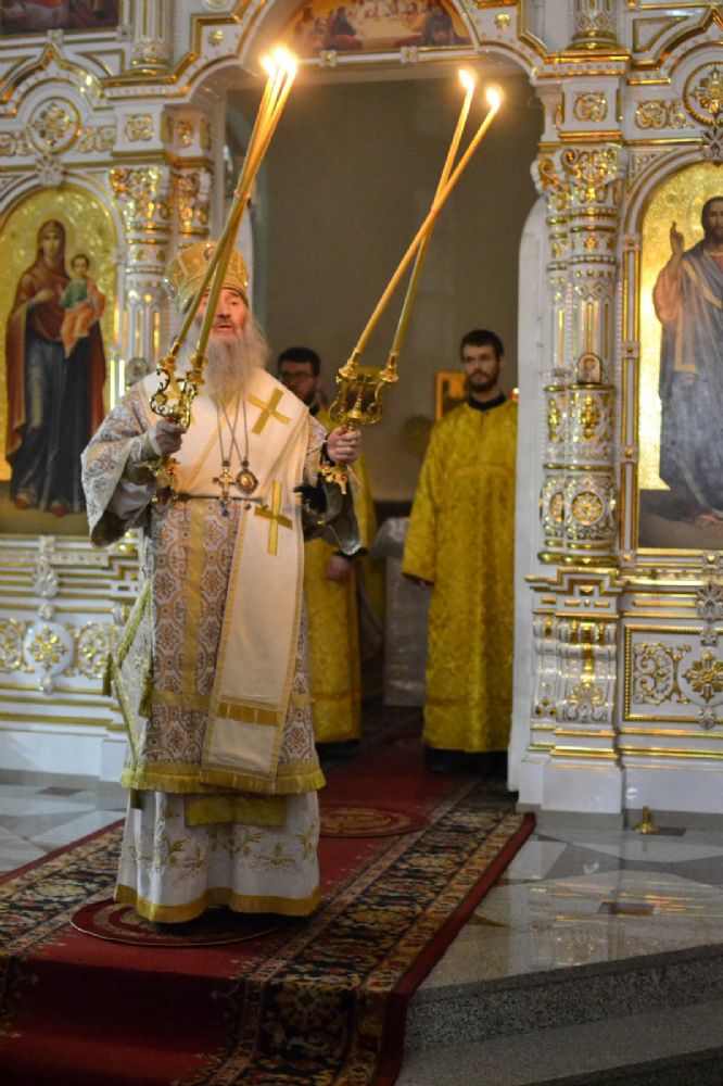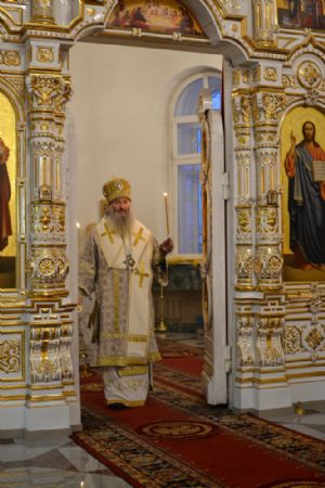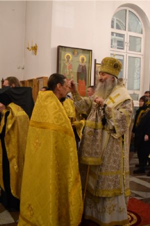 После чтения евангельской притчи о мытаре и фарисее архипастырь обратился к верующим с проповедью.
