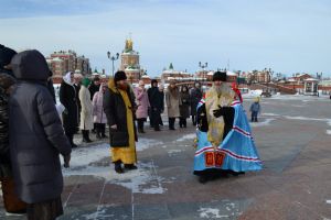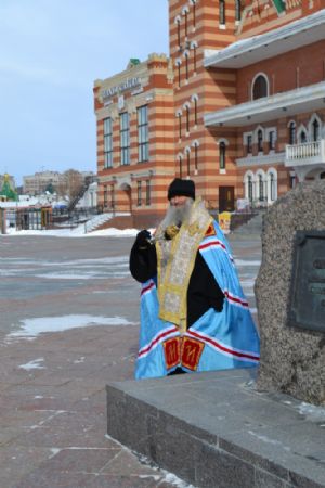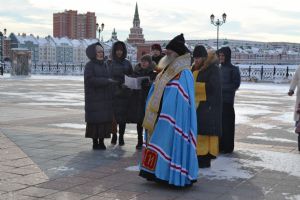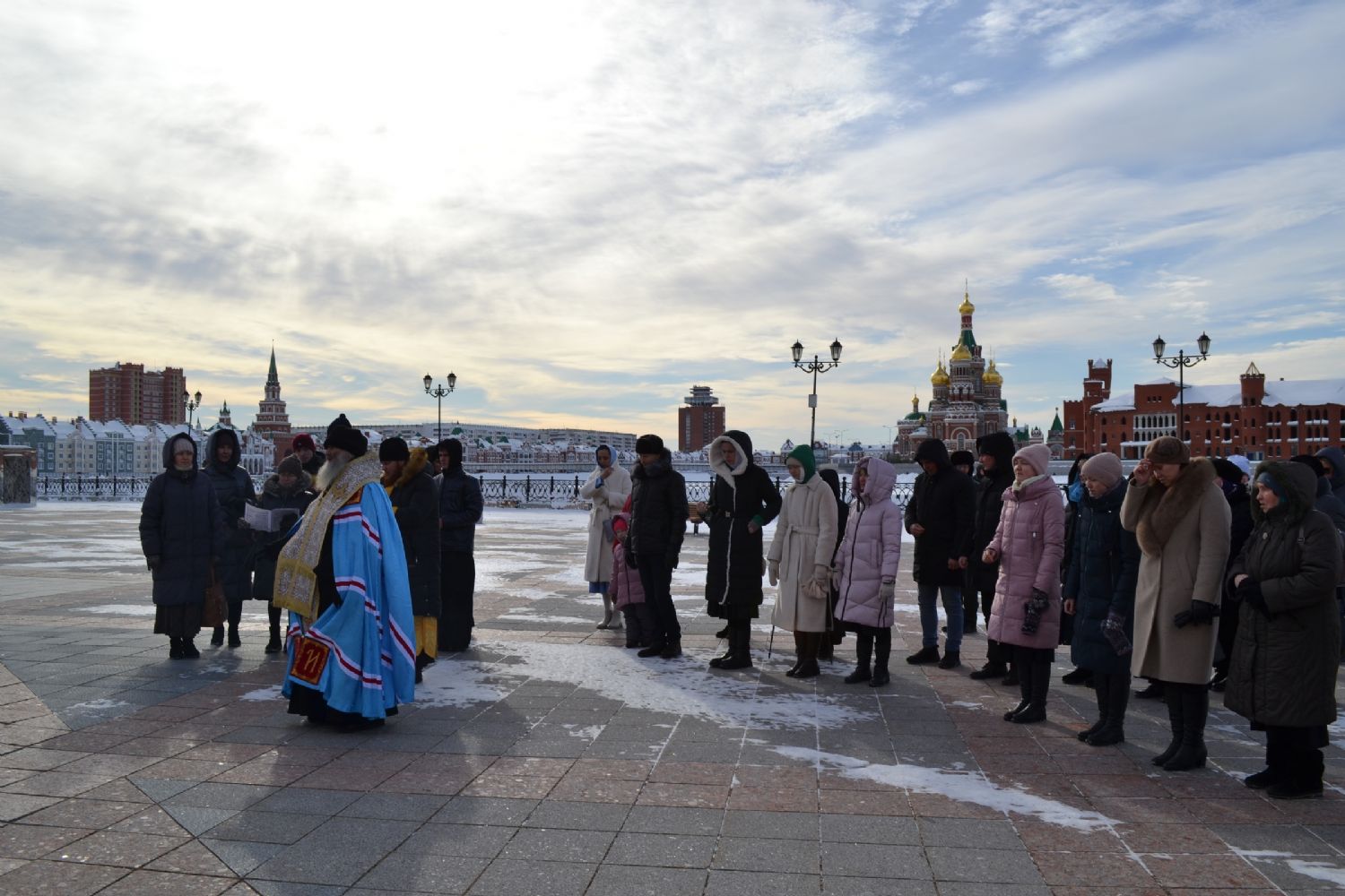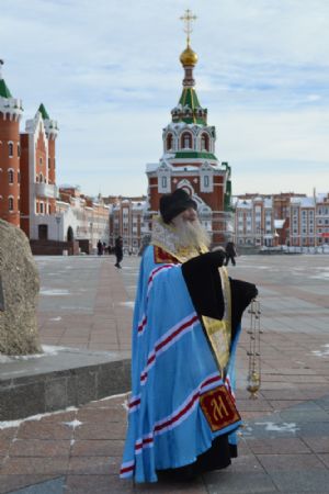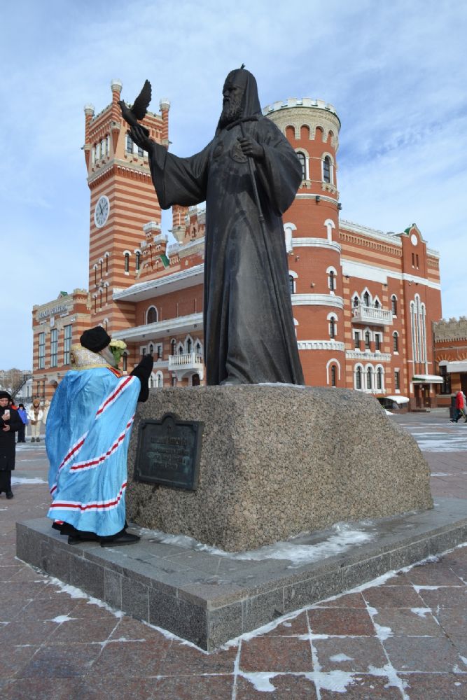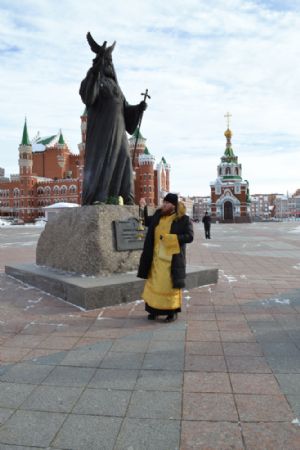 Затем верующие прошли к памятнику Святейшему на Патриаршей площади Йошкар-Олы, где митрополит Иоанн в сослужении диакона Андрея Дружинина совершил заупокойную литию и возложил цветы к подножию памятника.