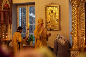 Его Преосвященству сослужили клирики собора, песнопения исполнял архиерейский хор под управлением Любови Михеевой.