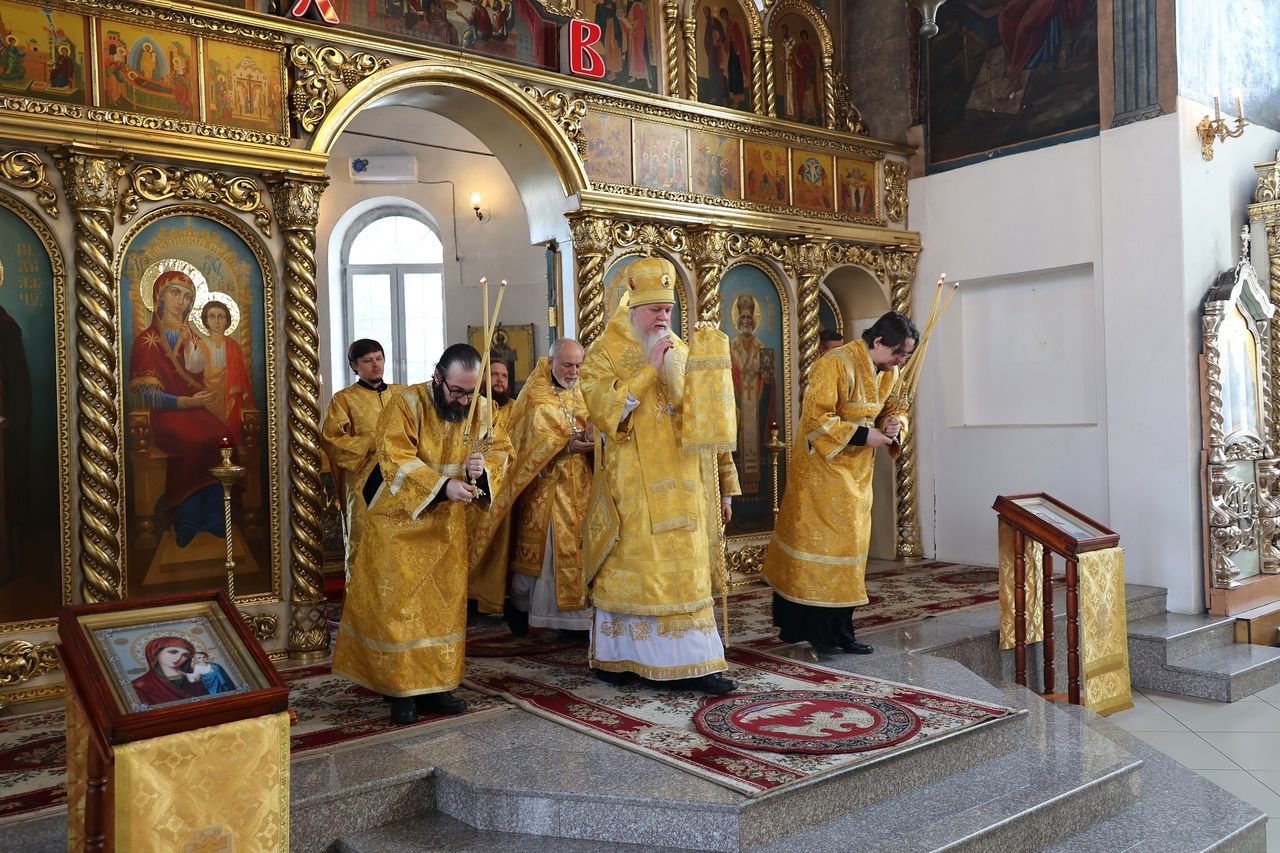 25 февраля, в Неделю о мытаре и фарисее, епископ Волжский и Сернурский Феофан совершил Божественную литургию, а накануне вечером всенощное бдение в Никольском кафедральном соборе г. Волжска.