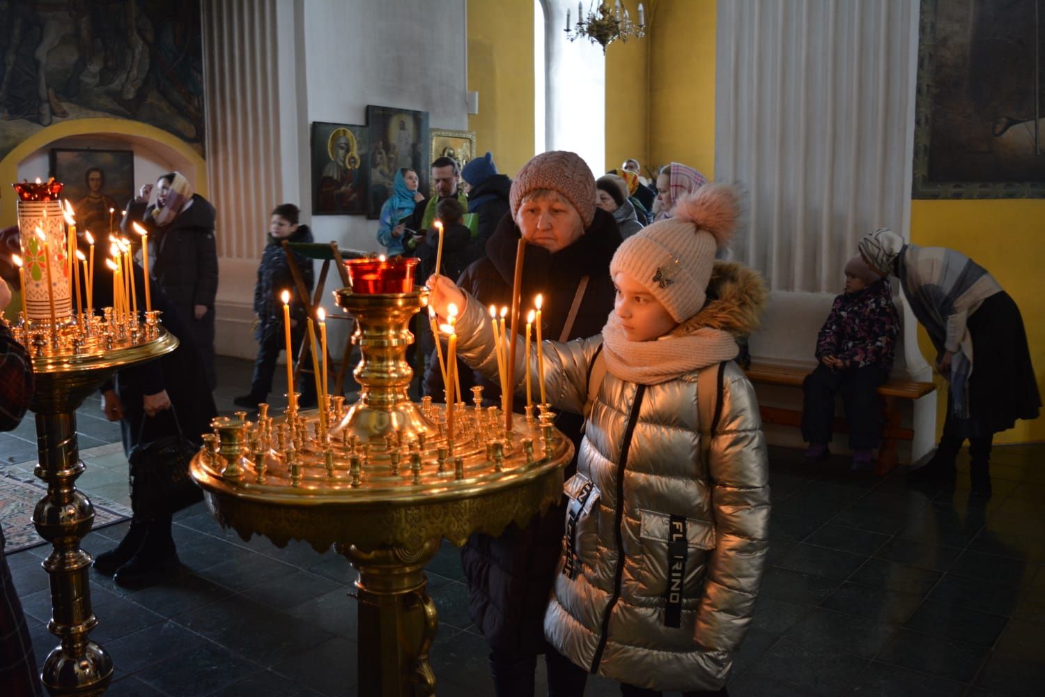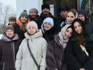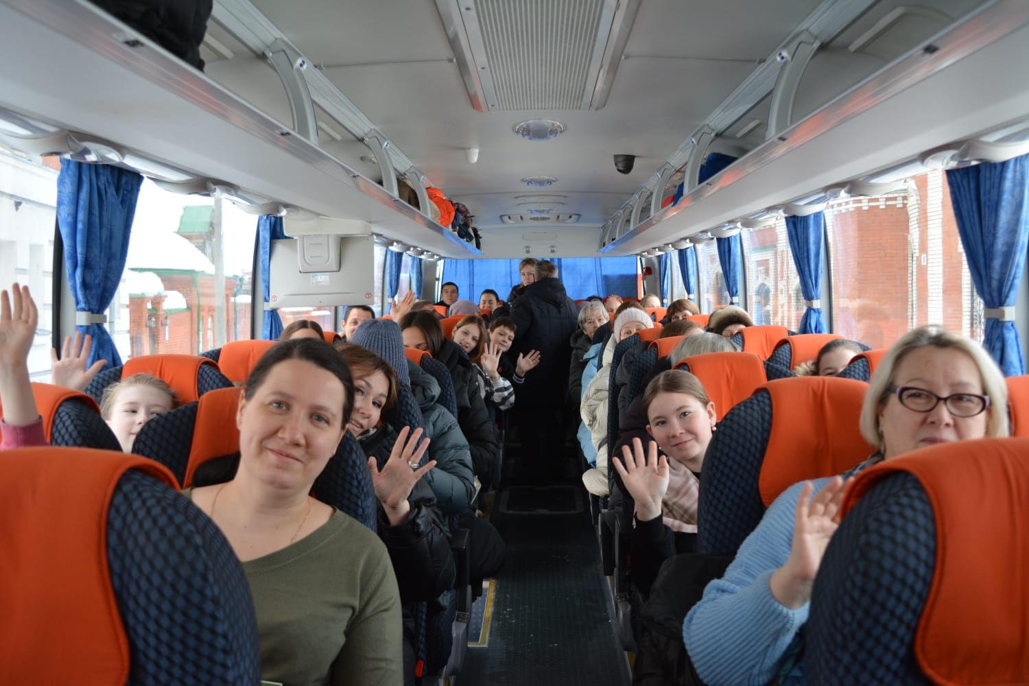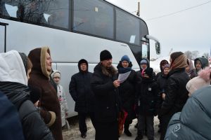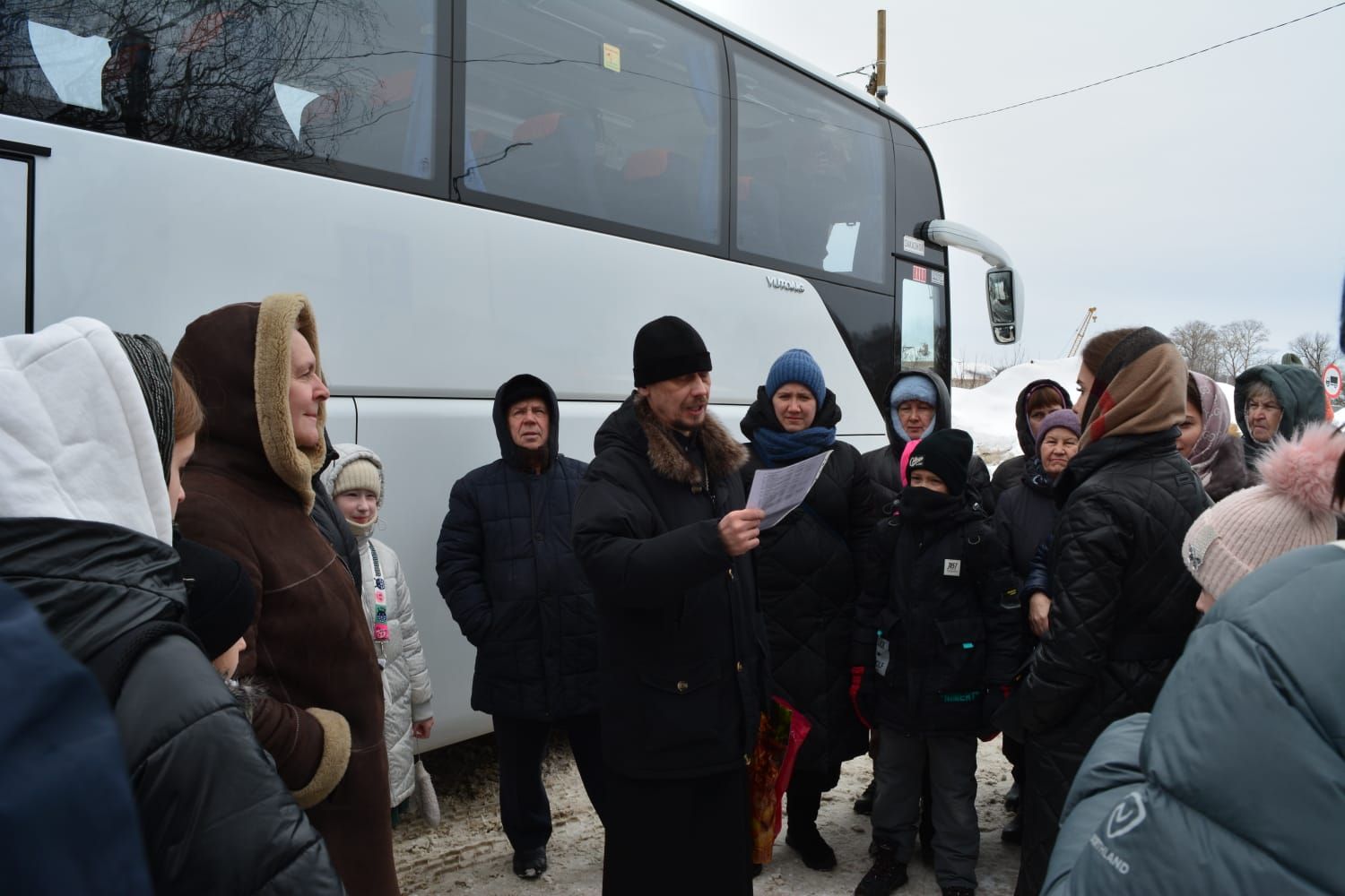 С утра 23 февраля учащиеся, их родители и педагоги, а также пожелавшие присоединиться к поездке прихожане собрались в Воскресенском соборе, где настоятель иерей Андрей Кочаков отслужил молебен о путешествующих. И паломники на большом комфортабельном автобусе двинулись в путь.