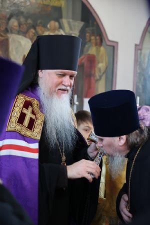 По окончании Литургии епископ Феофан обратился к присутствующим с архипастырским словом, напомнив о празднуемом в этот день святом – апостоле от 77-ти Онисиме, который был одним из ближайших друзей апостола Павла и его соработником в проповеди слова Божия.