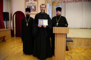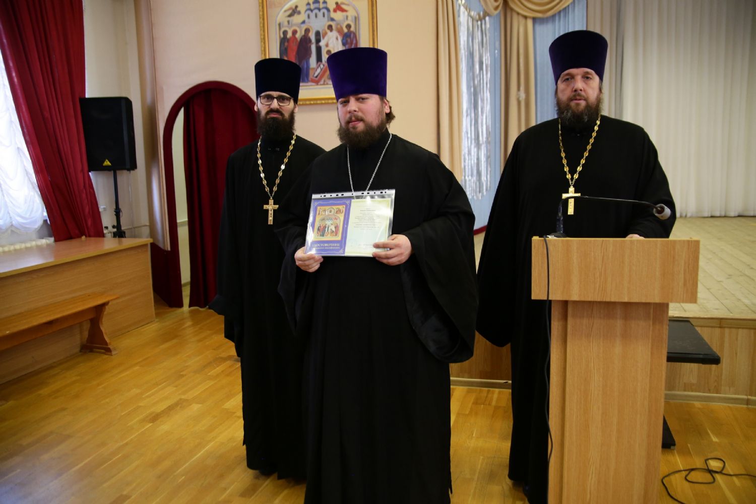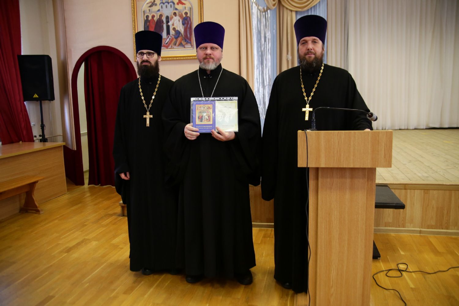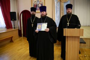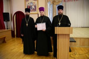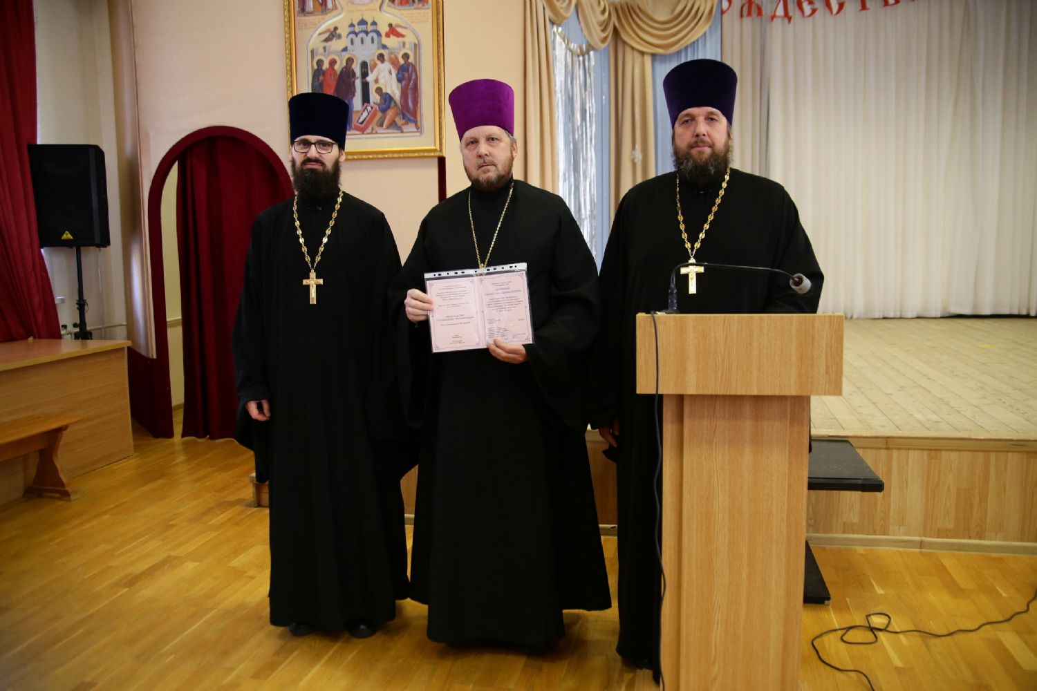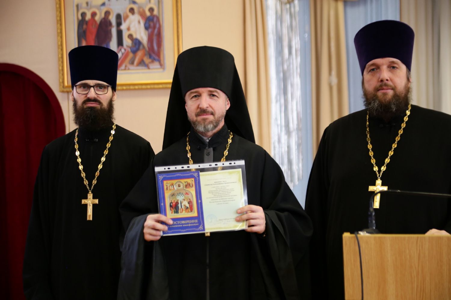 Далее в актовом зале Православного центра протоиерей Андрей Норкин вручил всем окончившим курсы клирикам свидетельства о повышении квалификации.