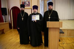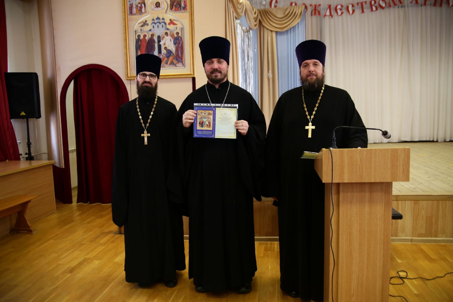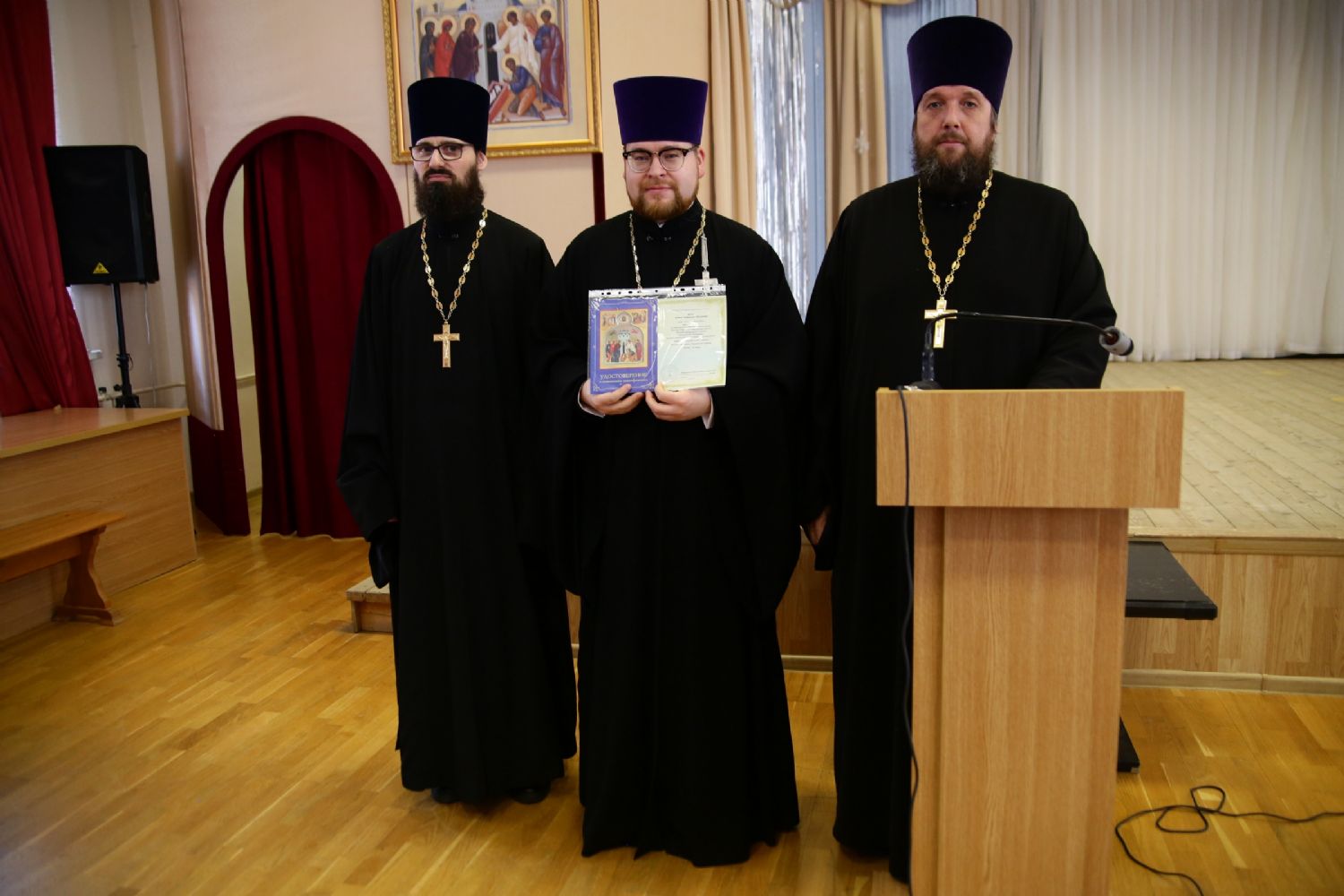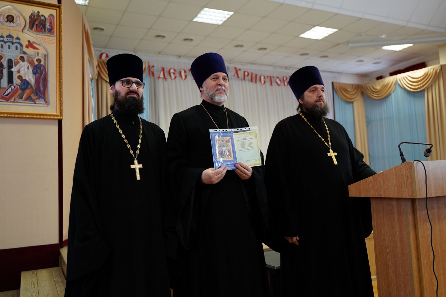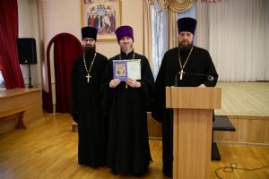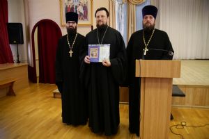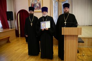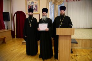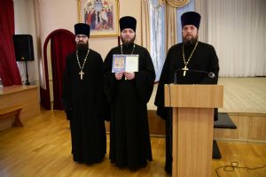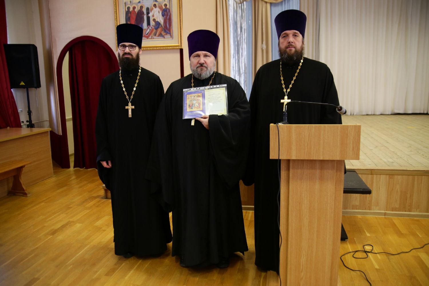 Далее в актовом зале Православного центра протоиерей Андрей Норкин вручил всем окончившим курсы клирикам свидетельства о повышении квалификации.