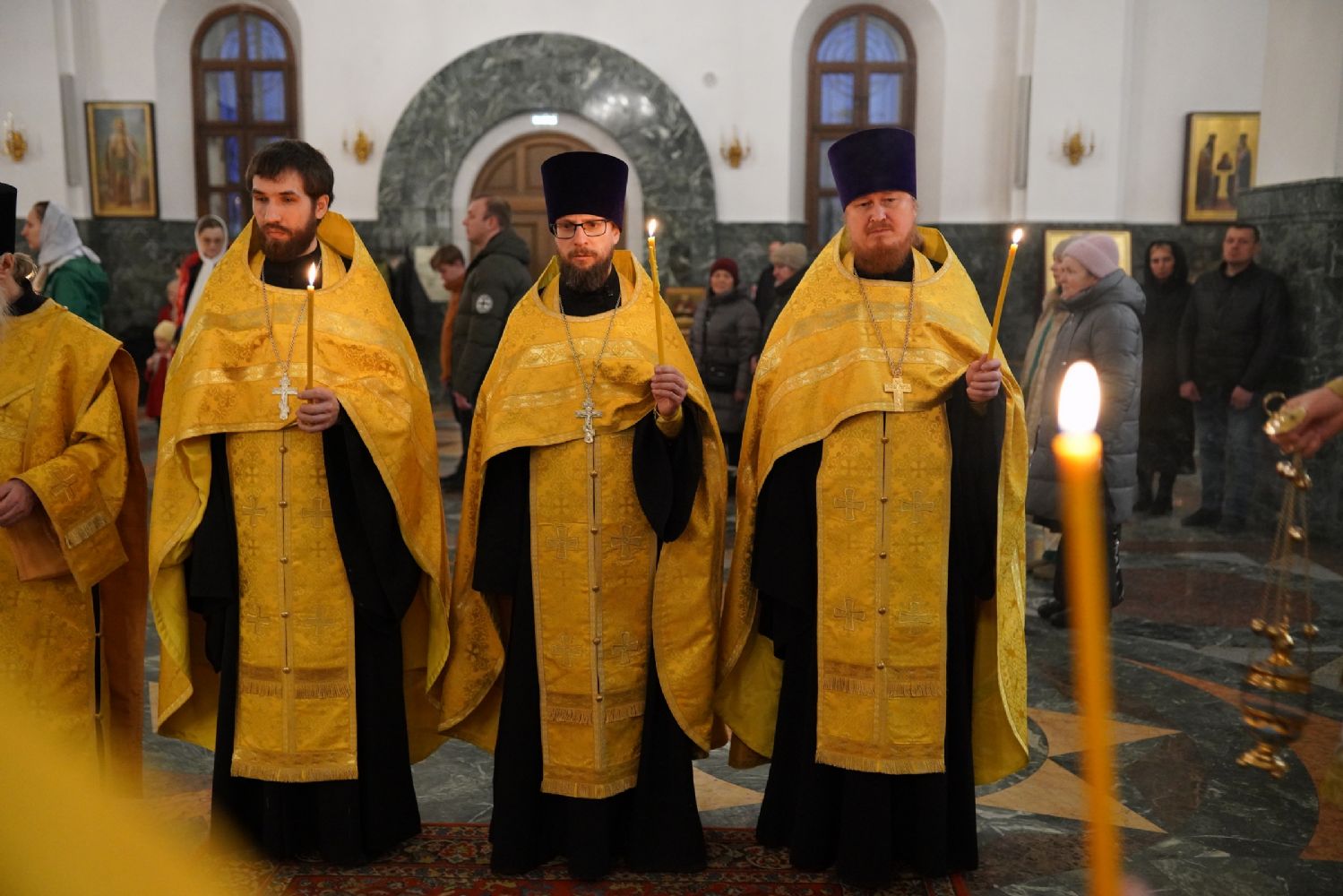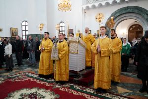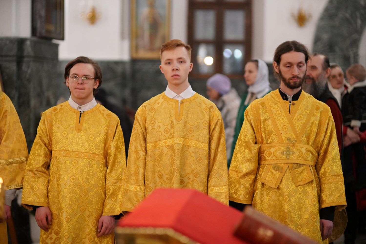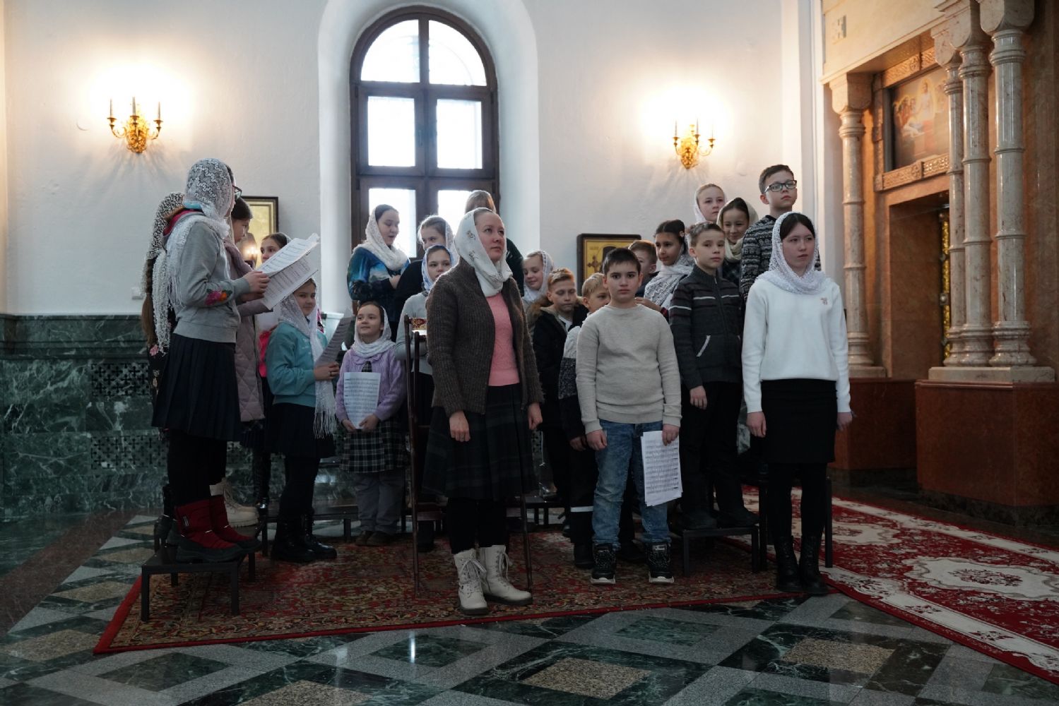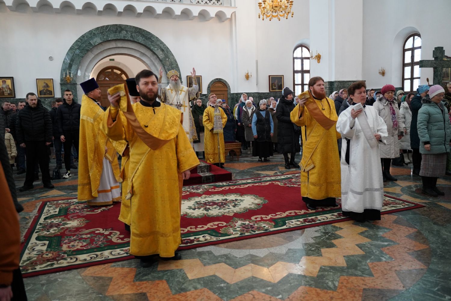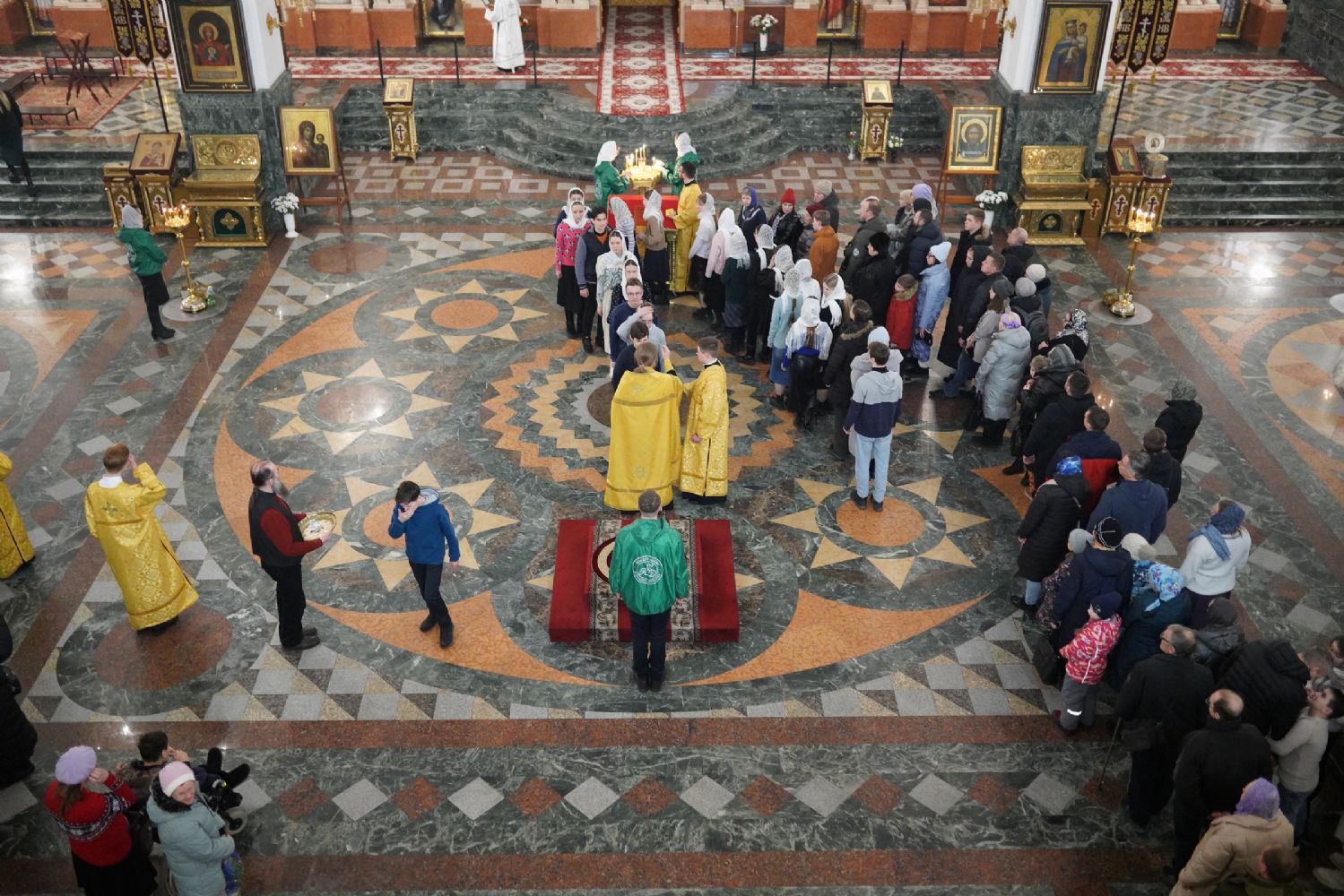 Архипастырю сослужили ключарь собора протоиерей Сергий Поглазов, клирики собора и протодиакон Михаил Козловский. Песнопения исполняли старший и младший составы детско-юношеского хора «Благовест» под управлением регентов Татьяны Черновой, Софии Андреевой и Надежды Поздеевой.