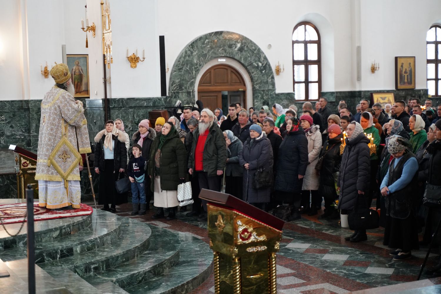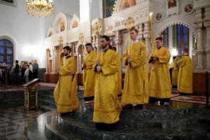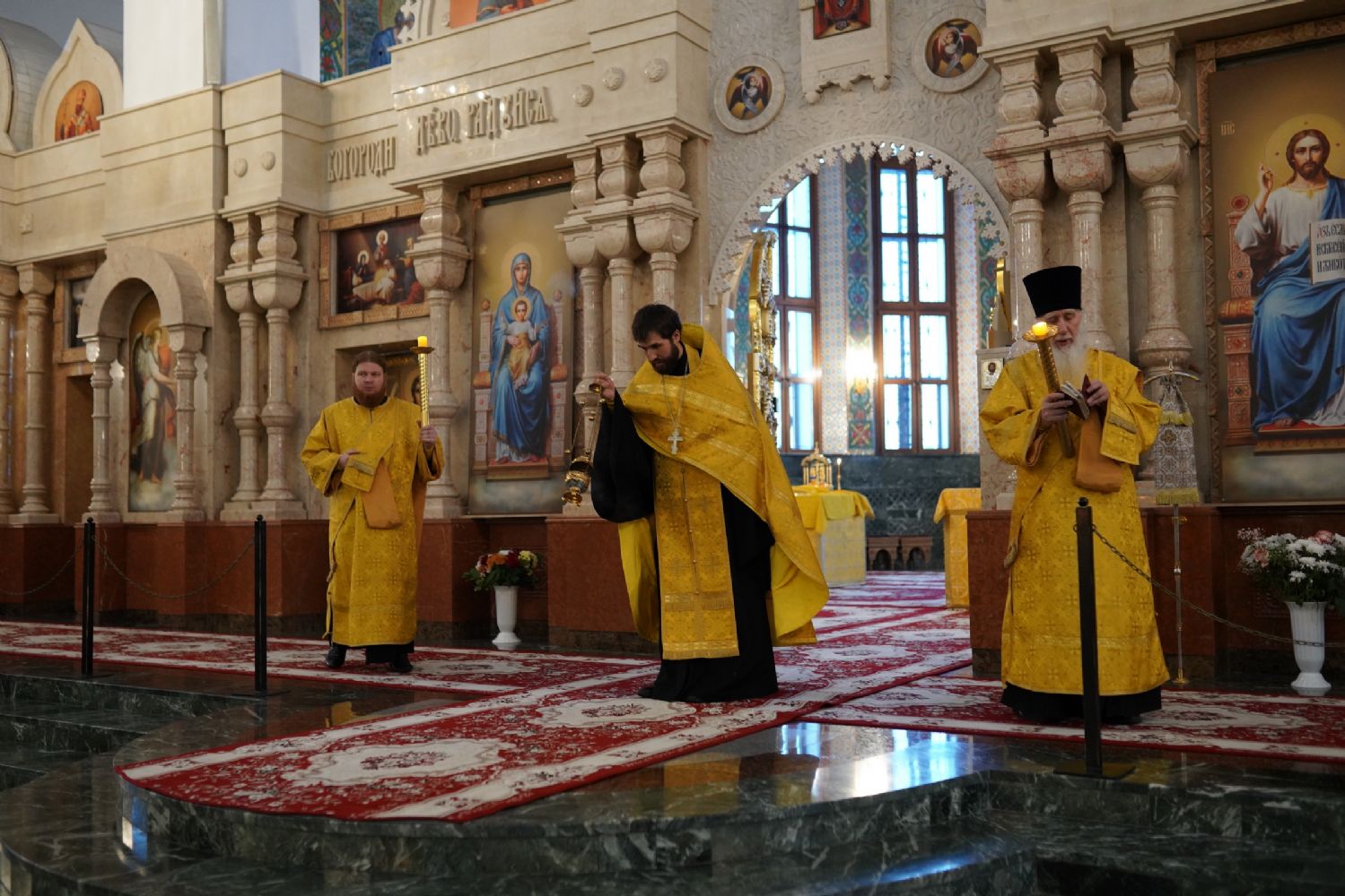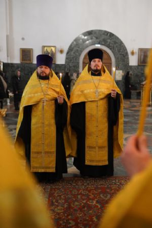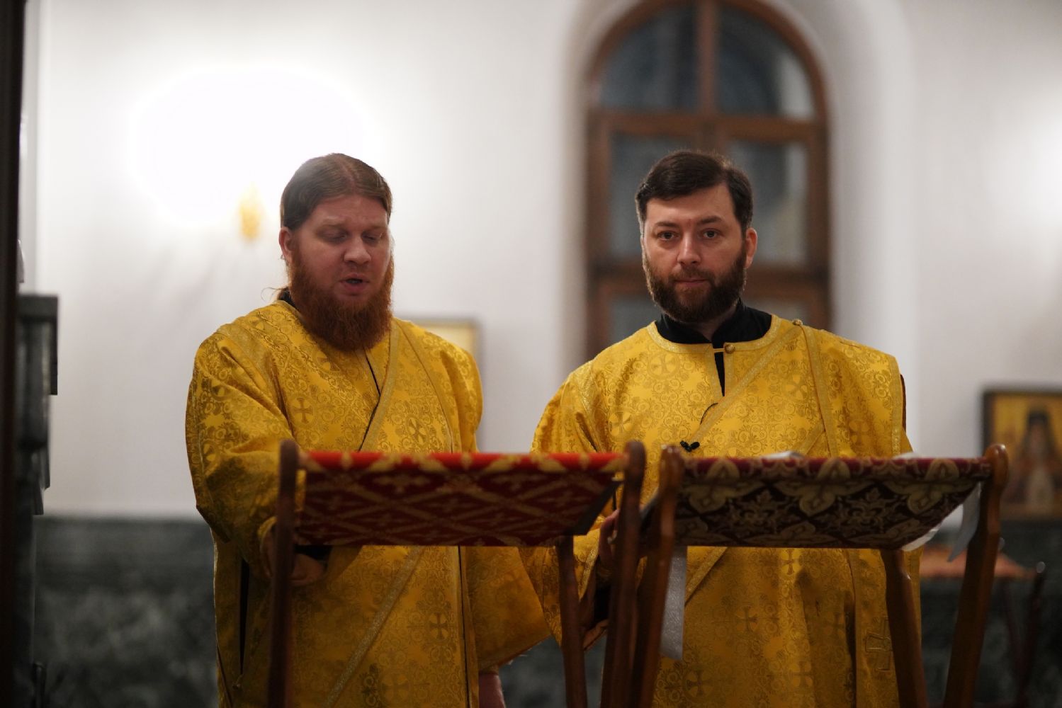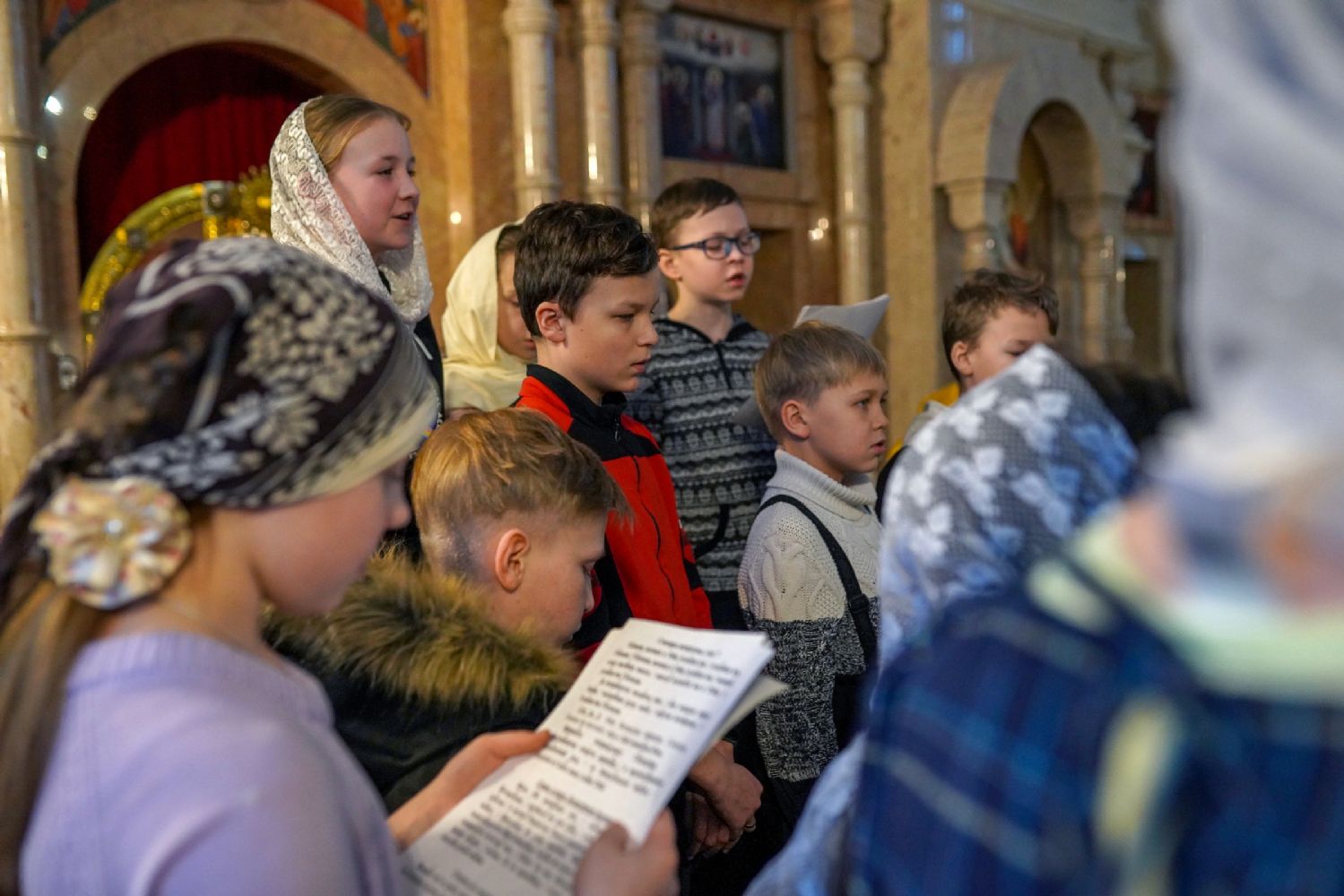 Архипастырю сослужили ключарь собора протоиерей Сергий Поглазов, клирики собора и протодиакон Михаил Козловский. Песнопения исполняли старший и младший составы детско-юношеского хора «Благовест» под управлением регентов Татьяны Черновой, Софии Андреевой и Надежды Поздеевой.