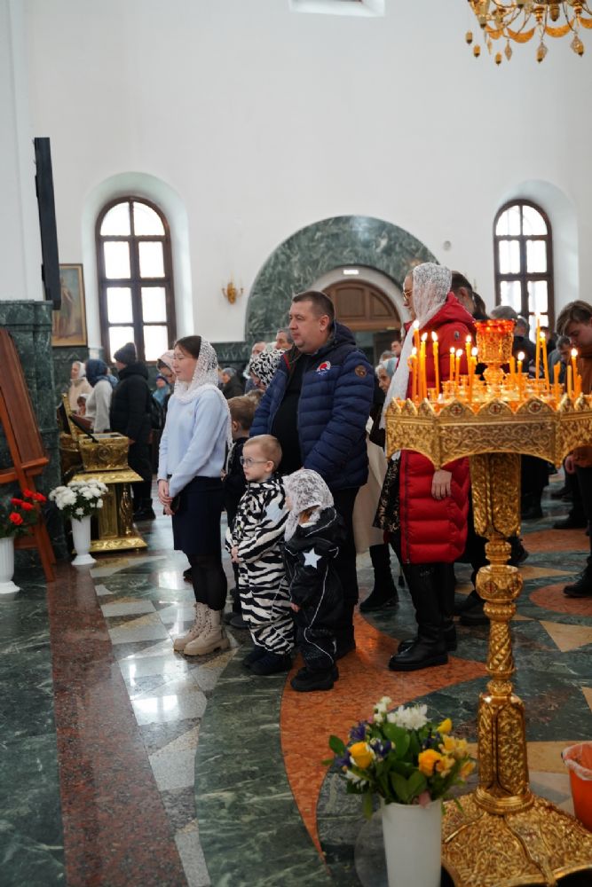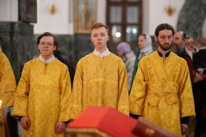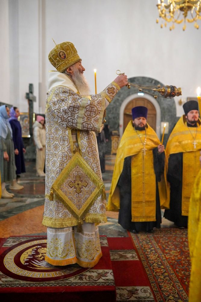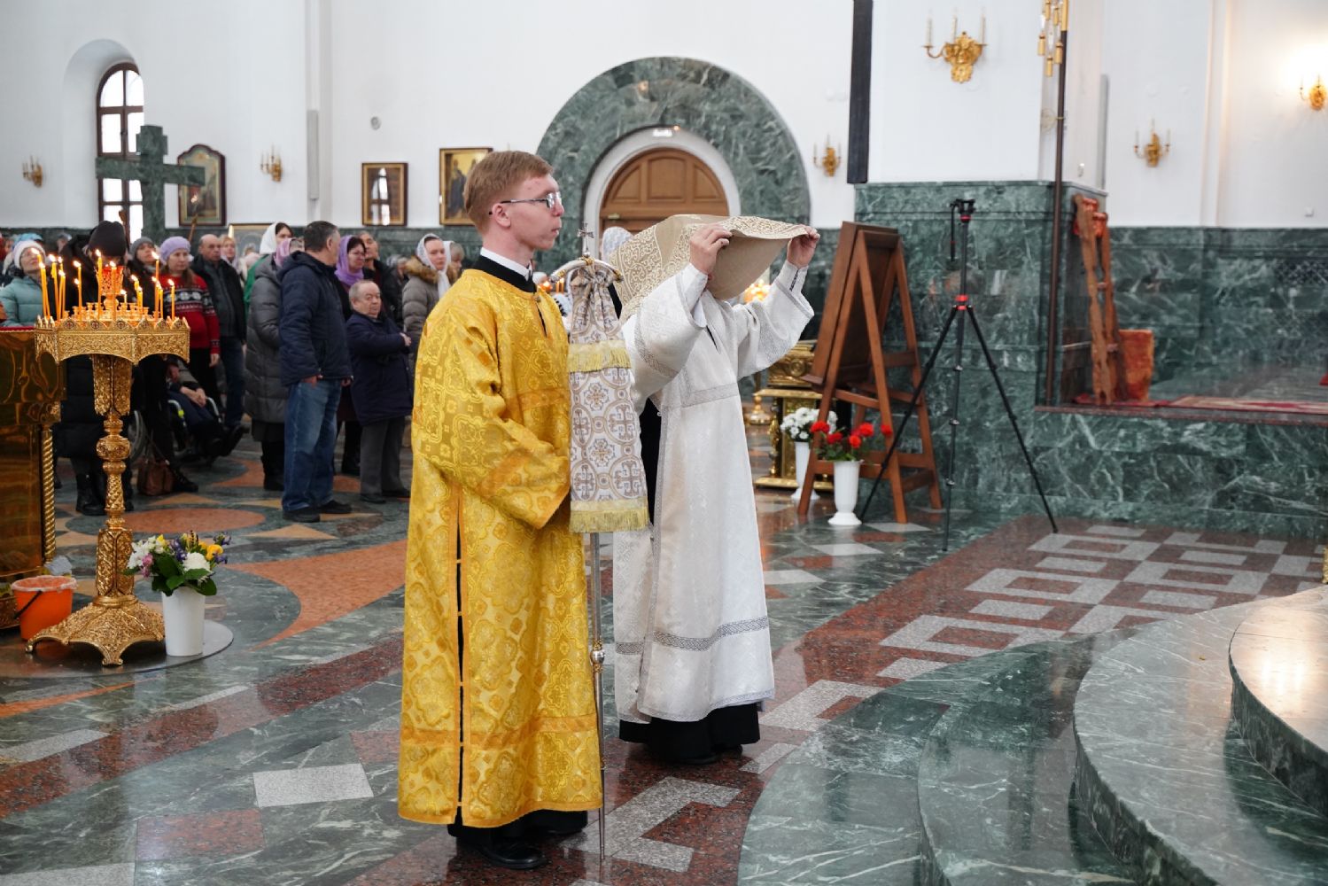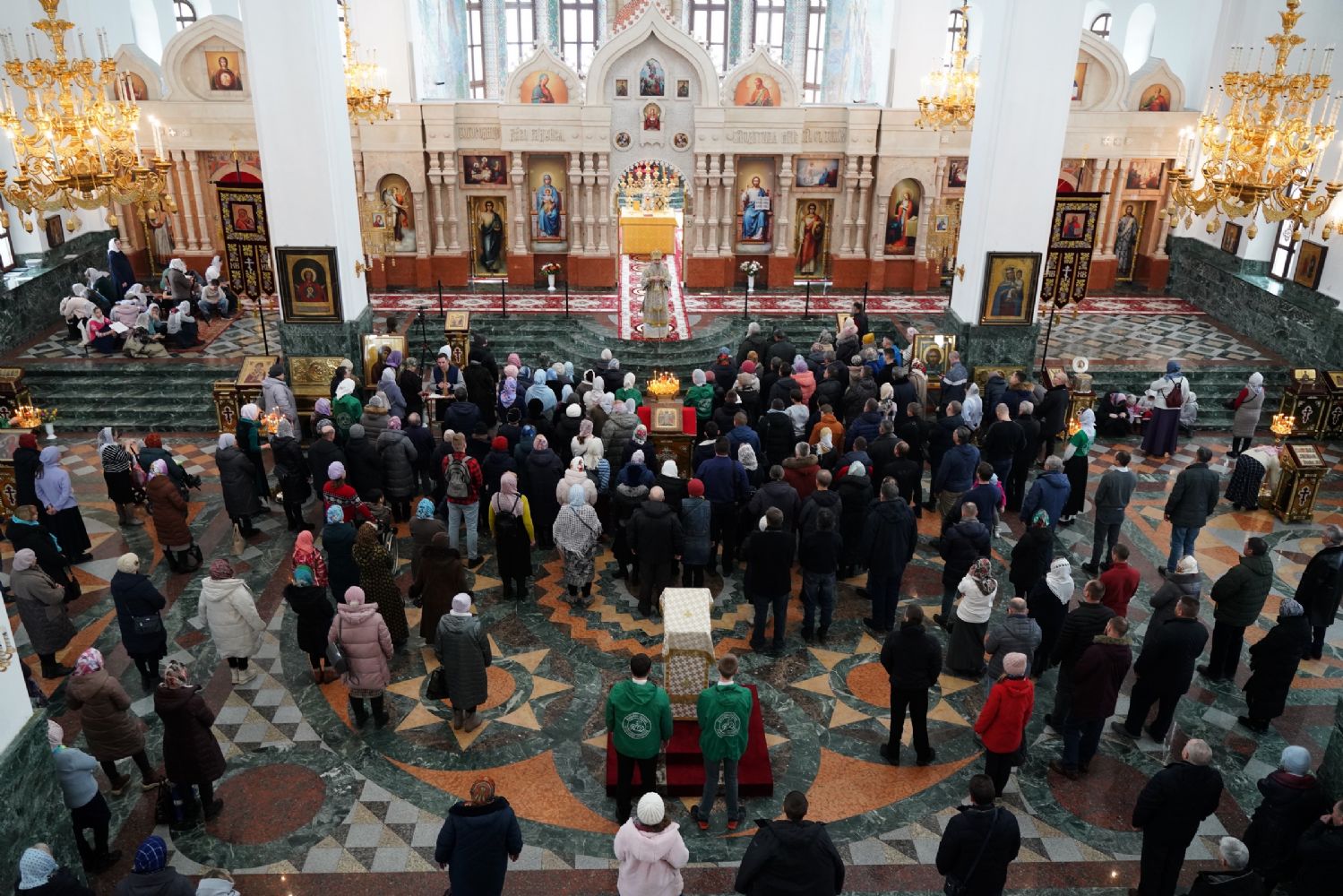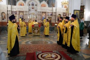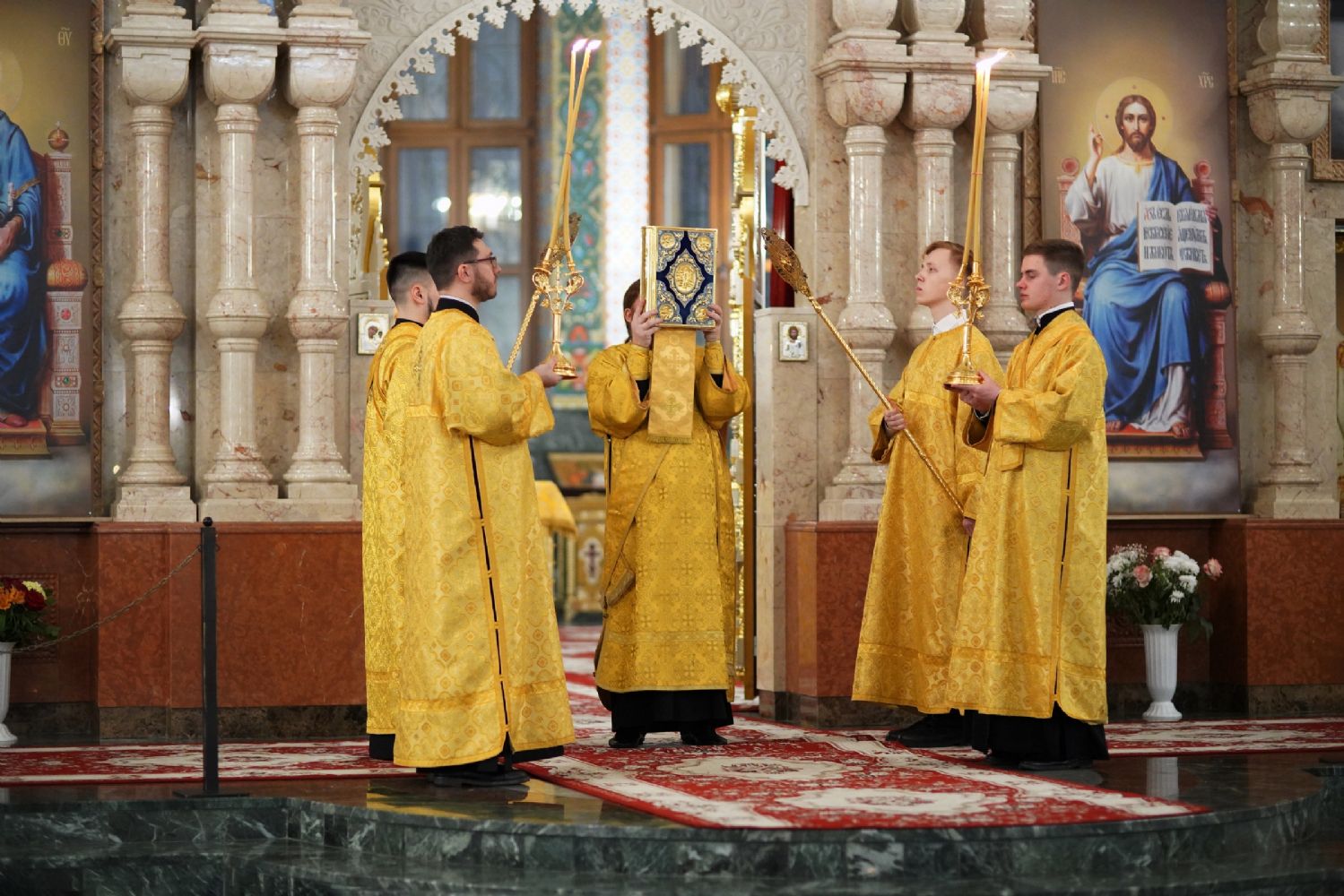 Архипастырю сослужили ключарь собора протоиерей Сергий Поглазов, клирики собора и протодиакон Михаил Козловский. Песнопения исполняли старший и младший составы детско-юношеского хора «Благовест» под управлением регентов Татьяны Черновой, Софии Андреевой и Надежды Поздеевой.