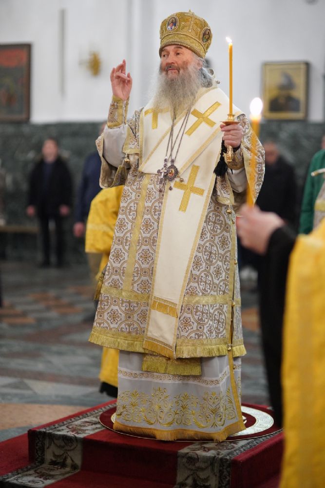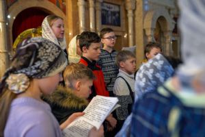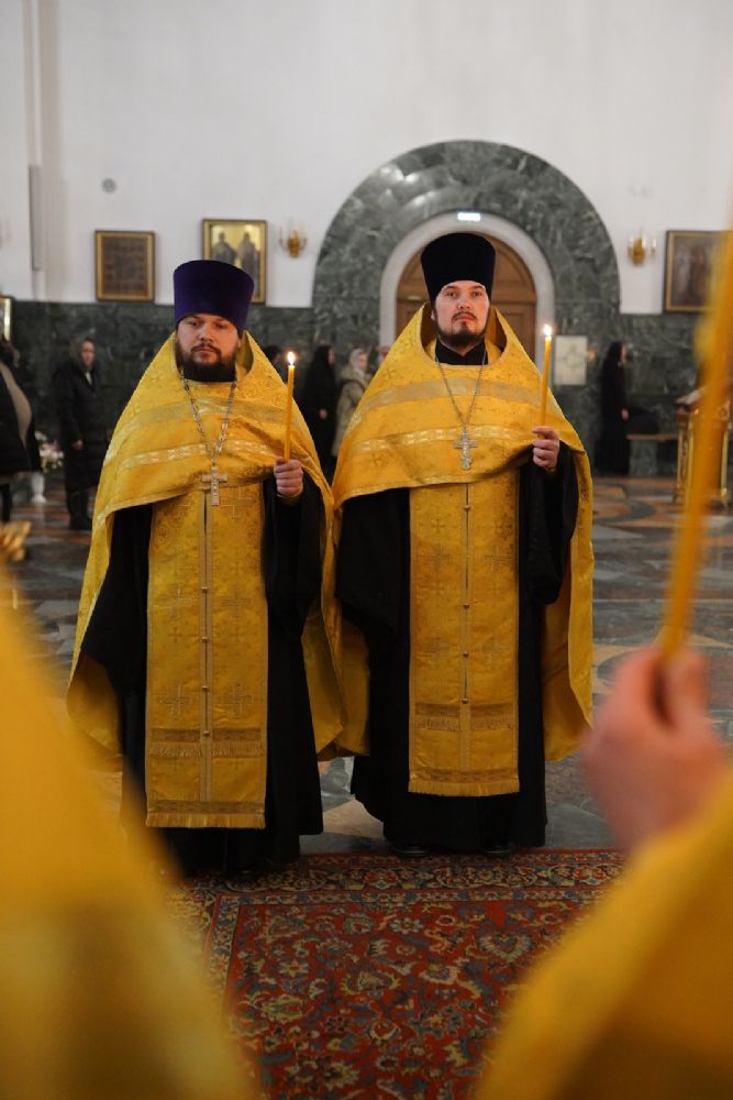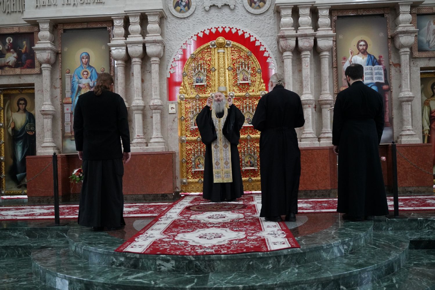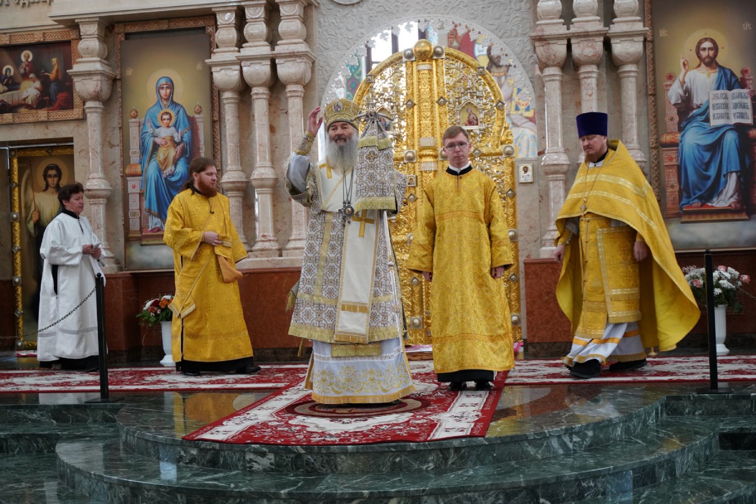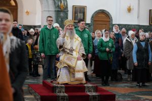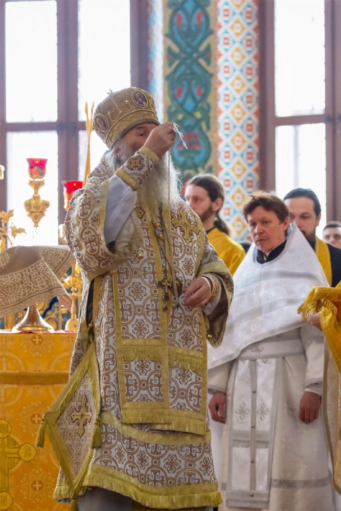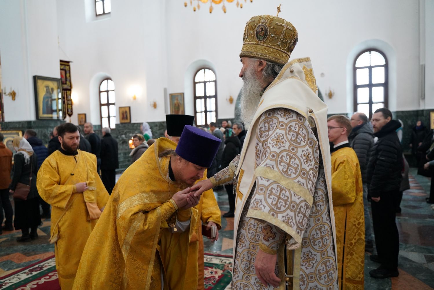 Архипастырю сослужили ключарь собора протоиерей Сергий Поглазов, клирики собора и протодиакон Михаил Козловский. Песнопения исполняли старший и младший составы детско-юношеского хора «Благовест» под управлением регентов Татьяны Черновой, Софии Андреевой и Надежды Поздеевой.