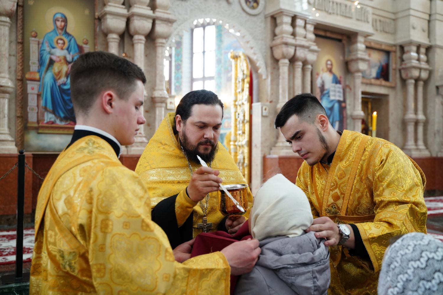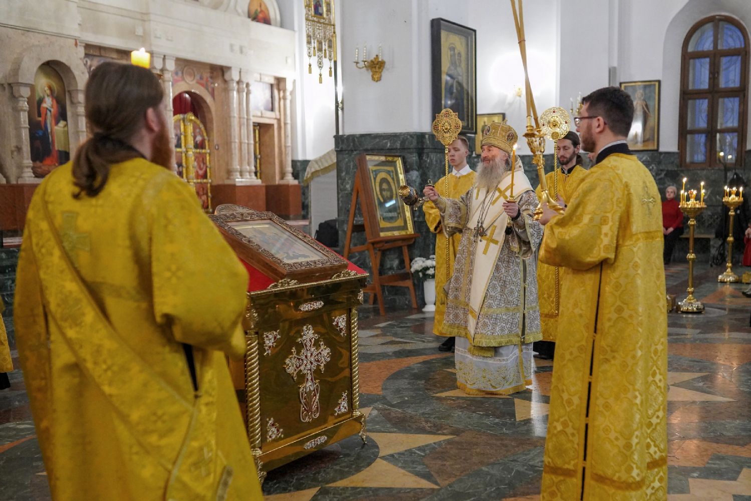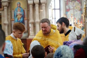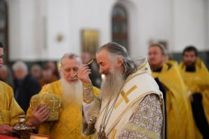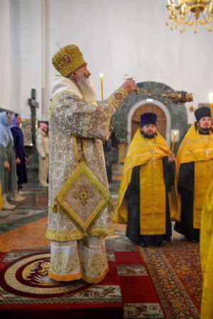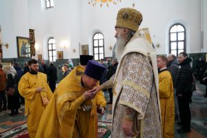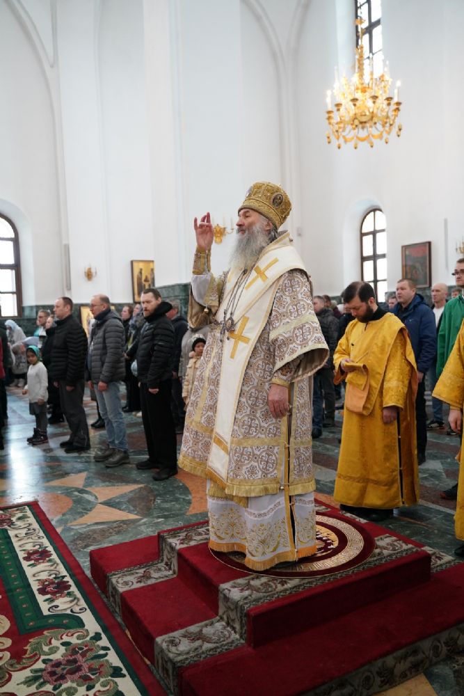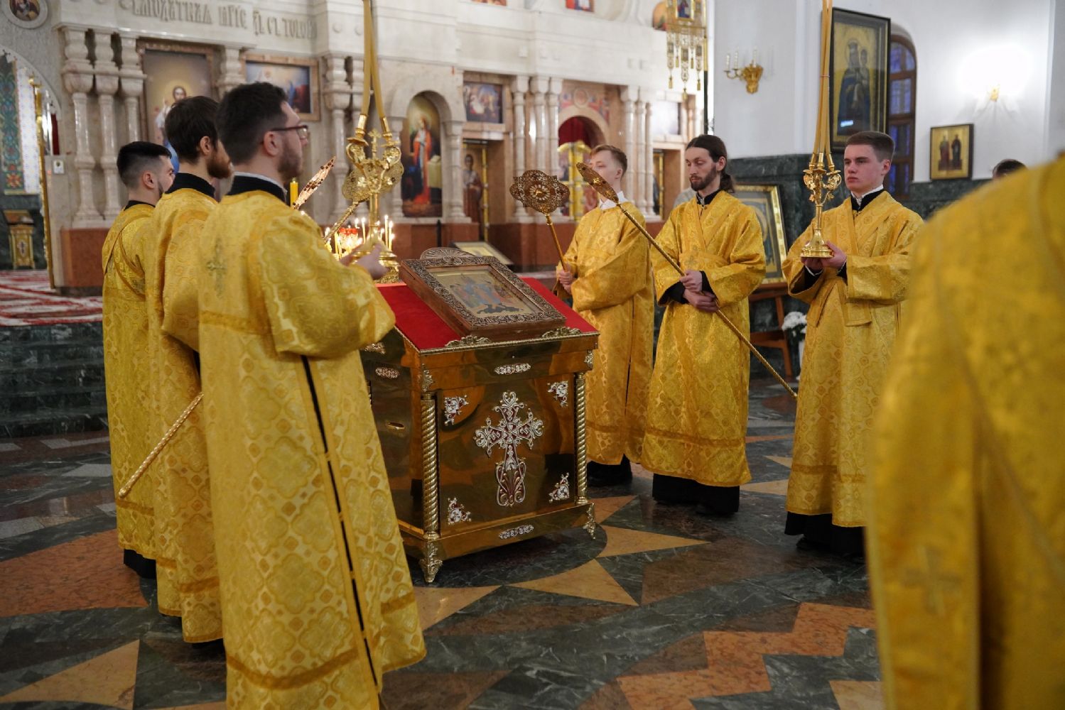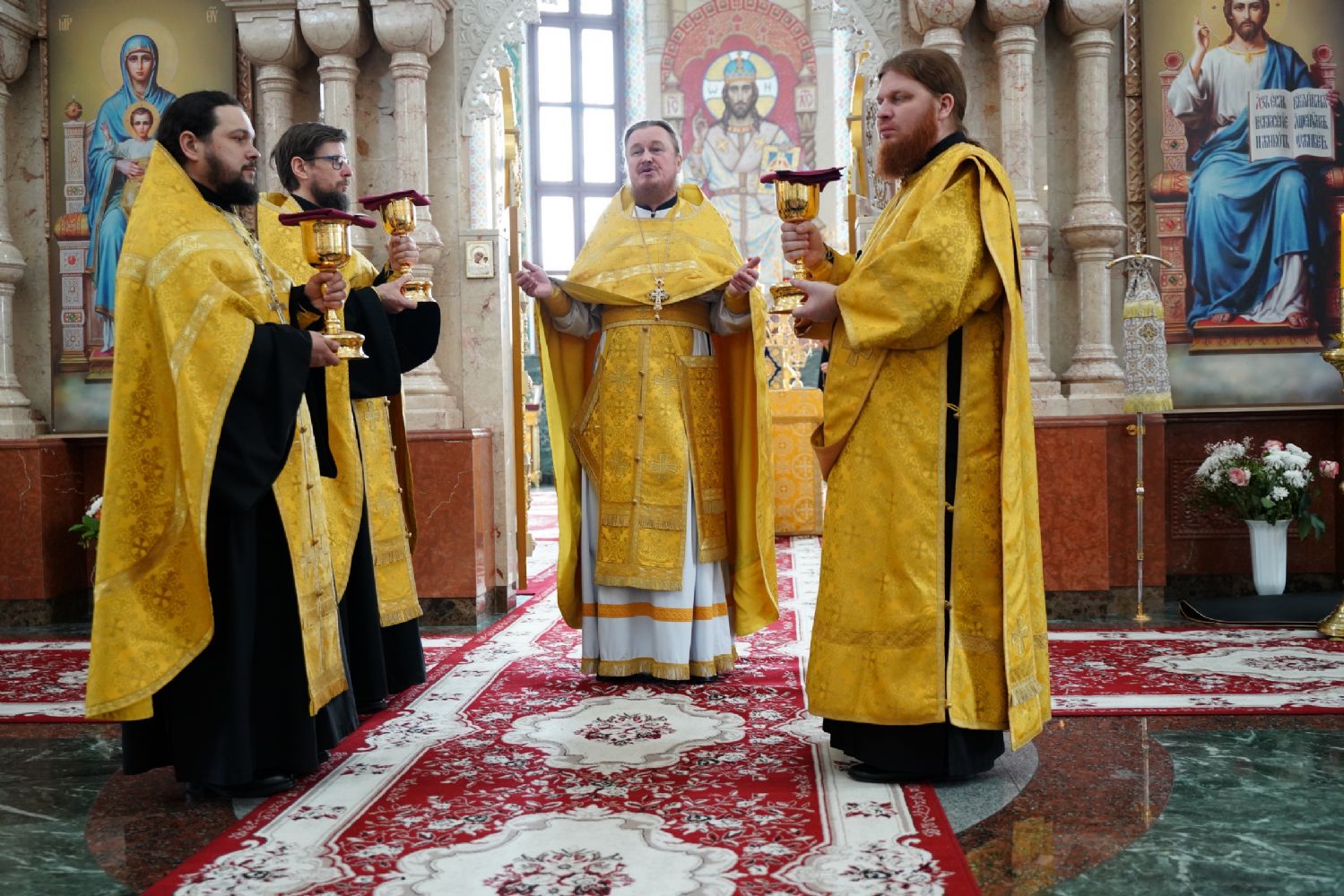 Архипастырю сослужили ключарь собора протоиерей Сергий Поглазов, клирики собора и протодиакон Михаил Козловский. Песнопения исполняли старший и младший составы детско-юношеского хора «Благовест» под управлением регентов Татьяны Черновой, Софии Андреевой и Надежды Поздеевой.