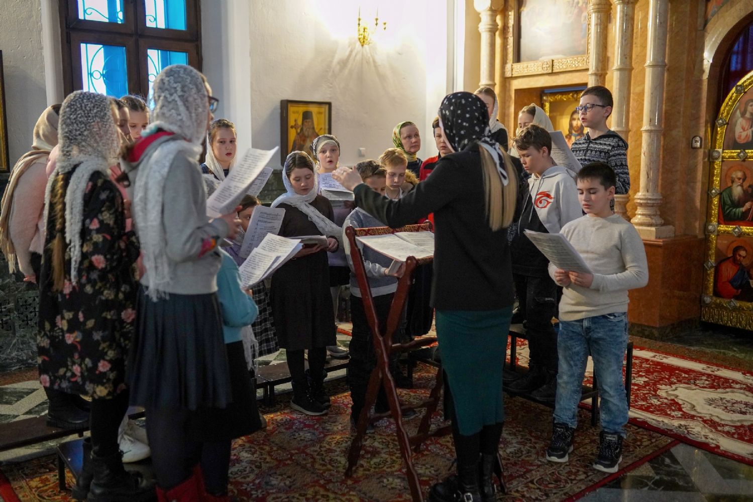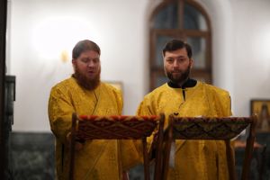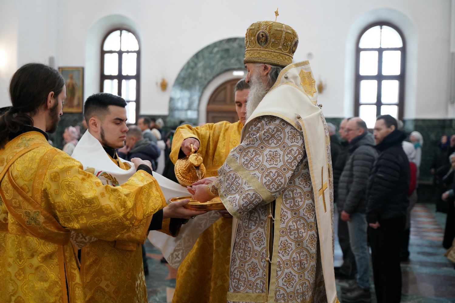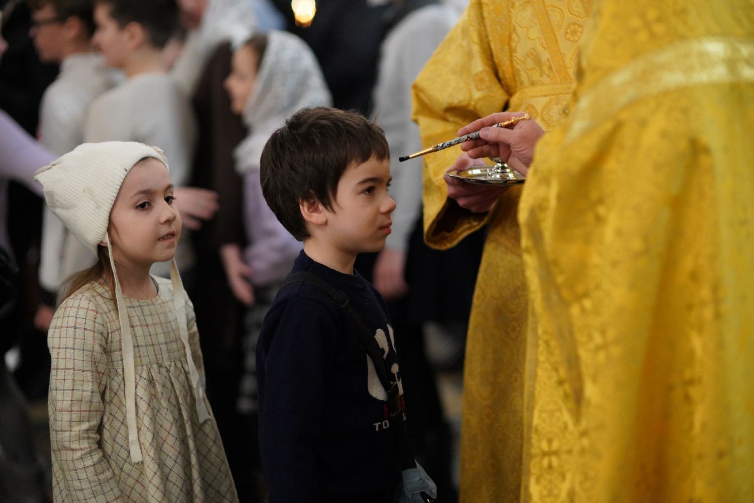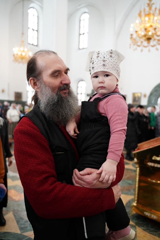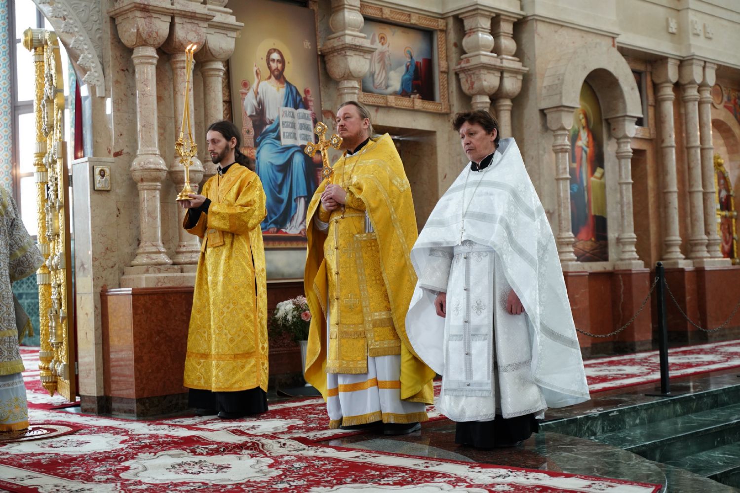 Архипастырю сослужили ключарь собора протоиерей Сергий Поглазов, клирики собора и протодиакон Михаил Козловский. Песнопения исполняли старший и младший составы детско-юношеского хора «Благовест» под управлением регентов Татьяны Черновой, Софии Андреевой и Надежды Поздеевой.