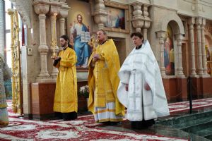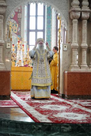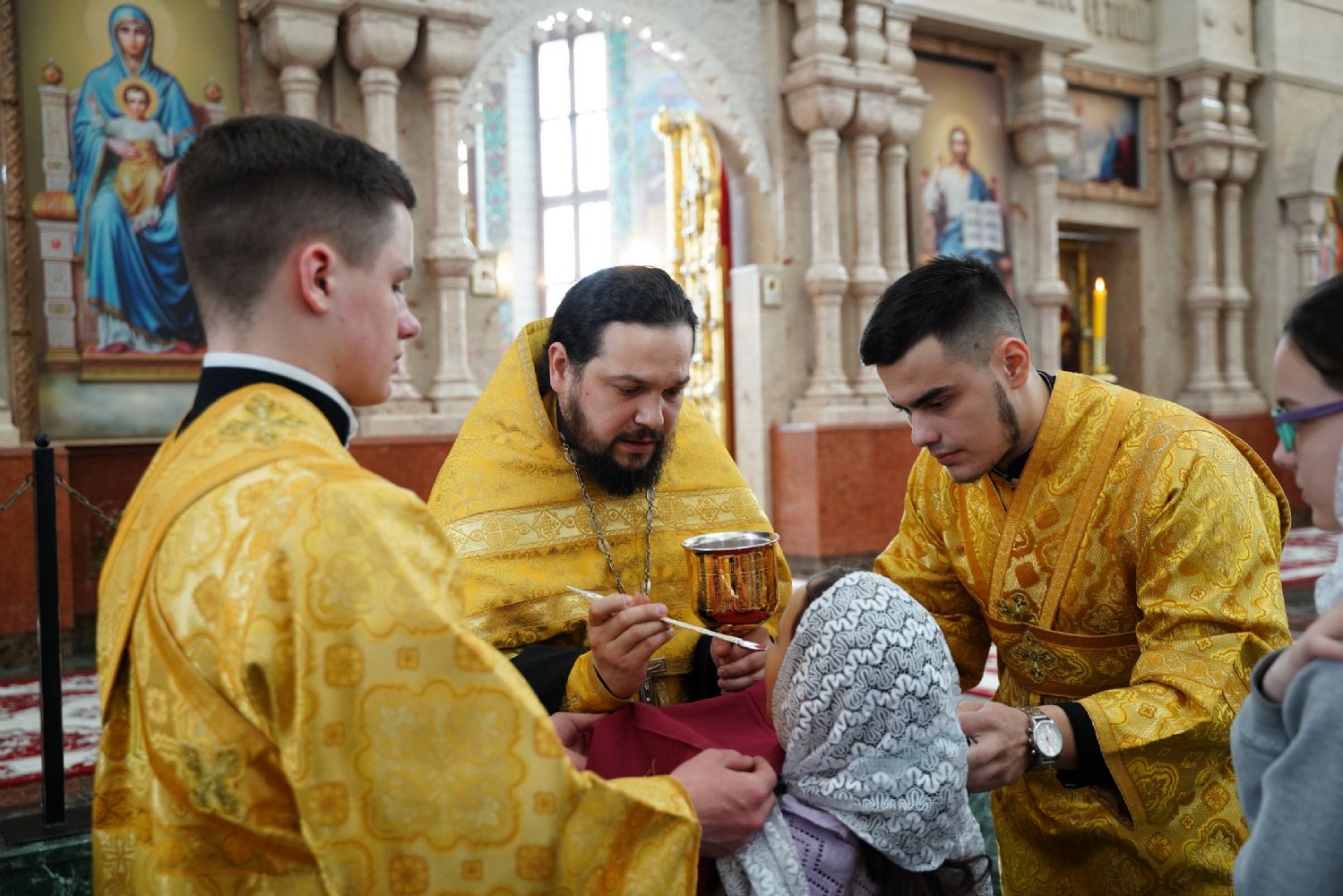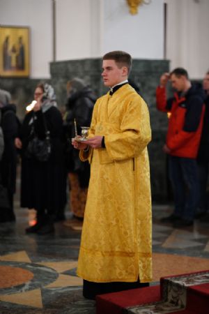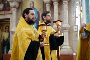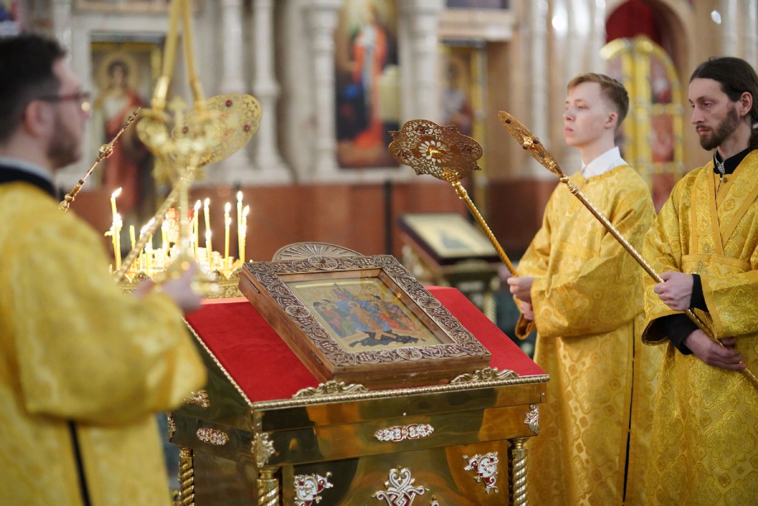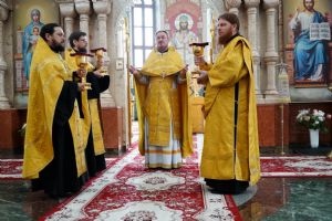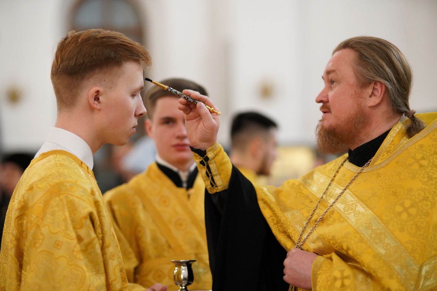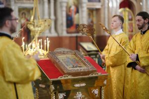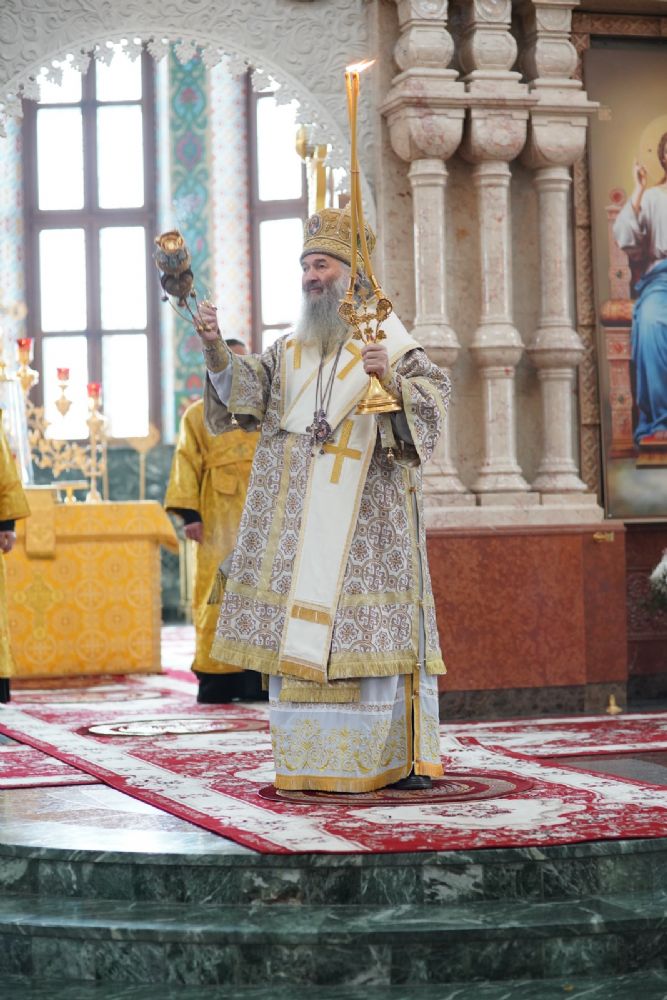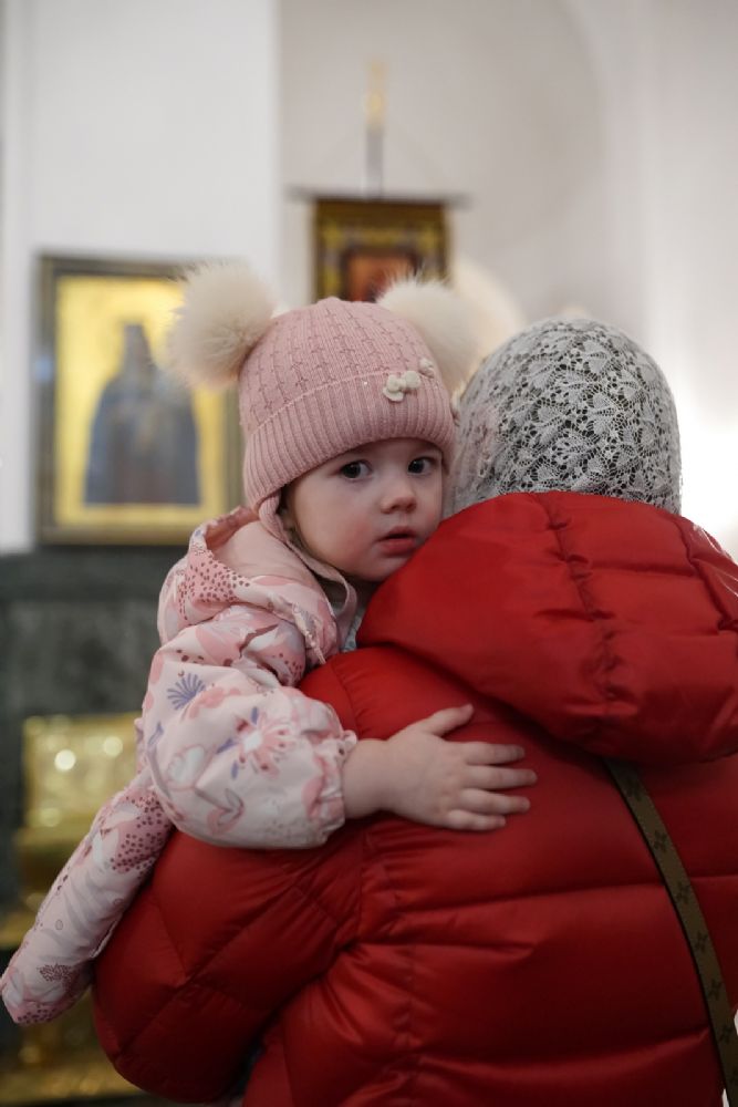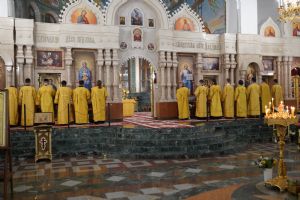 Архипастырю сослужили ключарь собора протоиерей Сергий Поглазов, клирики собора и протодиакон Михаил Козловский. Песнопения исполняли старший и младший составы детско-юношеского хора «Благовест» под управлением регентов Татьяны Черновой, Софии Андреевой и Надежды Поздеевой.