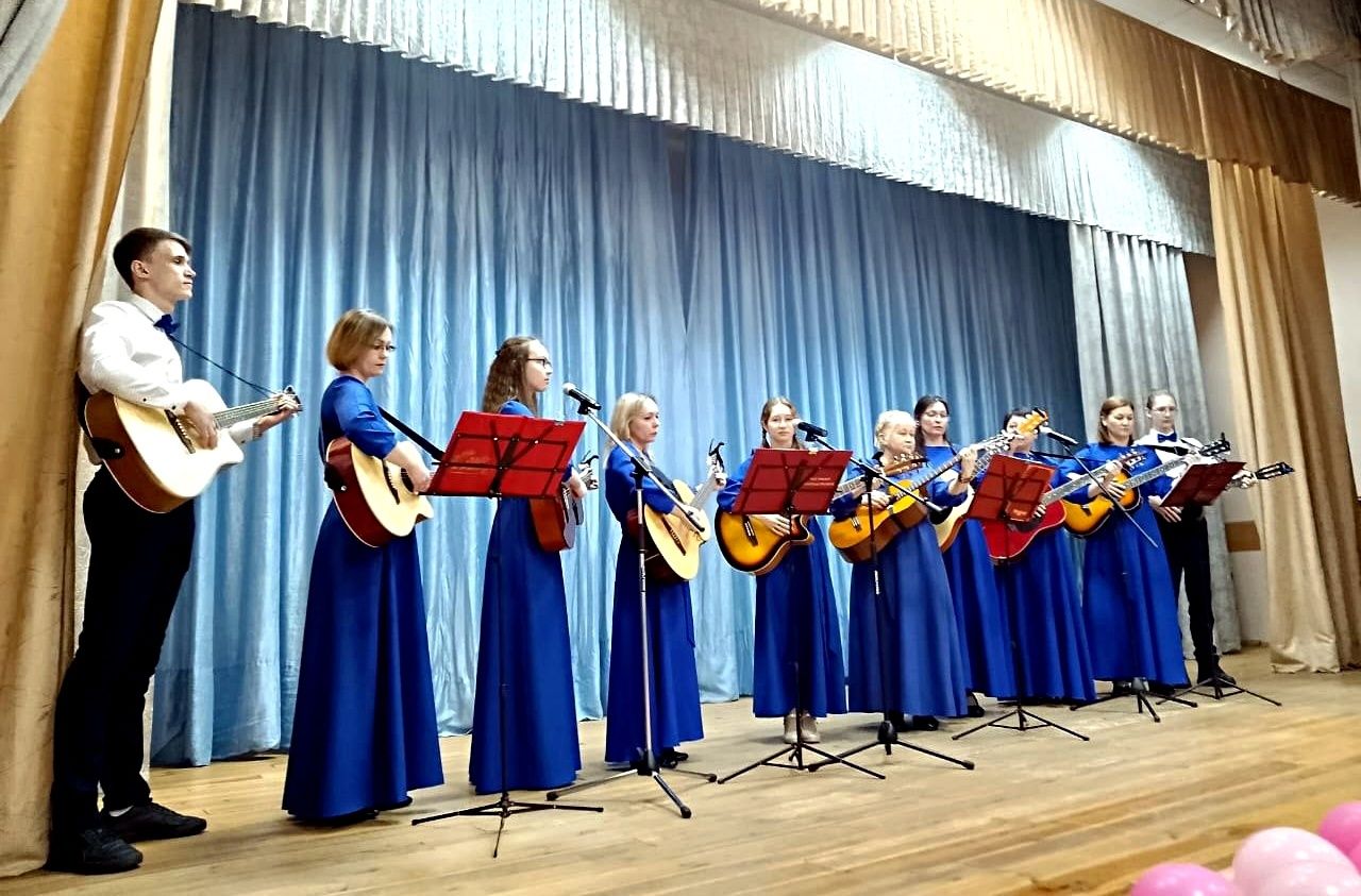 Музыканты поздравили женщин с весенним праздником и исполнили душевные песни о Родине, добре, семье, мире, любви к ближнему и к Богу. Как важно в настоящее время дарить друг другу тепло, улыбки и хорошее настроение! Собравшиеся очень тепло и по-доброму встретили гитаристов, с удовольствием вместе с ними спели известные песни «Старый клен», «Одинокая гармонь», «Изгиб гитары желтой». Завершился концерт песней «И на земле быть добру».
