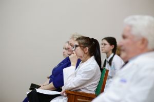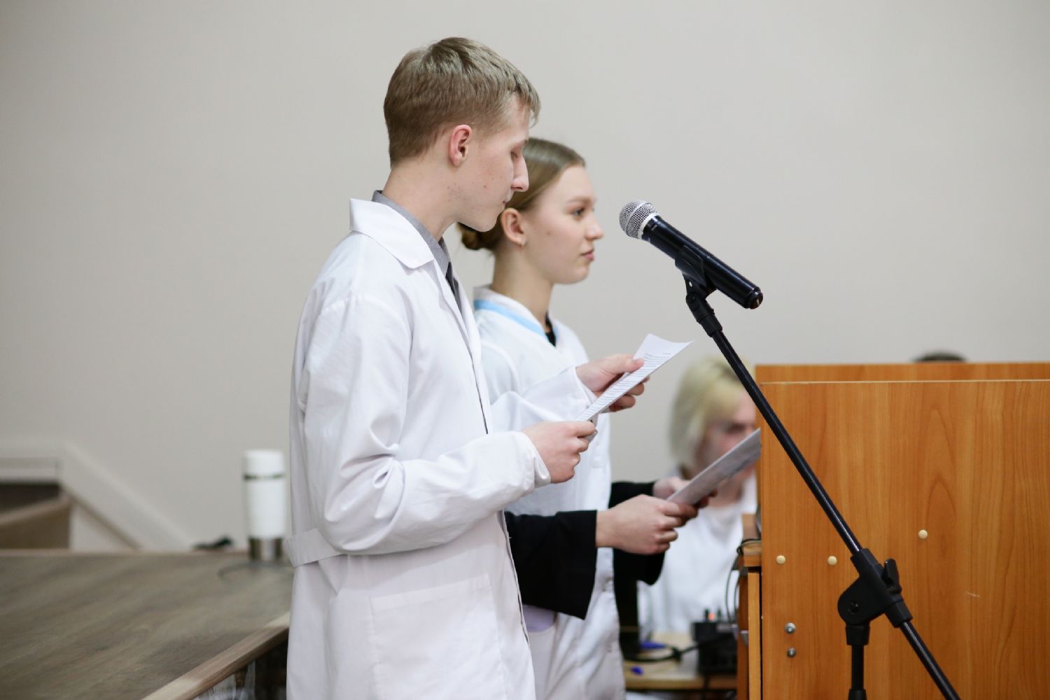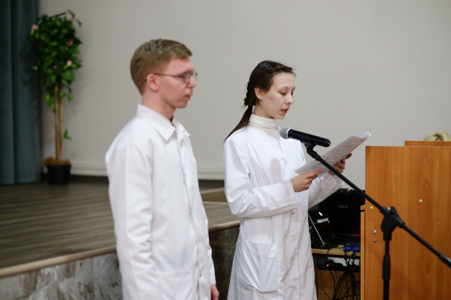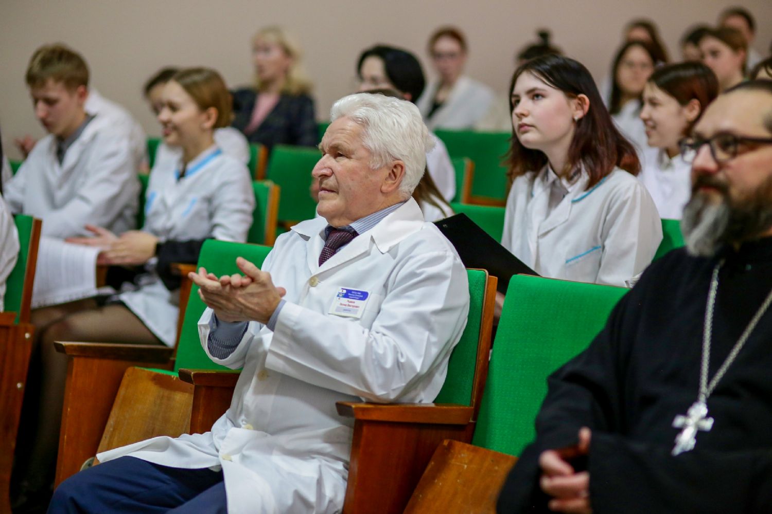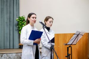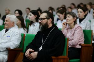 Собравшихся приветствовал директор медколледжа Леонид Викторович Рыжков. Он подчеркнул, что в человеке должно быть три здоровья: физическое или телесное, душевное или духовное и социальное. И будущие медики должны стремится к этому гармоничному сочетанию.