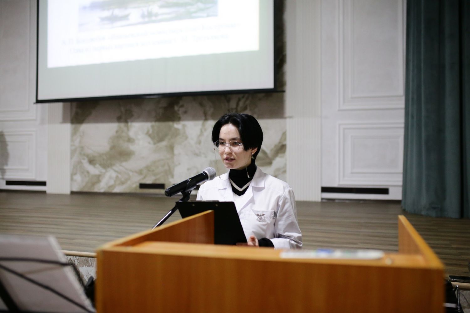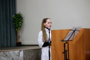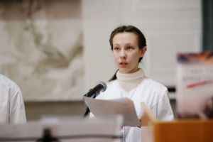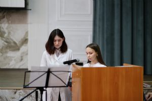 Далее последовали выступления студентов. Доклады, сопровождаемые яркими презентациями, охватывали самую разнообразную тематику и были приурочены к памятным датам: 460 лет начала книгопечатания на Руси, 280-летие святого праведного адмирала Федора Ушакова, 185 лет со дня рождения композитора М.П. Мусоргского, 190 лет основателя картинной галереи С.М. Третьякова. Актуальными стали темы, посвященные молитвам воинов по примеру полководца Суворова, а также нынешнему Году семьи и семейному празднику святых Петра и Февронии…