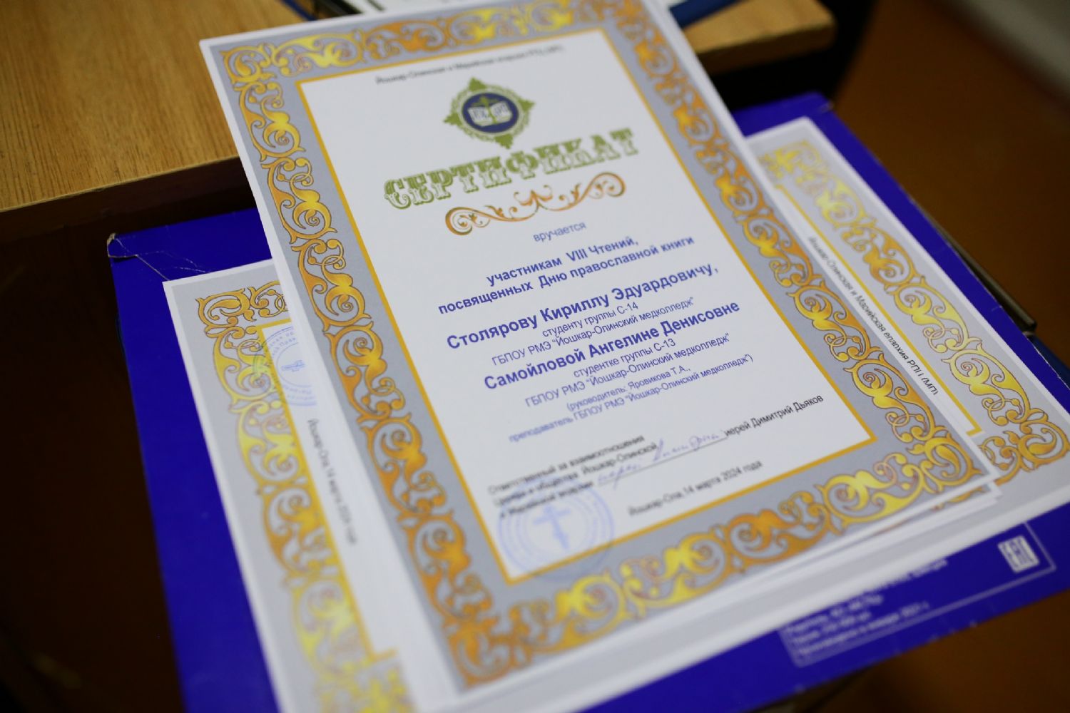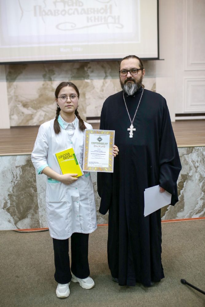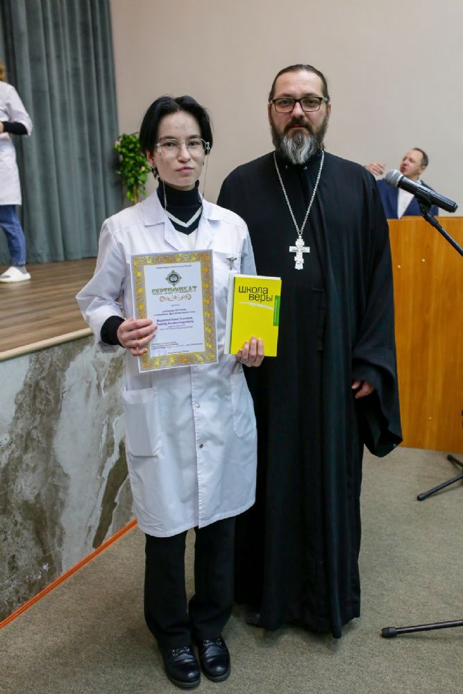 В завершение мероприятия отец Димитрий Дьяков вручил студентам и преподавателям сетрификаты и благодарственные письма Йошкар-Олинской епархии и душеполезные книги в подарок.