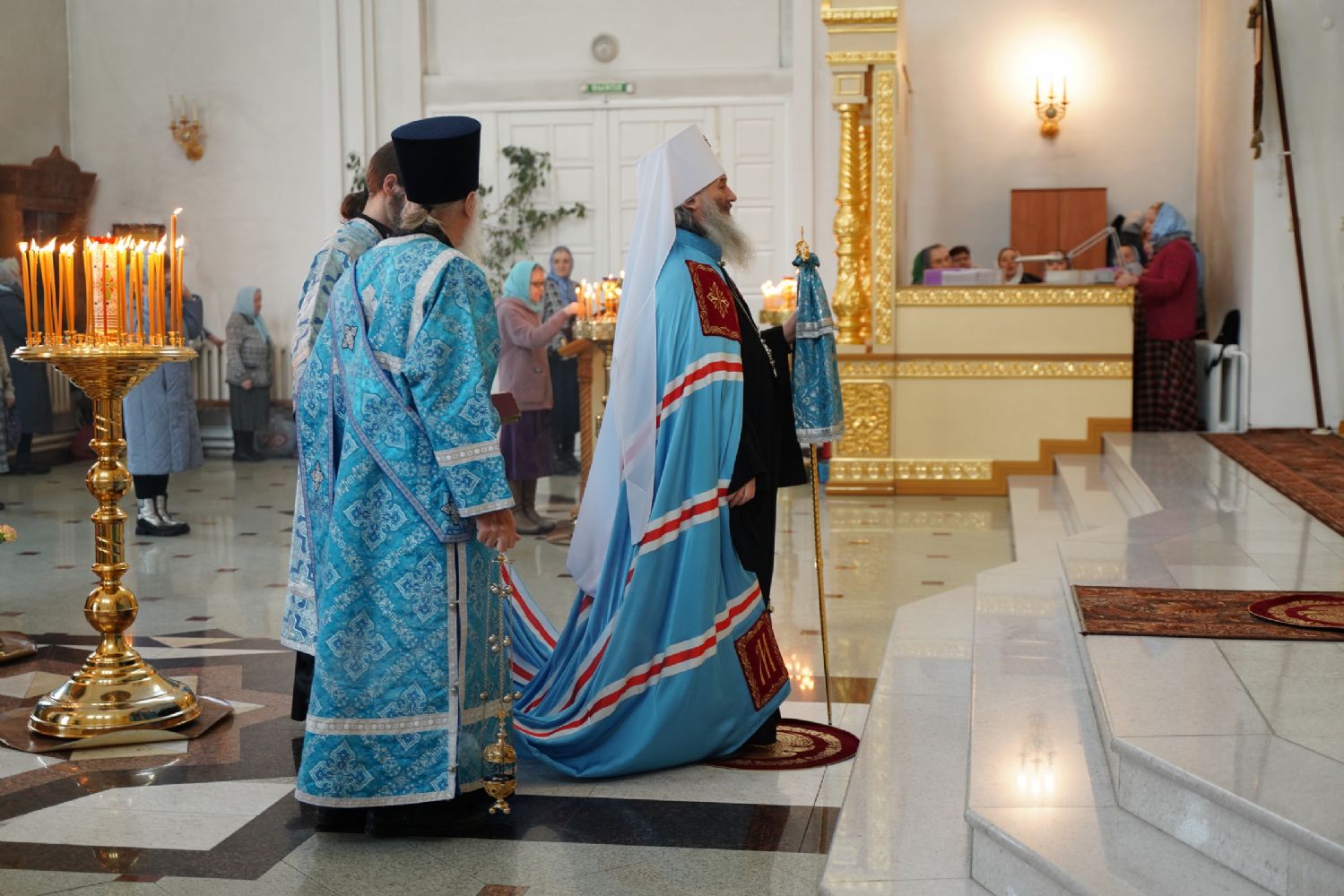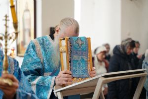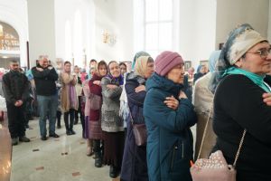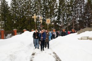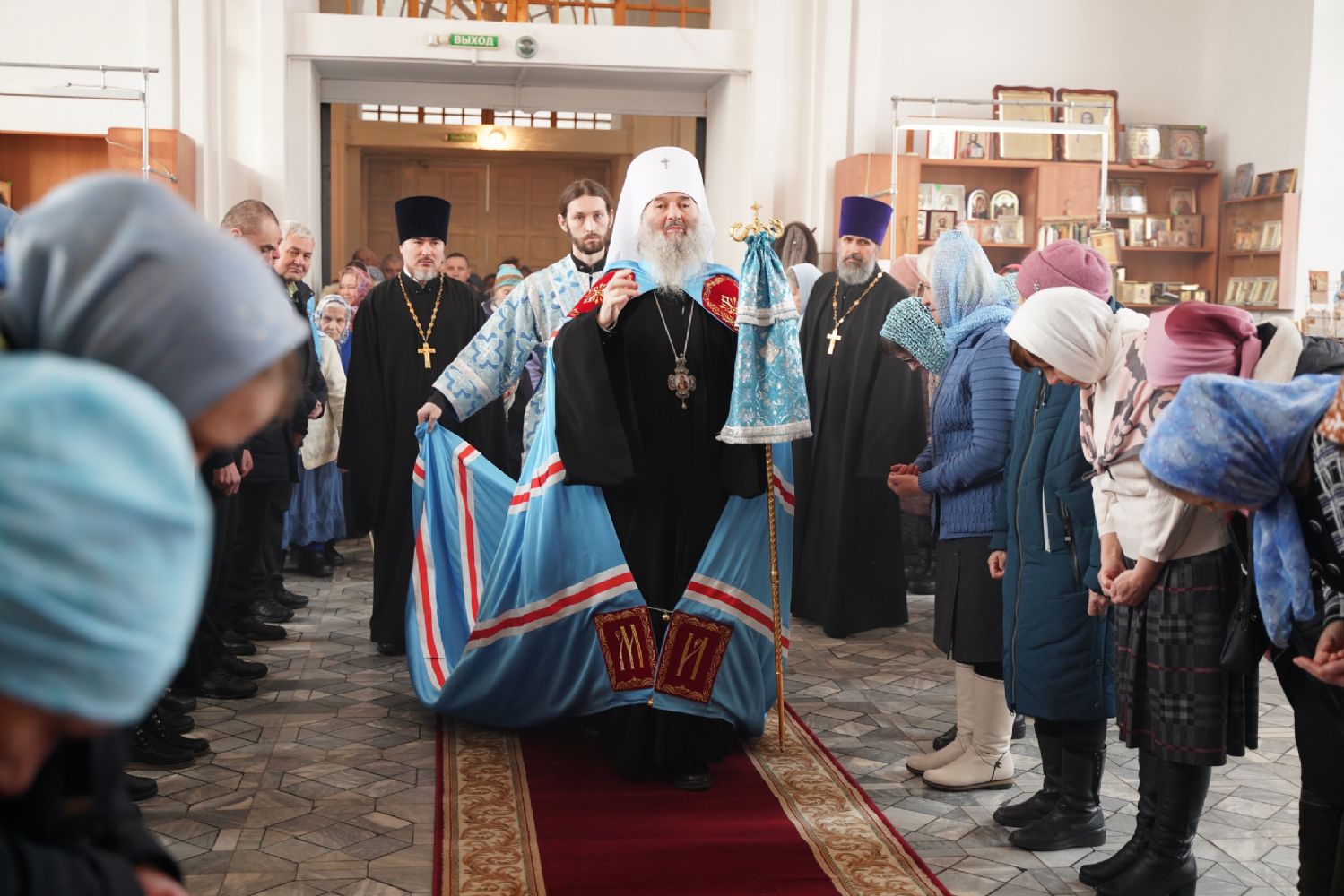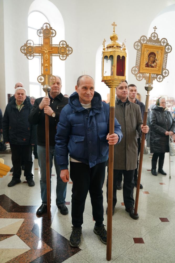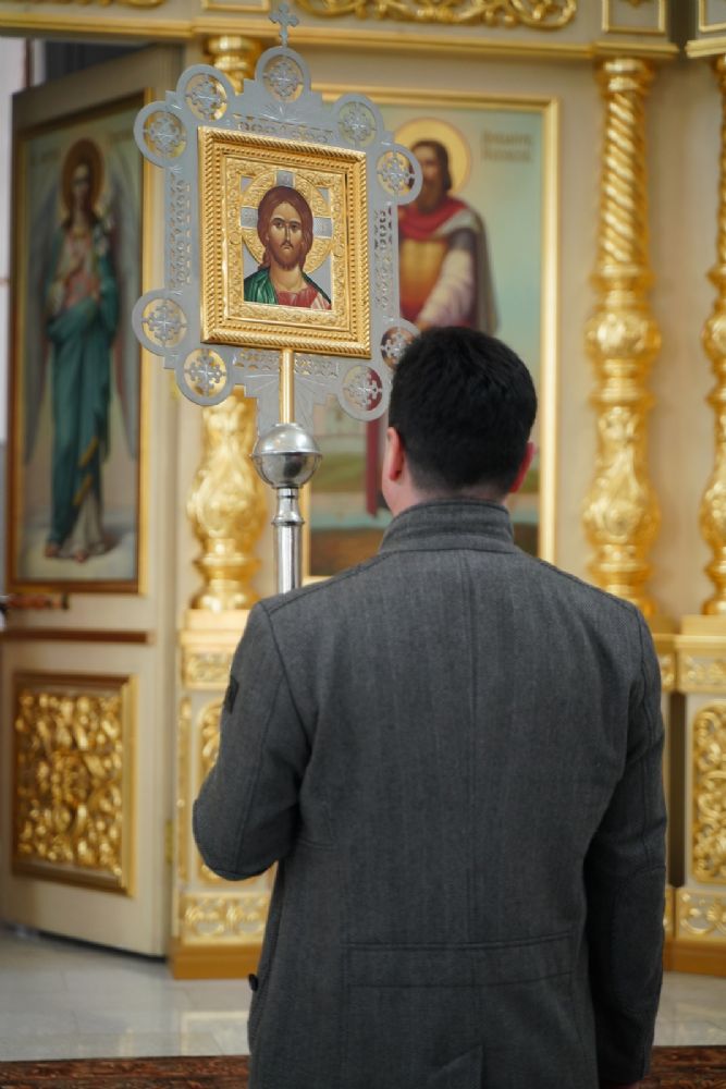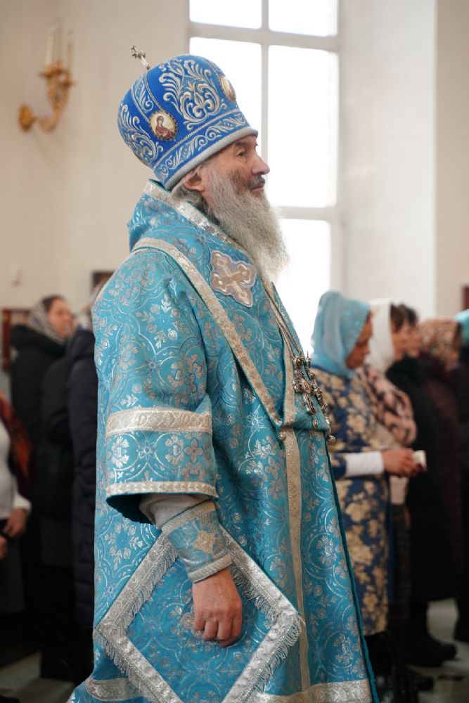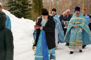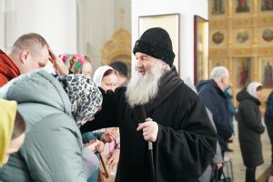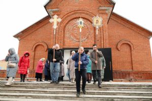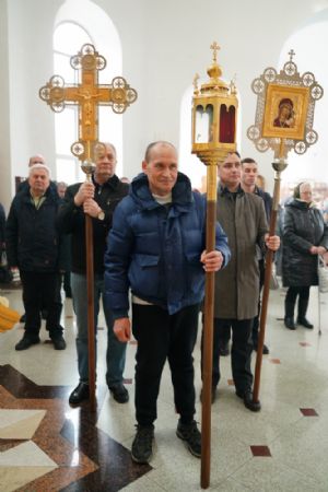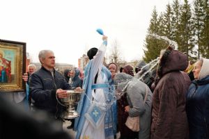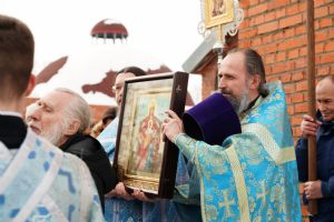 После богослужения прошел крестный ход вокруг храма со чтением Евангелия и кроплением святой водой. Затем митрополит Иоанн обратился к собравшимся с архипастырским словом, рассказав об истории иконы «Державная» – этот образ был явлен в день, когда Святая Русь лишилась царя. Пресвятая Богородица являет Себя облаченной в царские одежды, с символами царской власти в руках – чтобы засвидетельствовать всем нам, что Она, наша Небесная Владычица, Сама правит державой Российской.