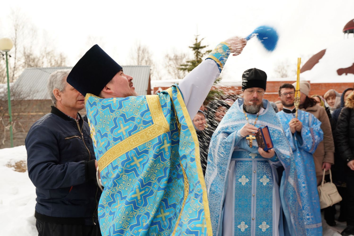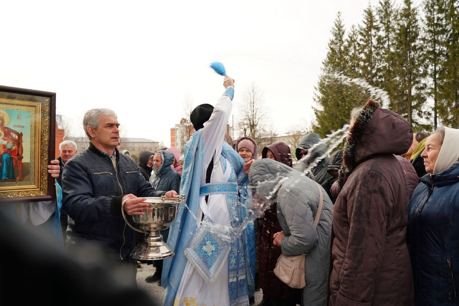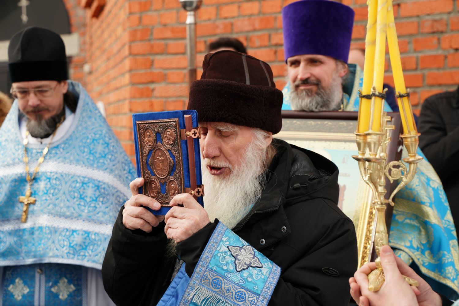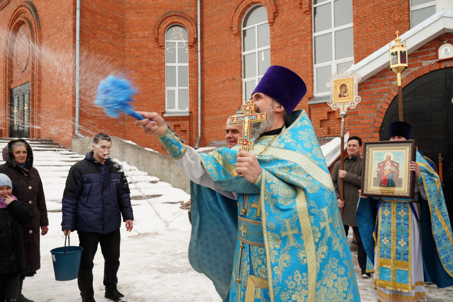 После богослужения прошел крестный ход вокруг храма со чтением Евангелия и кроплением святой водой. Затем митрополит Иоанн обратился к собравшимся с архипастырским словом, рассказав об истории иконы «Державная» – этот образ был явлен в день, когда Святая Русь лишилась царя. Пресвятая Богородица являет Себя облаченной в царские одежды, с символами царской власти в руках – чтобы засвидетельствовать всем нам, что Она, наша Небесная Владычица, Сама правит державой Российской.