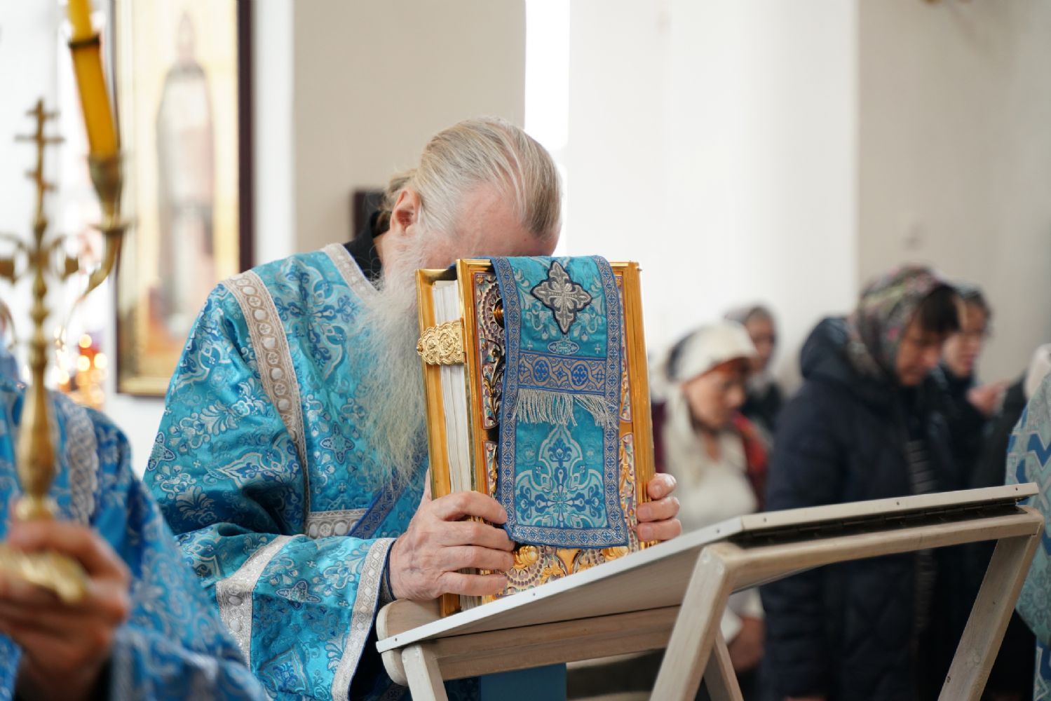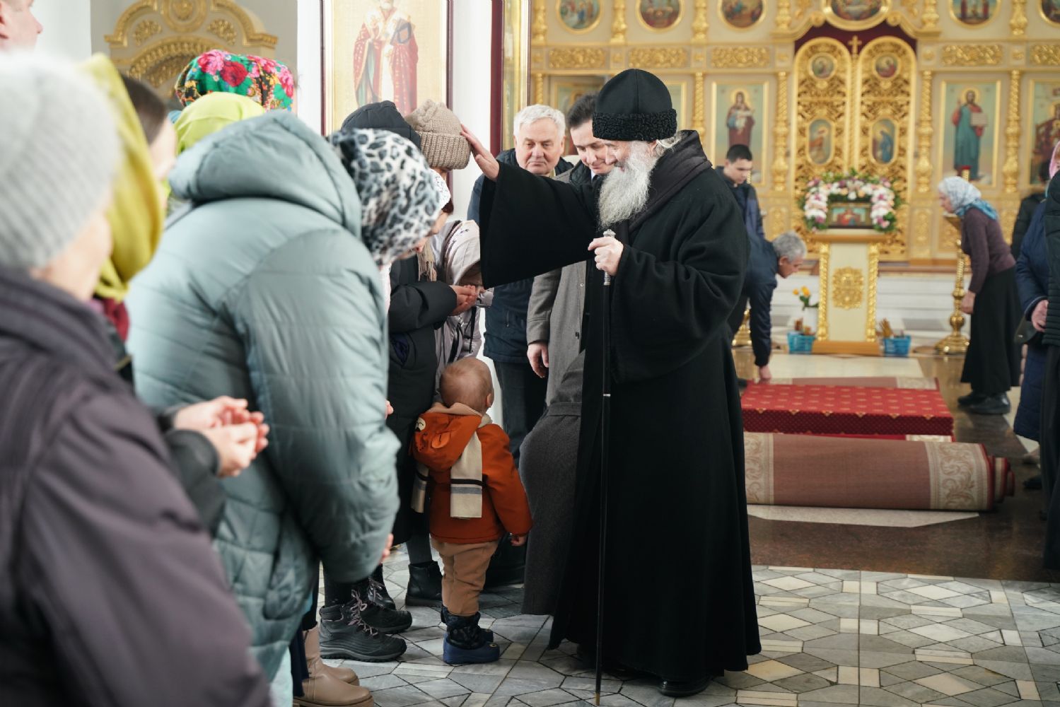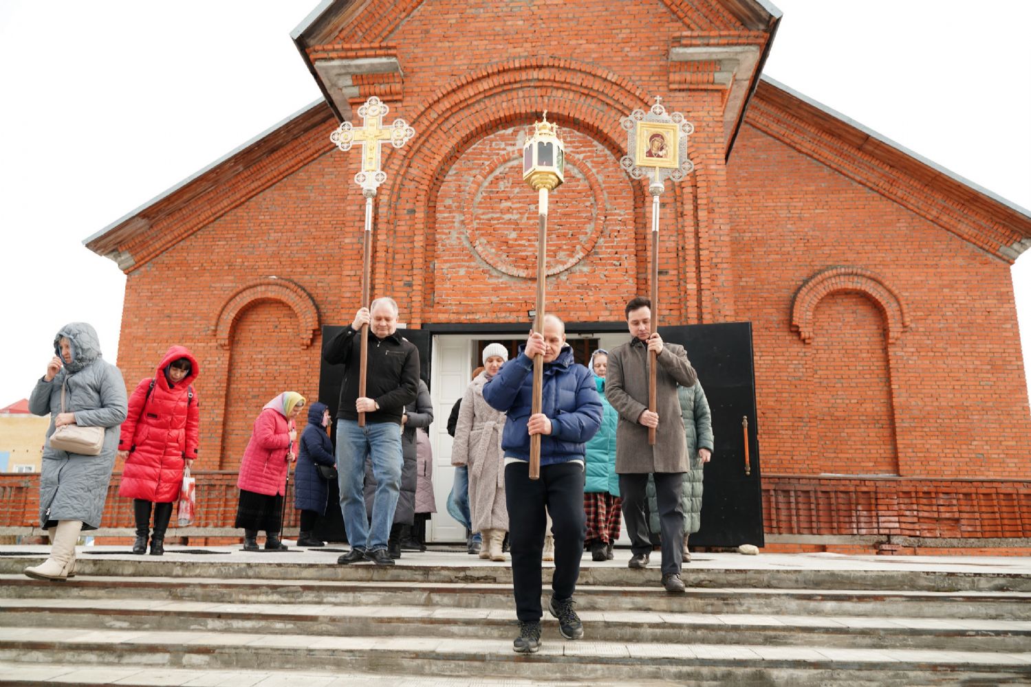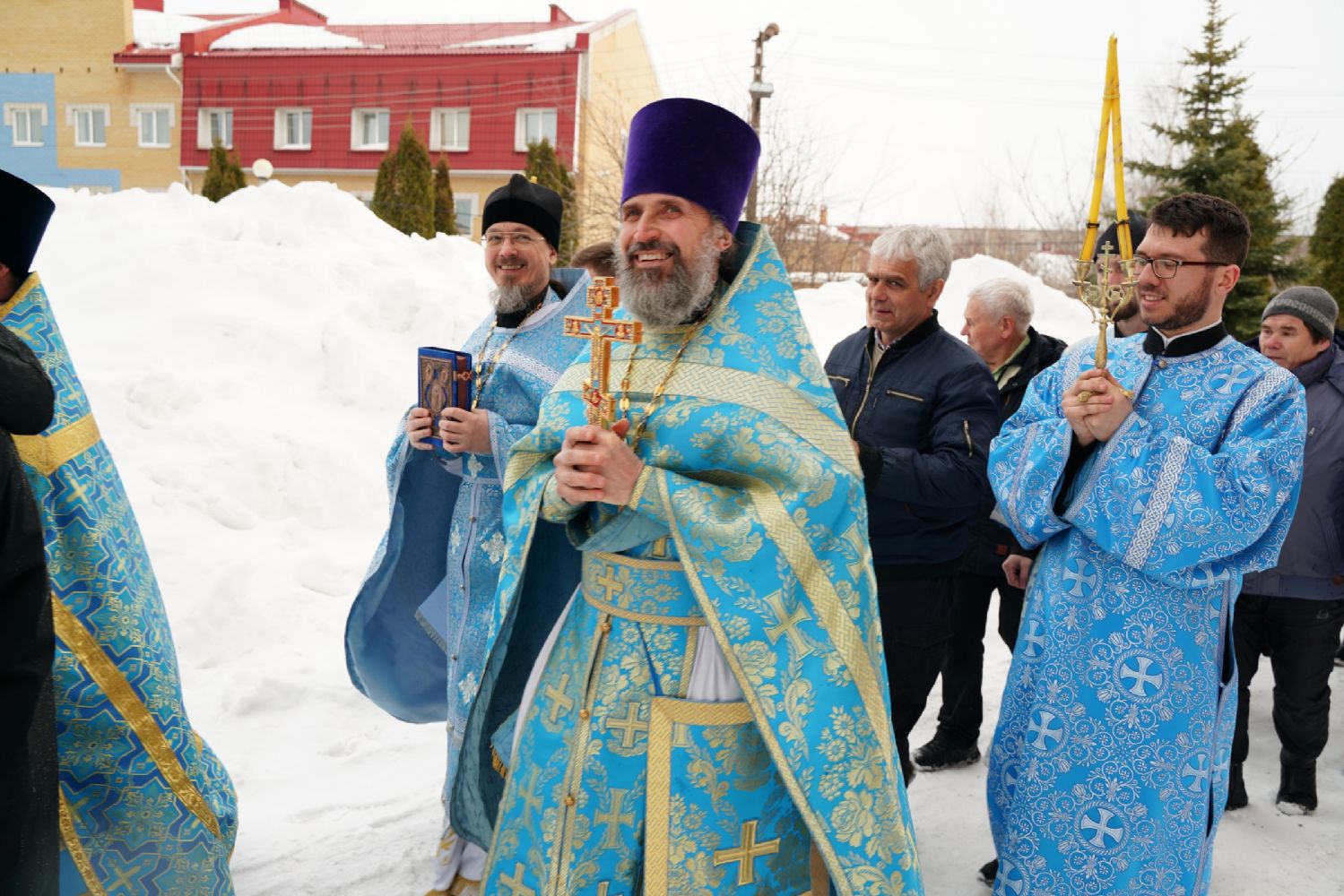 После богослужения прошел крестный ход вокруг храма со чтением Евангелия и кроплением святой водой. Затем митрополит Иоанн обратился к собравшимся с архипастырским словом, рассказав об истории иконы «Державная» – этот образ был явлен в день, когда Святая Русь лишилась царя. Пресвятая Богородица являет Себя облаченной в царские одежды, с символами царской власти в руках – чтобы засвидетельствовать всем нам, что Она, наша Небесная Владычица, Сама правит державой Российской.