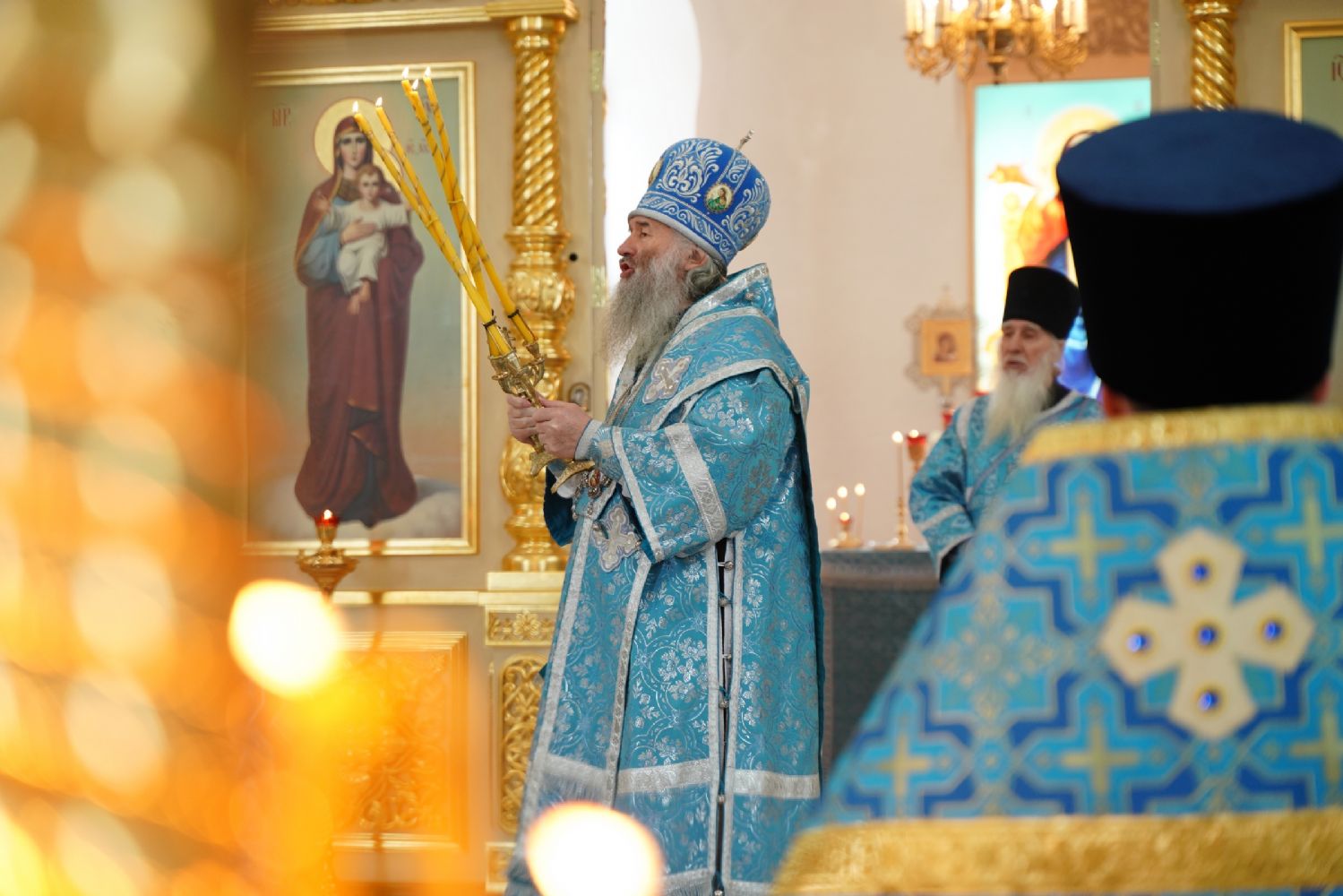 И вот, по молитвам Пречистой и сонма святых новомученников и исповедников Российских во главе с патриархом Тихоном, вера на Святой Руси возродилась, открыты храмы, нам дарована свобода жить в Бозе и прославлять величие и милость нашей Небесной Матери, но почему-то мы часто забываем о своем предназначении быть верными Ее детьми. Она от нас ждет только одного – чтобы мы своими делами и своею жизнью не оскорбляли Ее Сладчайшего Сына, своими грехами не распинали Его вновь, но были верны Ему, чтобы имели любовь между собою, а если упадем – вставали в покаянии и просили о помощи нашу державную правительницу Святой Руси. Она и поныне управляет нами, и попускает нам скорби, чтобы мы опомнились, пришли в познание истины и хранили святую веру Христову, чтобы в этой невидимой духовной брани, которую диавол ведет против Святой Руси, мы в молитве, в покаянии и в благочестивой жизни Христовой свидетельствовали, что мы – воистину верные чада Пречистой», – отметил владыка Иоанн.