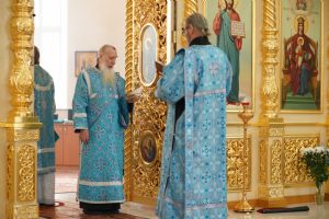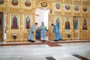 Божественную литургию в этот день здесь возглавил митрополит Йошкар-Олинский и Марийский Иоанн. Владыке сослужили благочинный Медведевского церковного округа иерей Александр Козлов, настоятель храма протоиерей Алексий Михайлов, настоятель Казанского храма с. Нурма иерей Александр Коваль, протодиакон Михаил Козловский и клирик храма п. Медведево диакон Игорь Кочуев. Песнопения исполнял хор храма под управлением регента Ольги Михайловой.