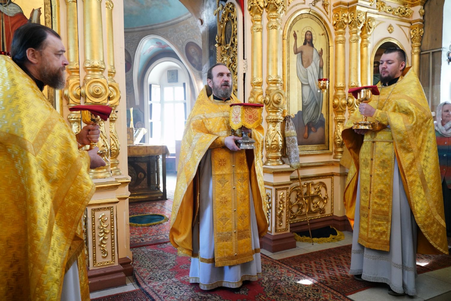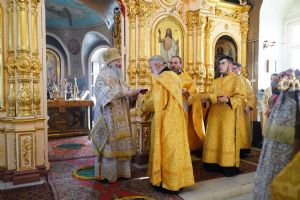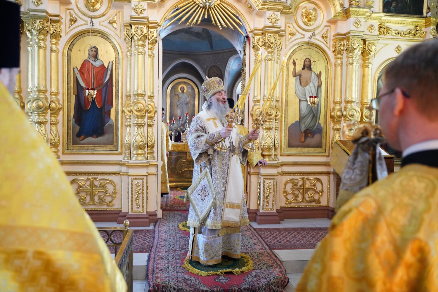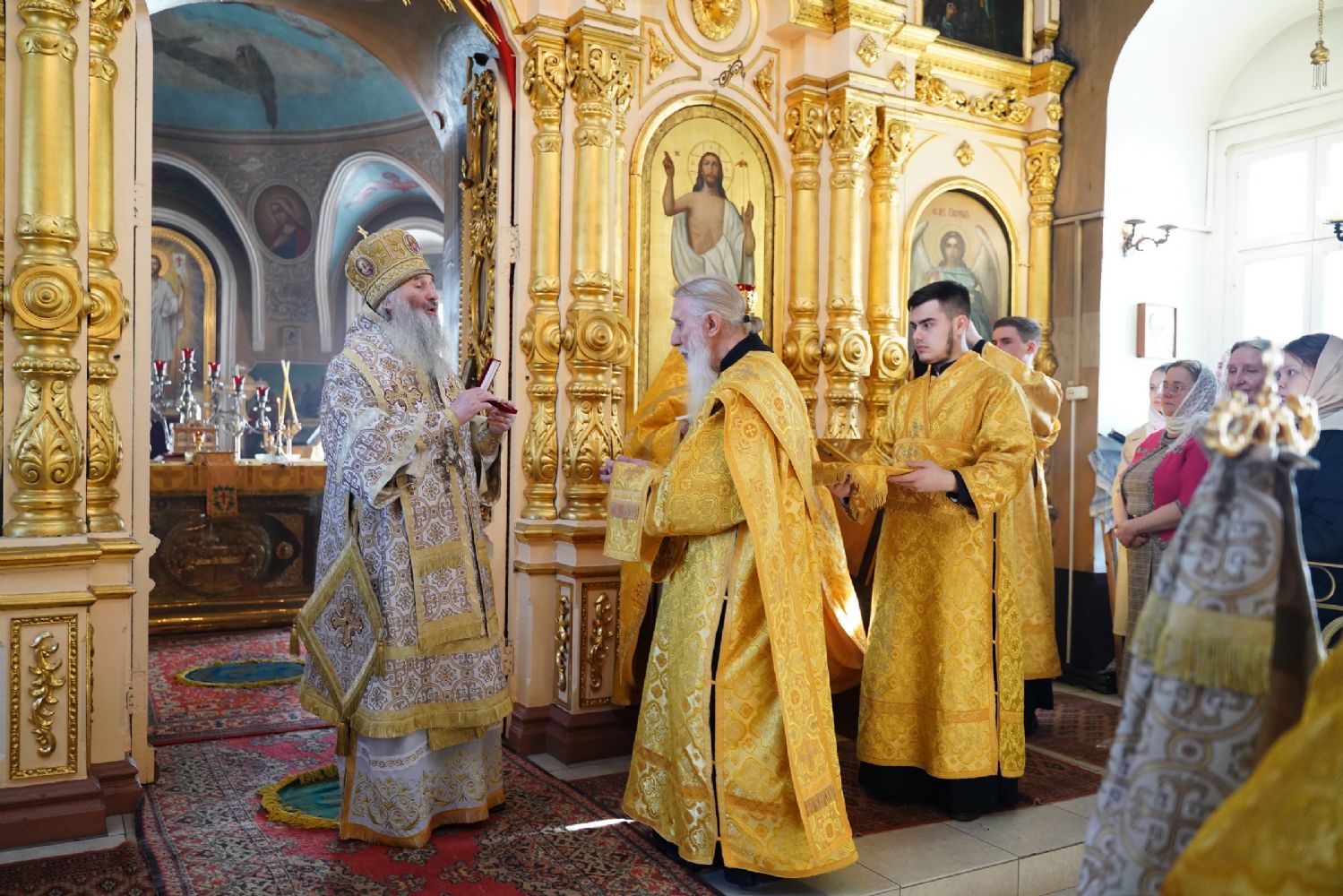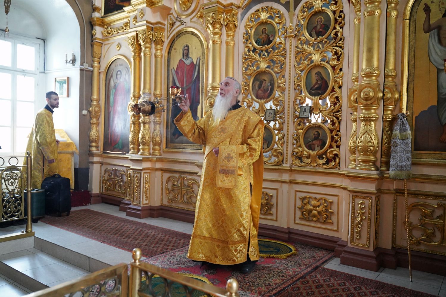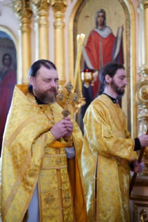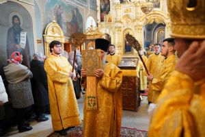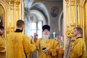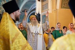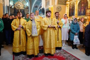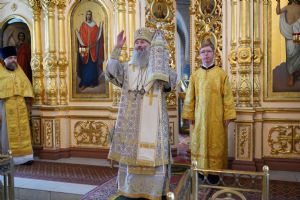 Его Высокопреосвященству сослужили секретарь Йошкар-Олинского епархиального управления иеромонах Серафим (Пасанаев), ключарь храма протоиерей Михаил Ильин, клирики храма иерей Павел Дурандин и протодиакон Михаил Козловский. Песнопения исподнял хор храма под управлением Ирины Лебедевой.