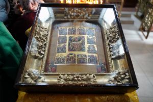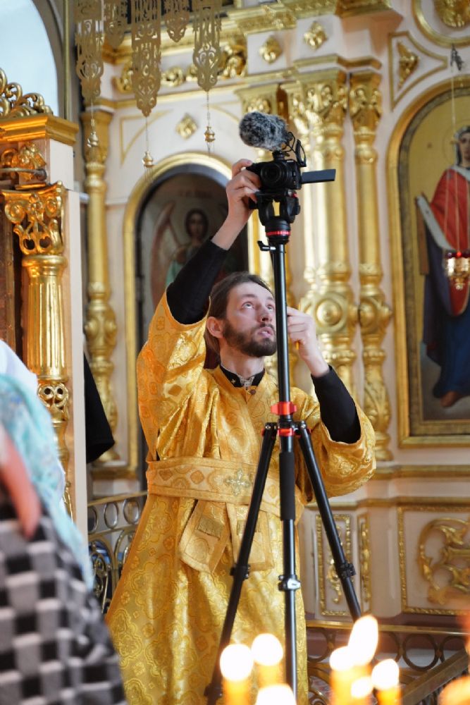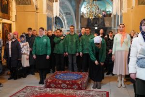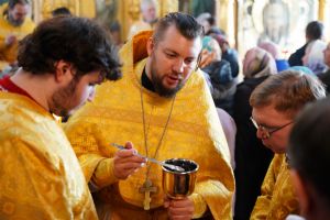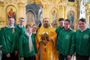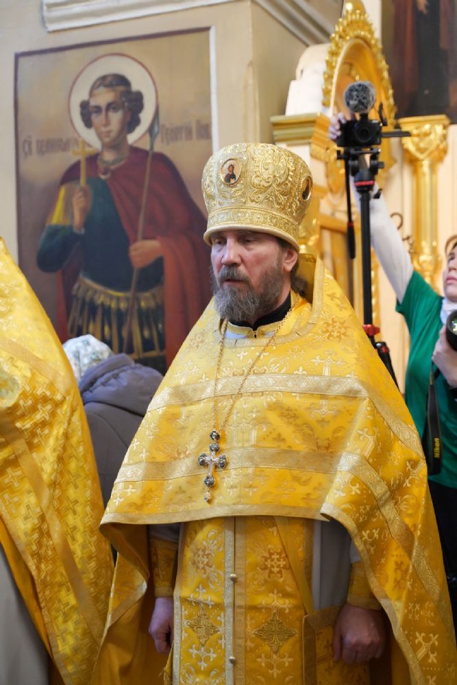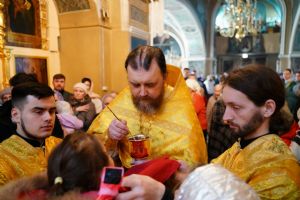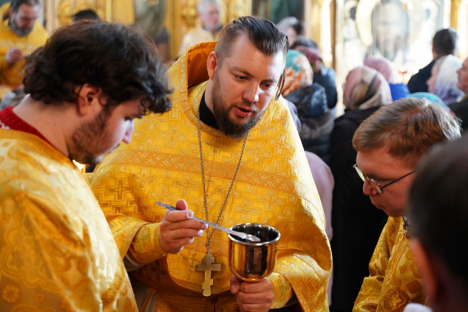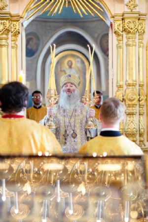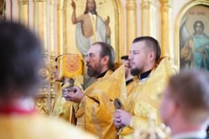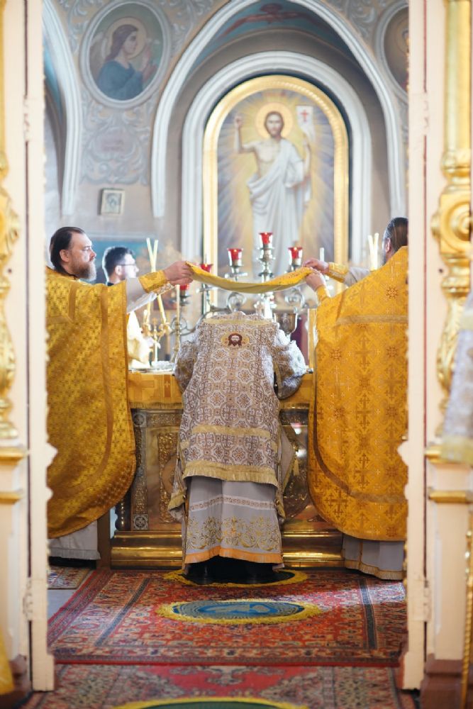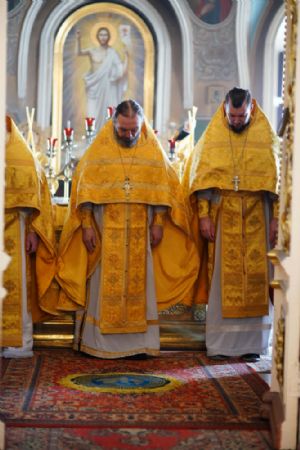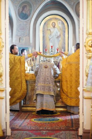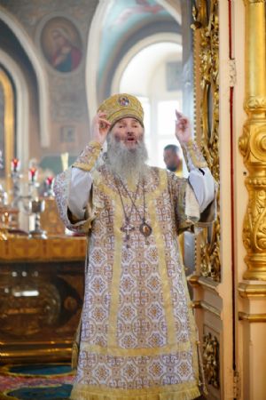 Его Высокопреосвященству сослужили секретарь Йошкар-Олинского епархиального управления иеромонах Серафим (Пасанаев), ключарь храма протоиерей Михаил Ильин, клирики храма иерей Павел Дурандин и протодиакон Михаил Козловский. Песнопения исподнял хор храма под управлением Ирины Лебедевой.