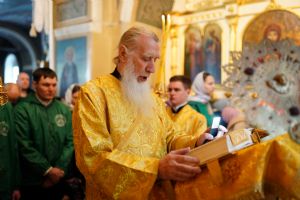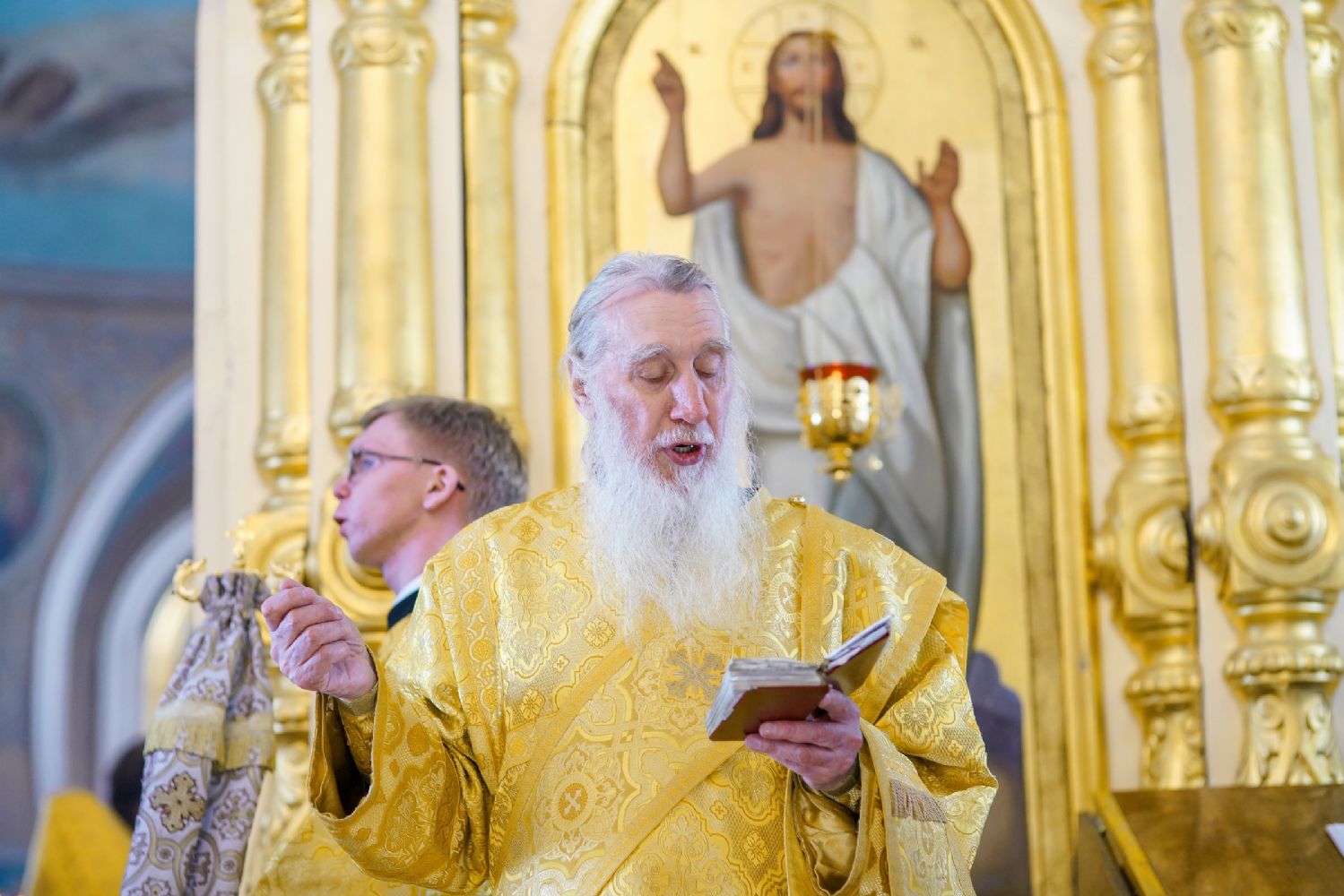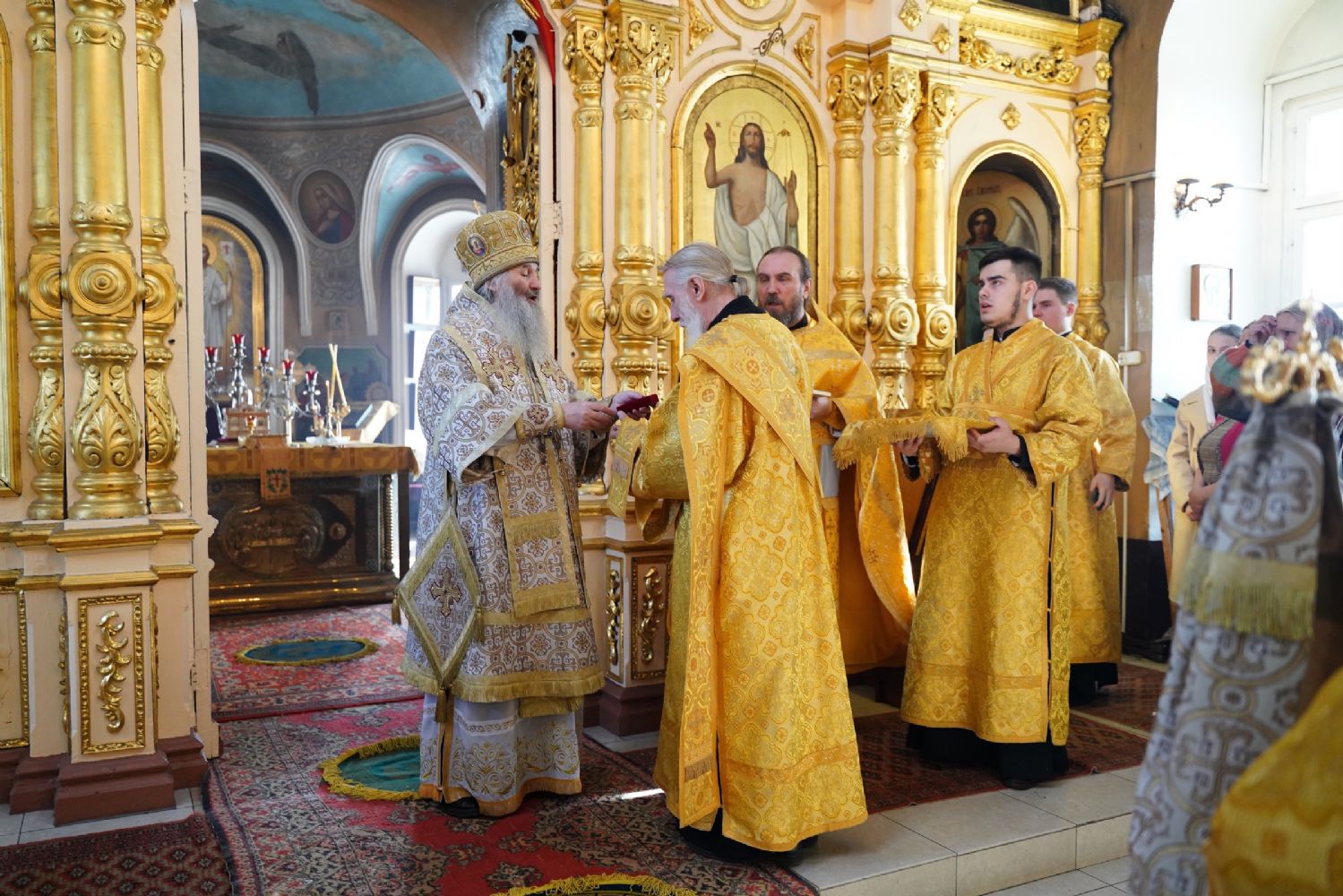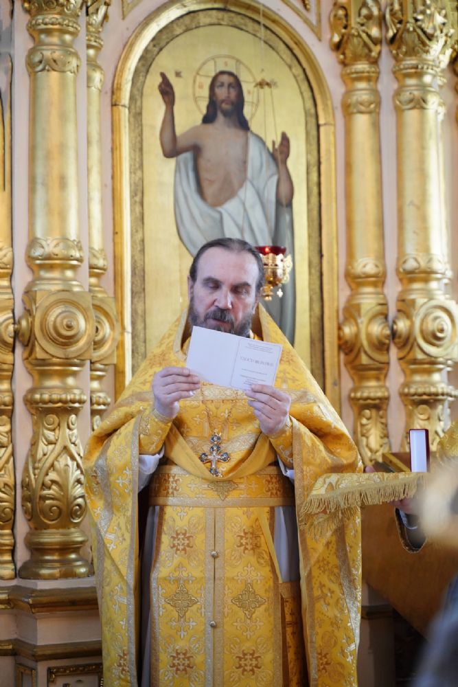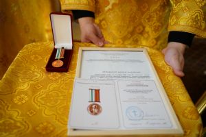По отпусте Литургии митрополит Иоанн вручил протодиакону Михаилу Козловскому награду – медаль священномученика Леонида, епископа Марийского, III степени – за особый вклад в созидание церковной жизни в Йошкар-Олинской епархии и в связи с 75-летием со дня рождения.