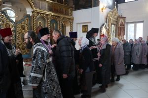 Владыке сослужили клирики собора, песнопения исполнял архиерейский хор под управлением Любови Михеевой.