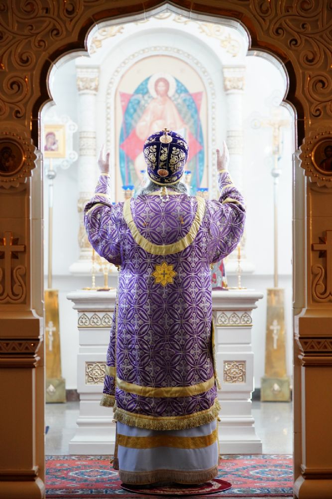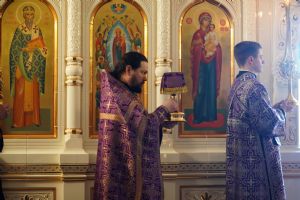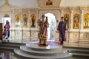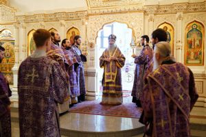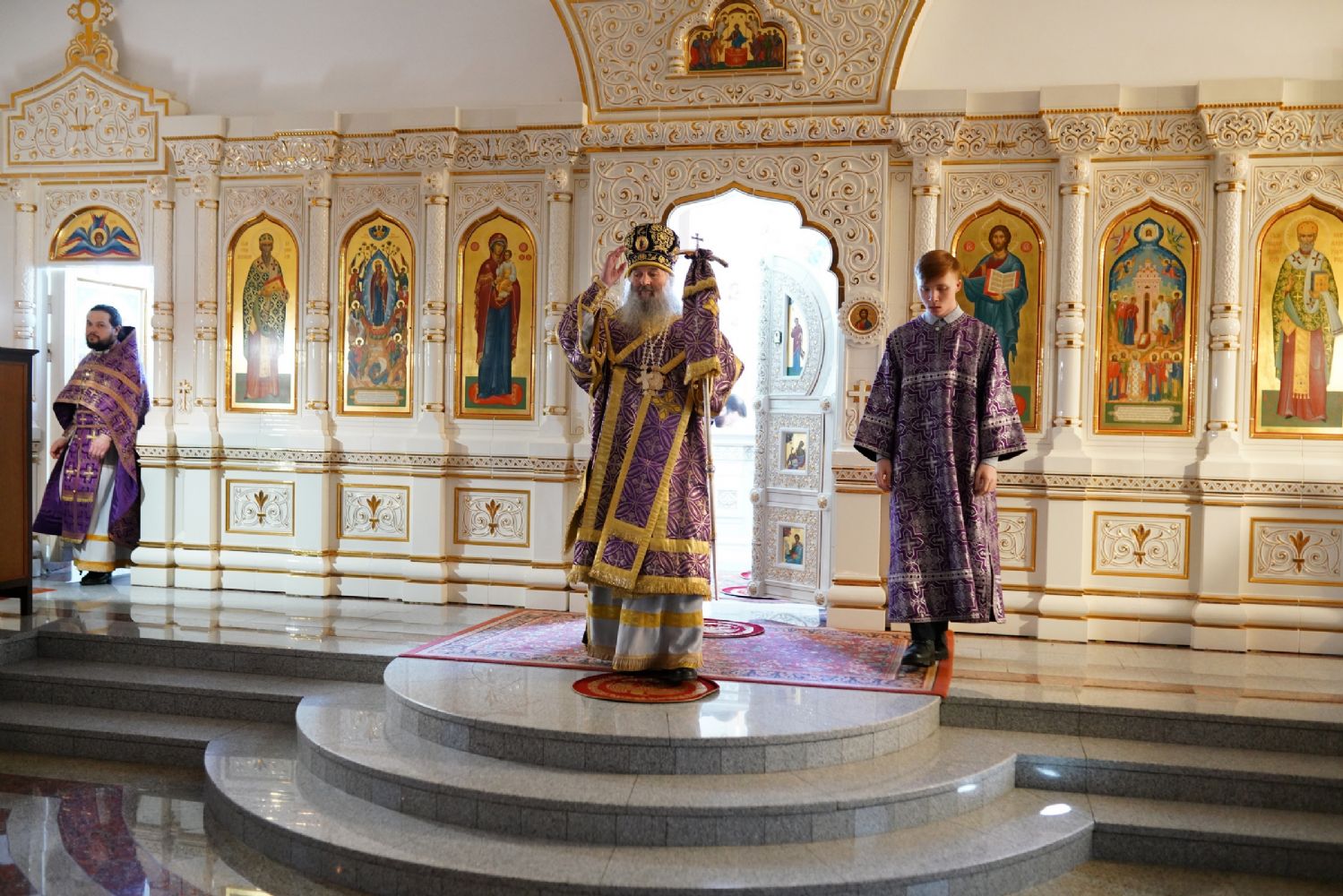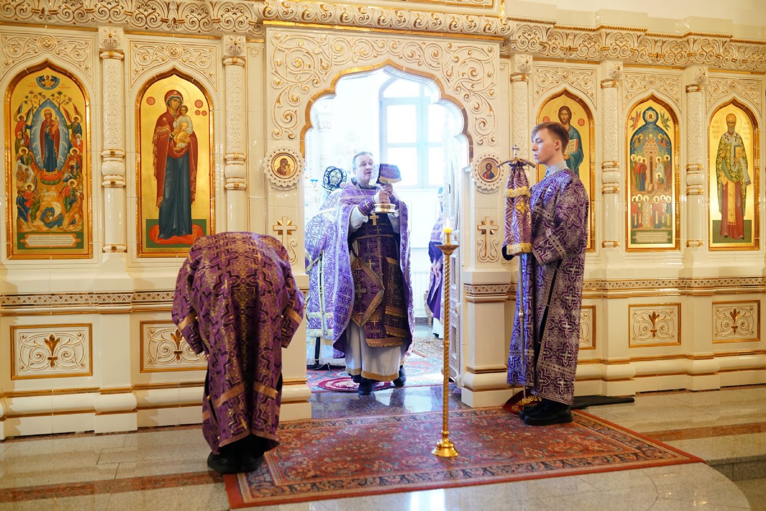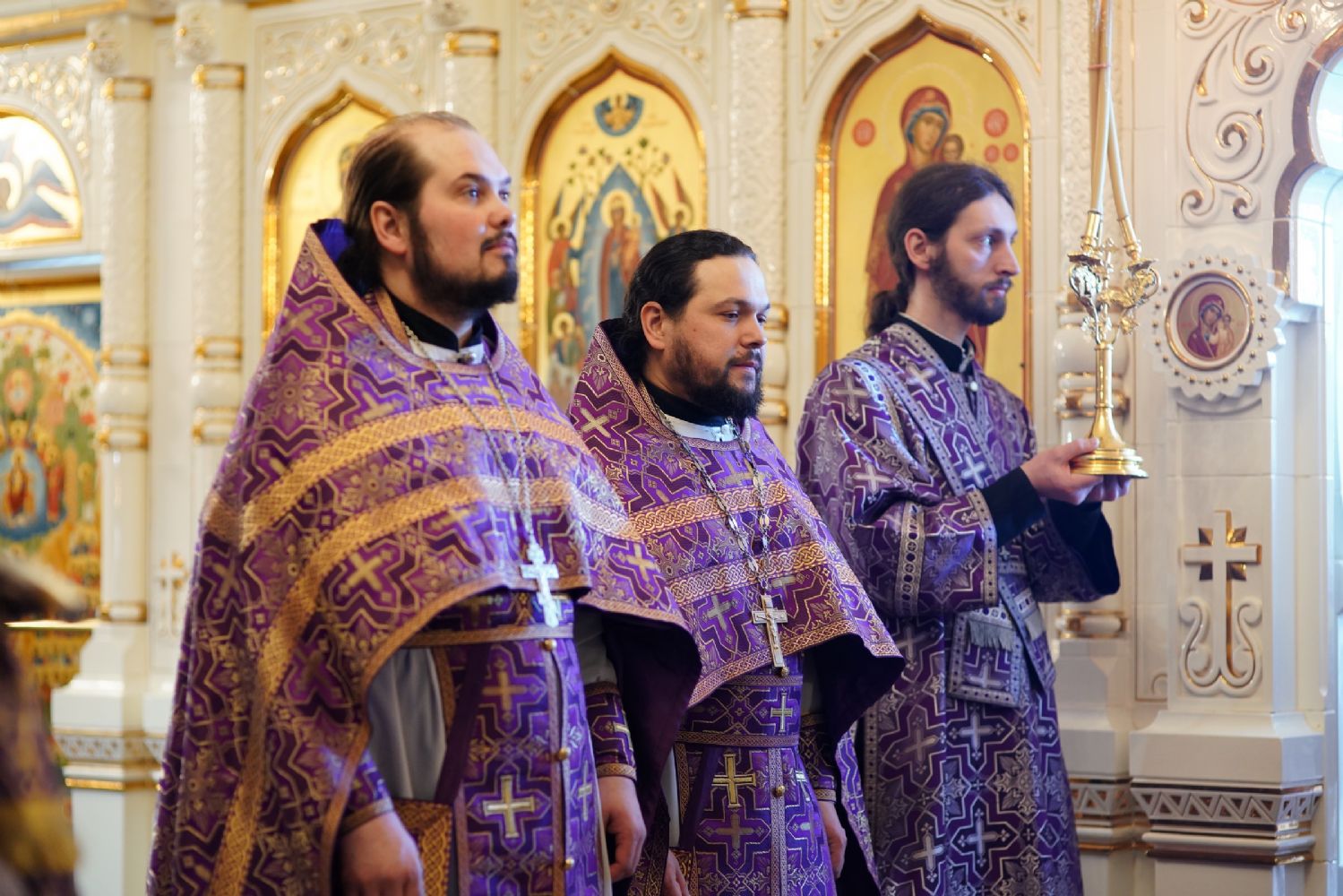 Архипастырю сослужили ключарь кафедрального собора протоиерей Сергий Поглазов, клирики собора и протодиакон Михаил Козловский. Песнопения исполнял малый состав хора «Благовест» под руководством регента Татьяны Черновой.
