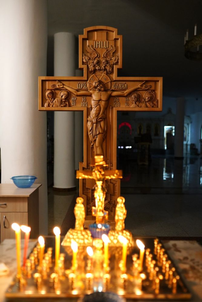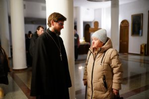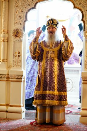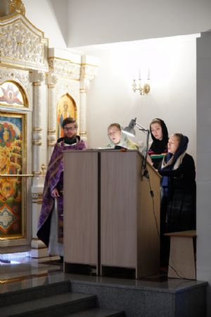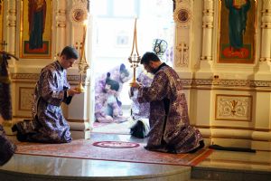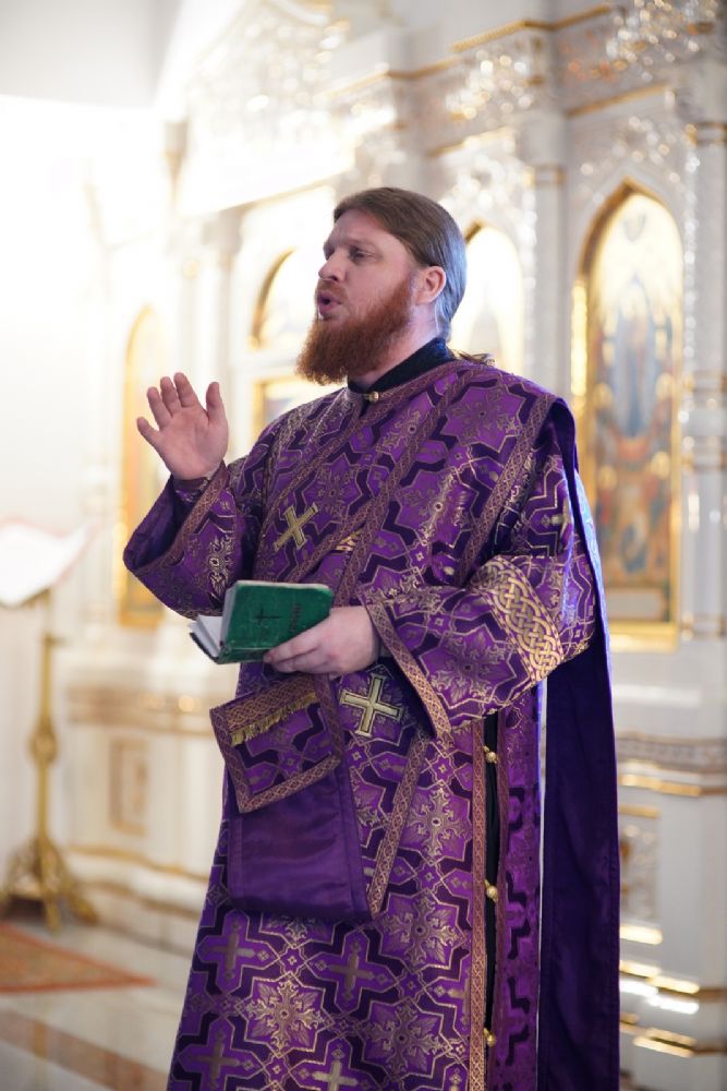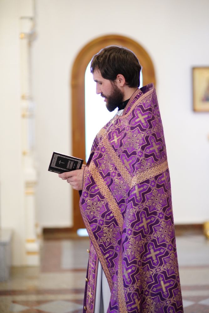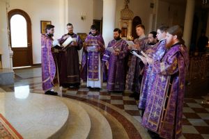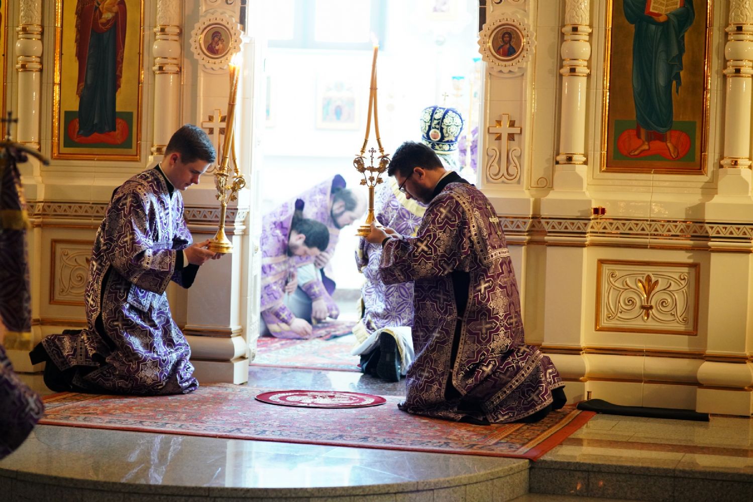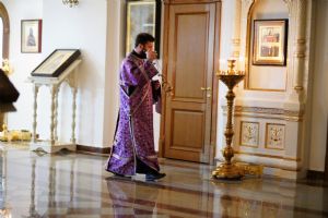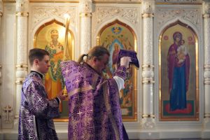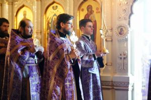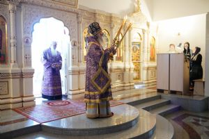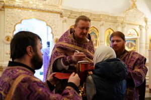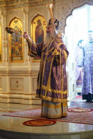 Архипастырю сослужили ключарь кафедрального собора протоиерей Сергий Поглазов, клирики собора и протодиакон Михаил Козловский. Песнопения исполнял малый состав хора «Благовест» под руководством регента Татьяны Черновой.
