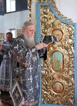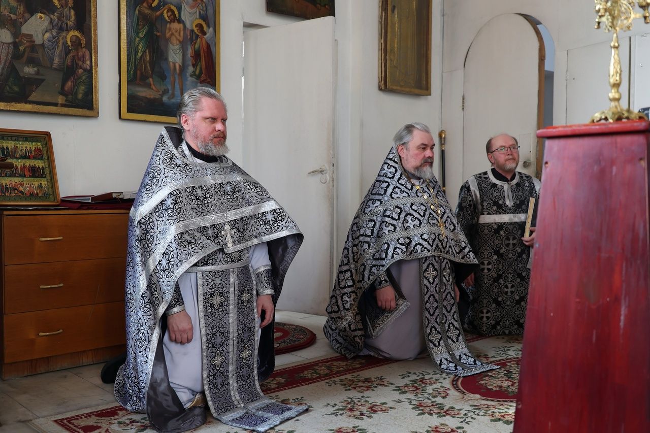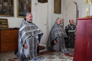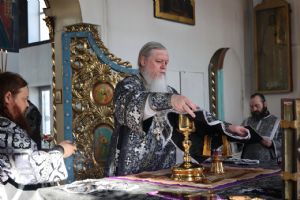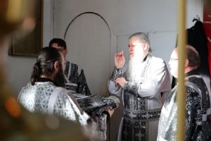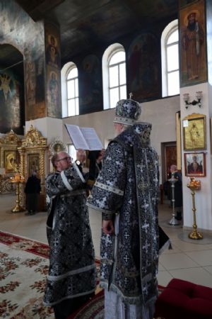 Его Преосвященству сослужили клирики собора протоиерей Виталий Михеев, иеромонах Авель Крашенинников, иерей Сергий Першаков, диакон Иоанн Захаров и диакон Герман Михайлов. Песнопения исполнял архиерейский хор.