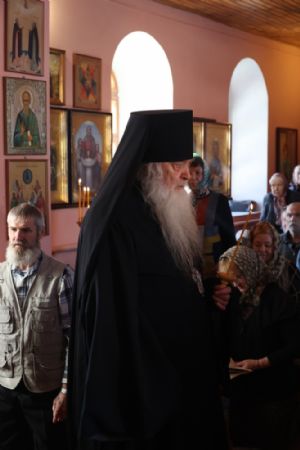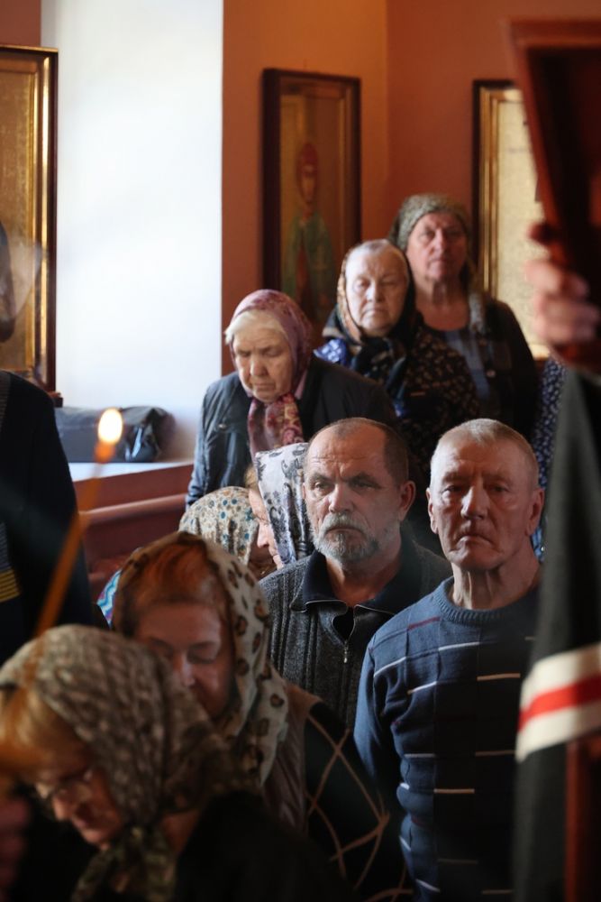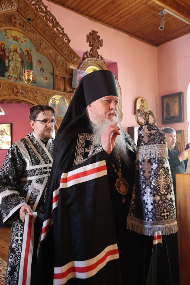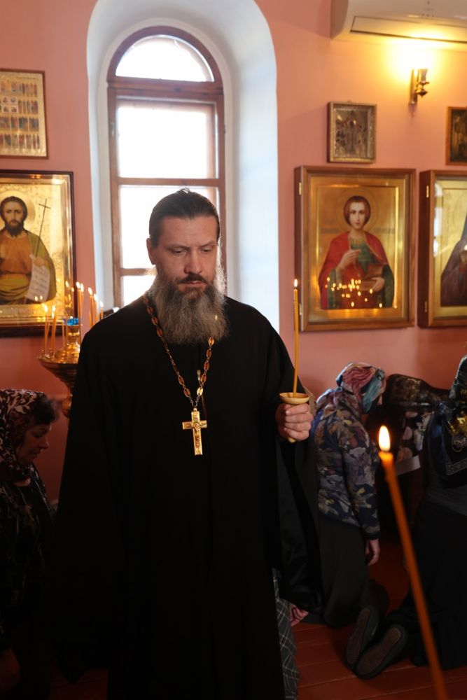 После богослужения епископ Феофан вручил в дар духовнику Волжской епархии настоятелю храма иеромонаху Иоанну (Панину) деревянный крест с украшением для Великого поста и обратился к прихожанам с чтением Пролога.