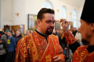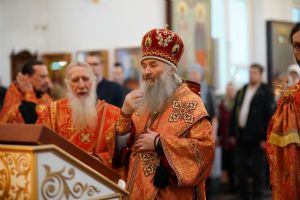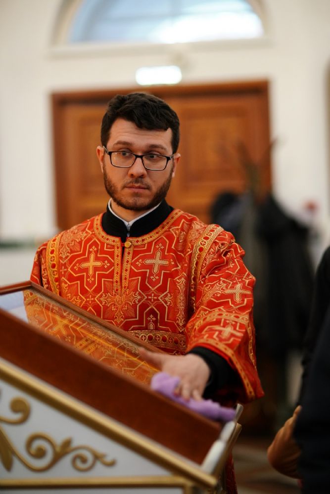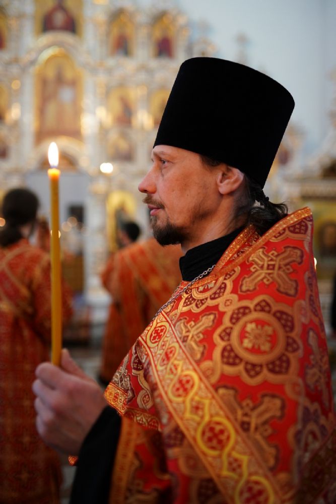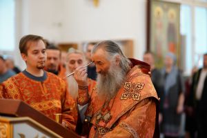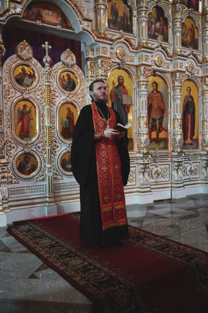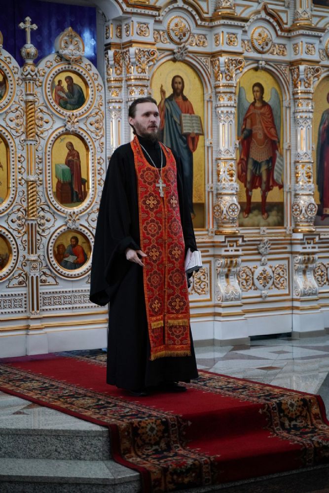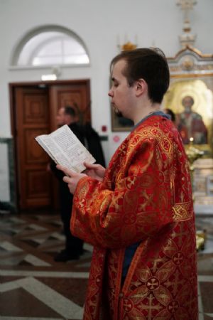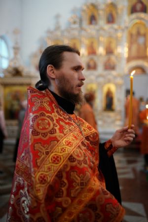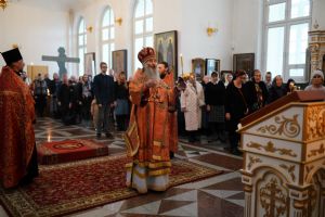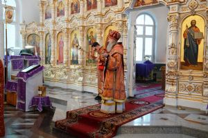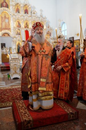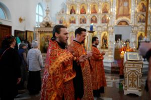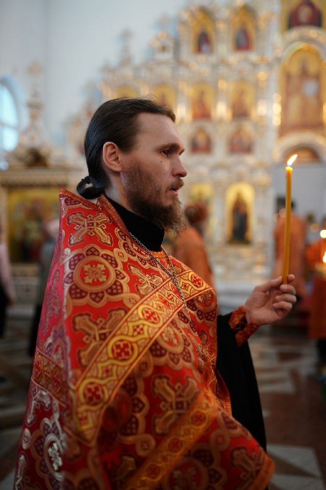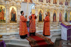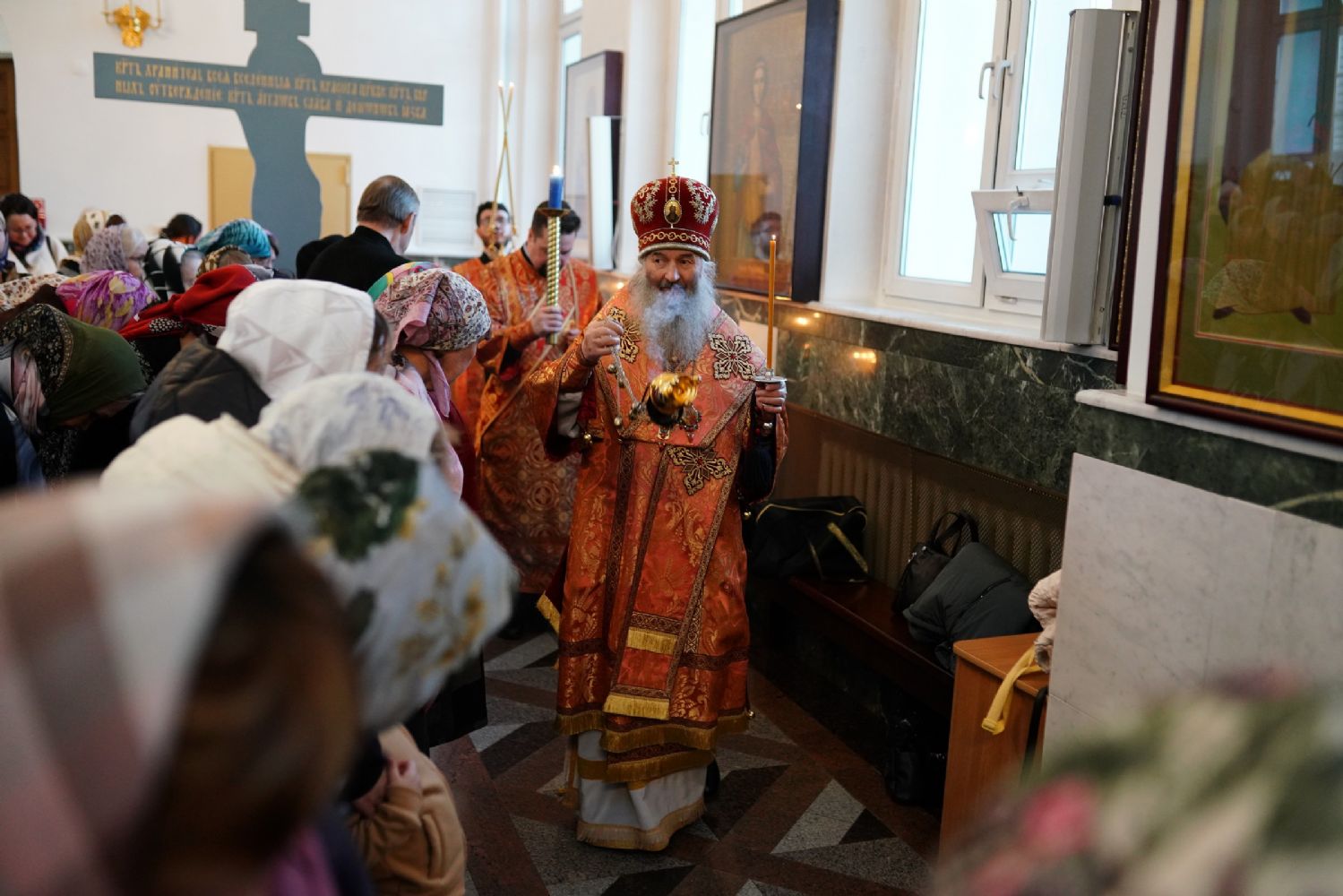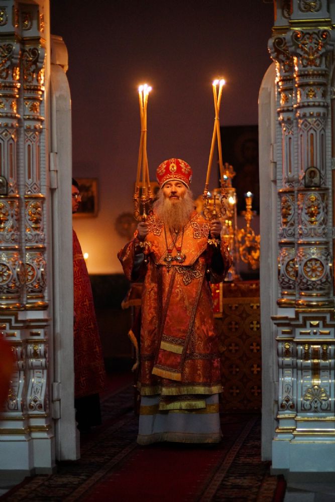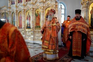 Владыке сослужили настоятель собора иерей Андрей Кочаков, клирики собора иерей Димитрий Лукьянов и диакон Алексий Кузнецов, а также протодиакон Михаил Козловский. Песнопения исполнял хор собора под управлением регента Елены Поглазовой.