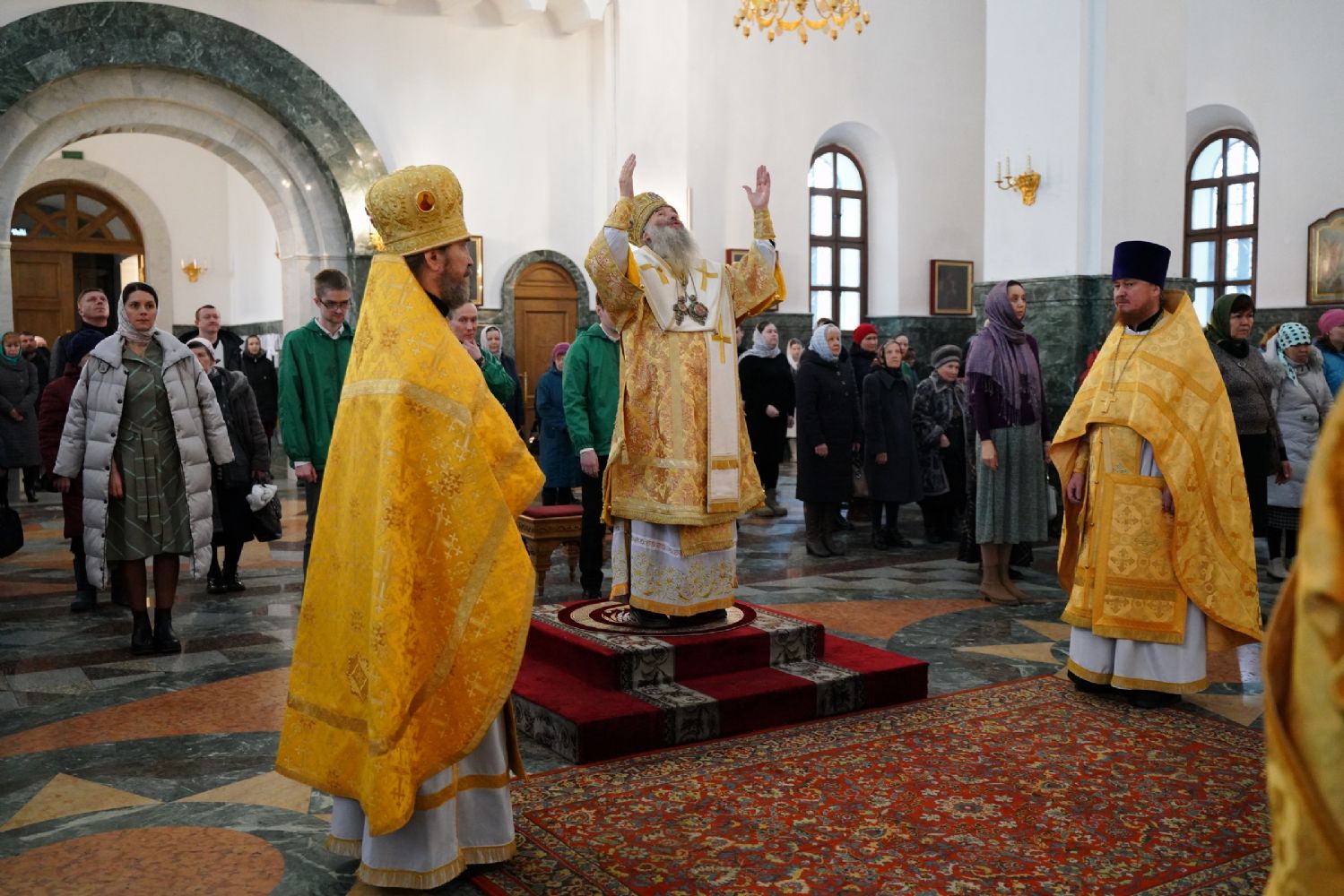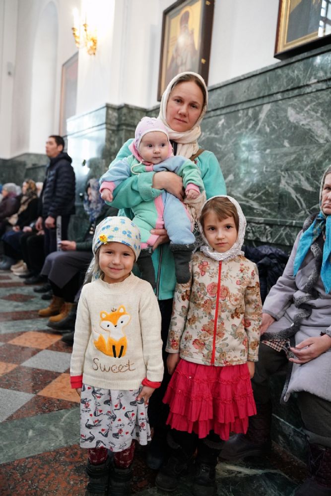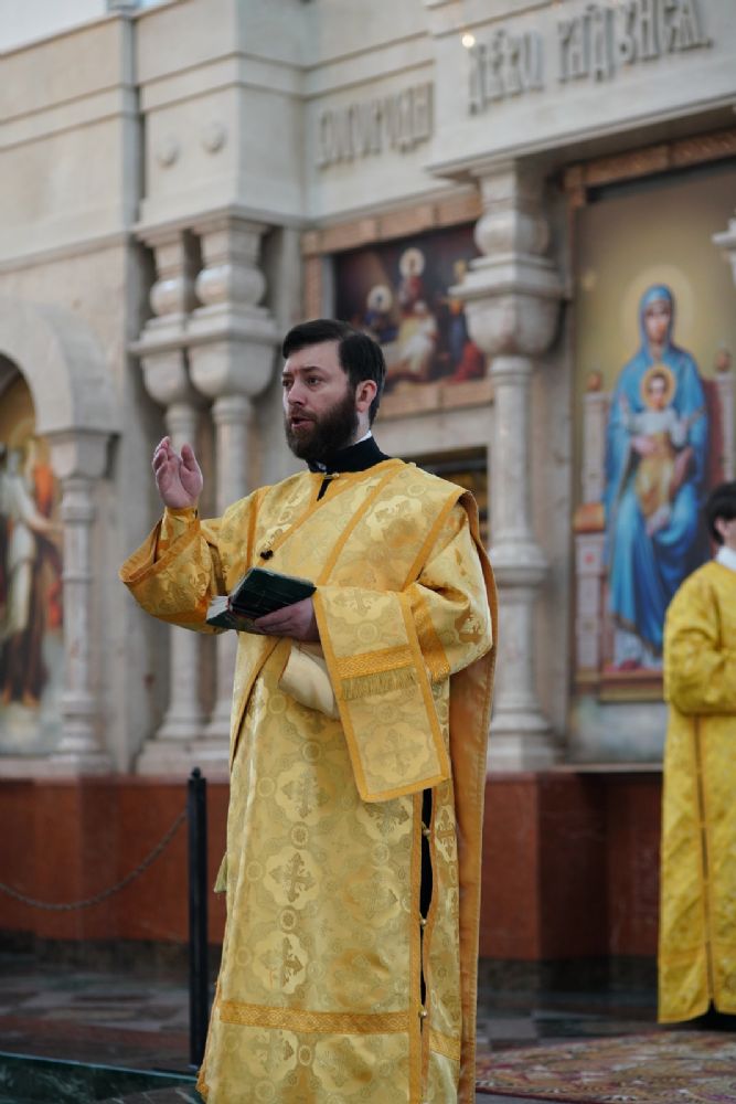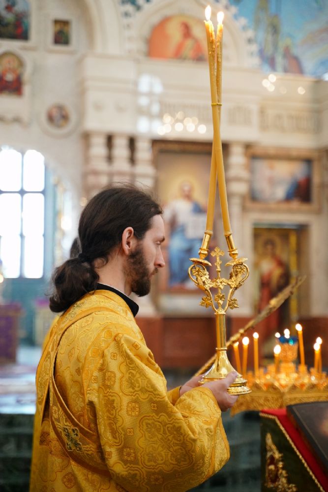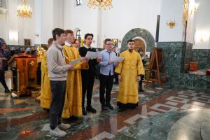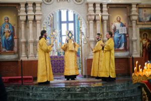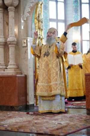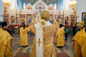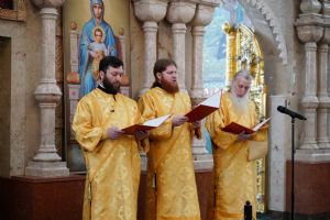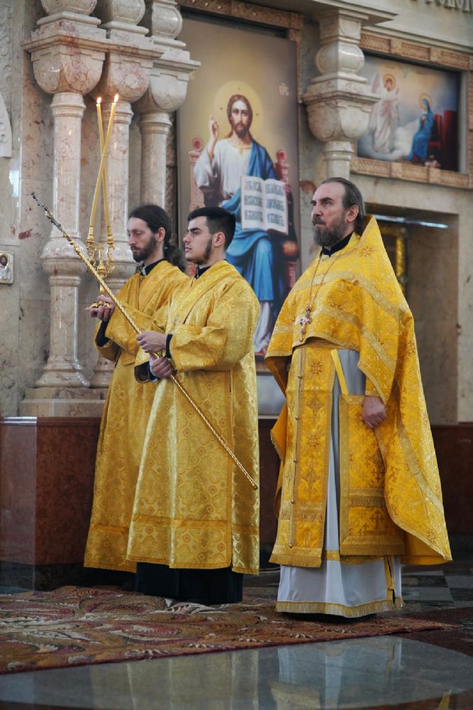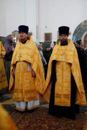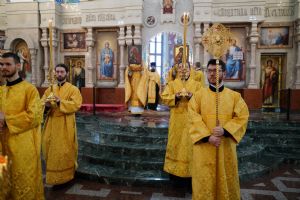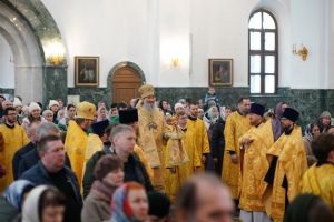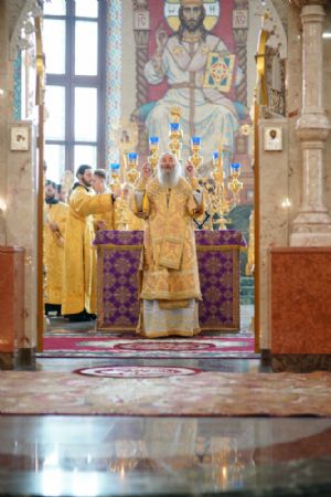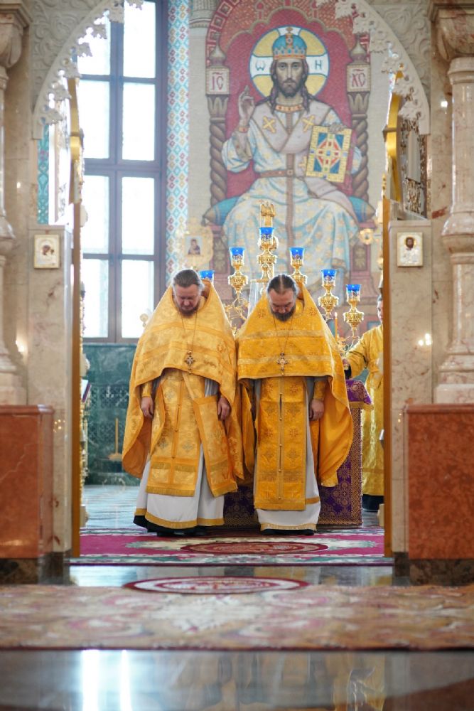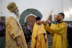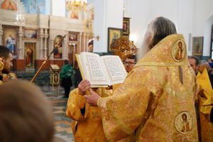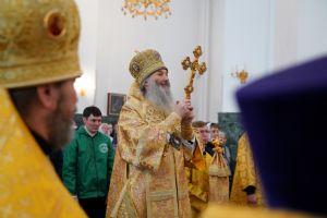 Его Высокопреосвященству сослужили секретарь Йошкар-Олинского епархиального управления архимандрит Серафим (Пасанаев), ключарь кафедрального собора протоиерей Сергий Поглазов, клирики собора и протодиакон Михаил Козловский. Песнопения исполняли старший и младший составы детско-юношеского хора «Благовест» под управлением регентов Татьяны Черновой и Надежды Поздеевой. Часть песнопений звучала на марийском языке.