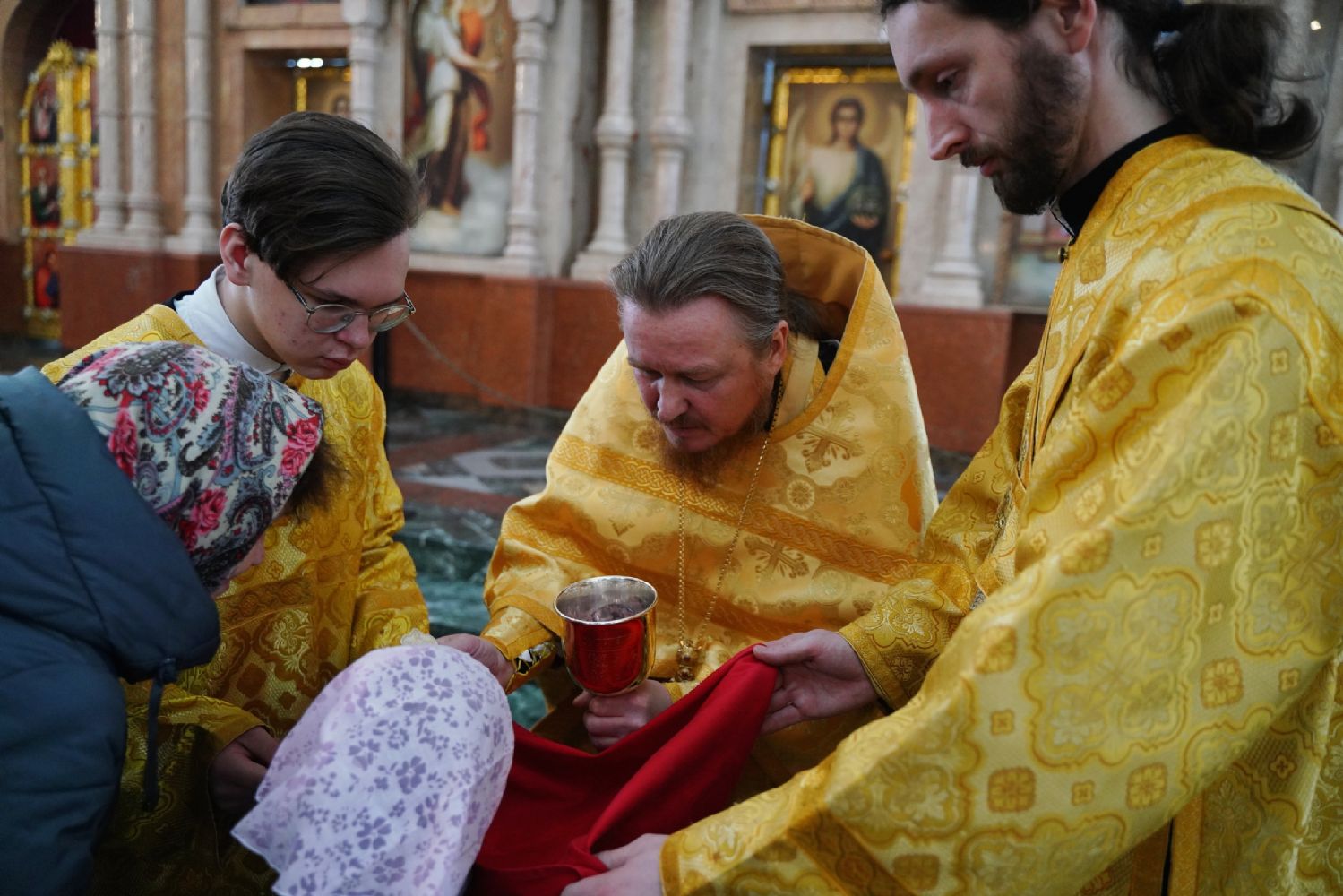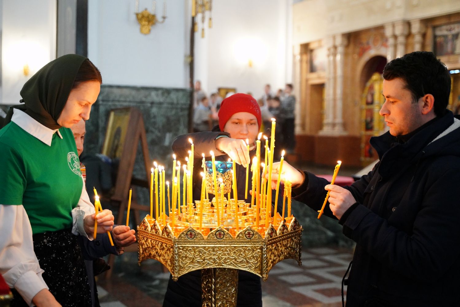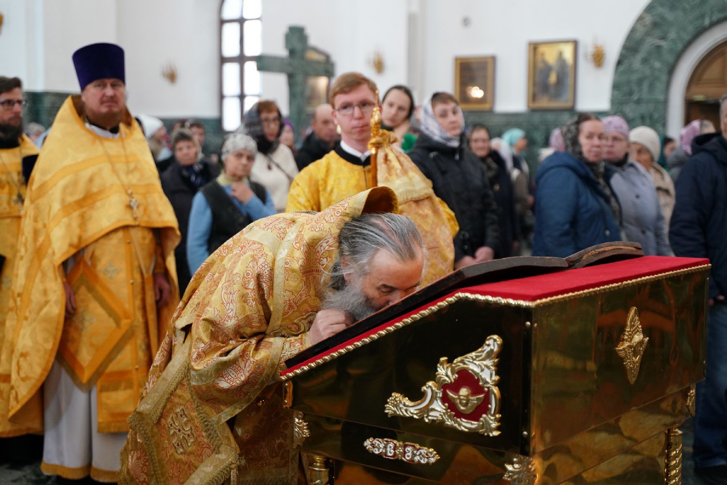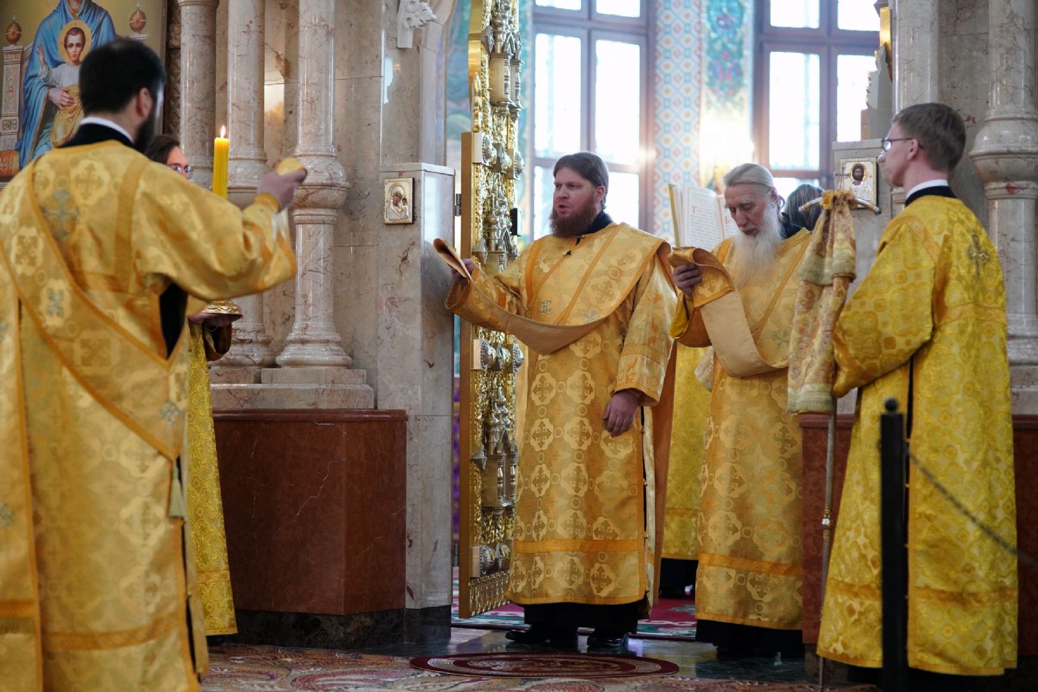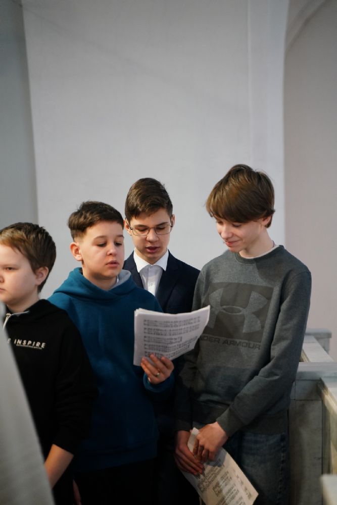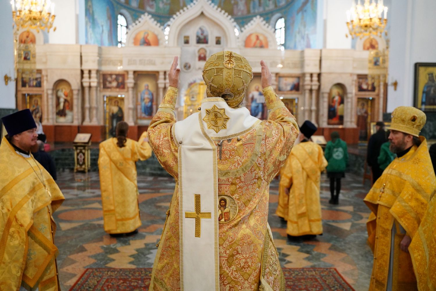 Его Высокопреосвященству сослужили секретарь Йошкар-Олинского епархиального управления архимандрит Серафим (Пасанаев), ключарь кафедрального собора протоиерей Сергий Поглазов, клирики собора и протодиакон Михаил Козловский. Песнопения исполняли старший и младший составы детско-юношеского хора «Благовест» под управлением регентов Татьяны Черновой и Надежды Поздеевой. Часть песнопений звучала на марийском языке.