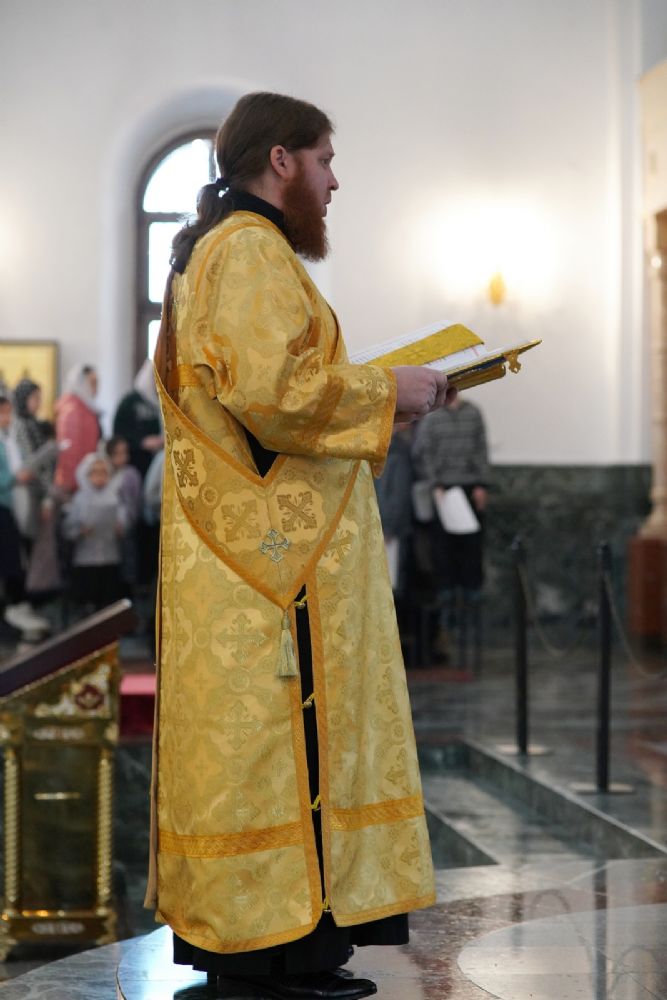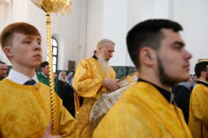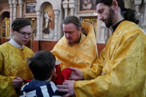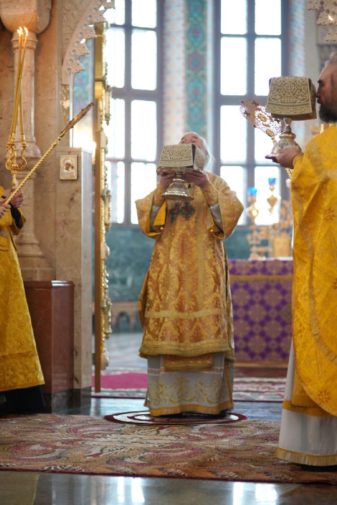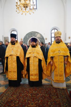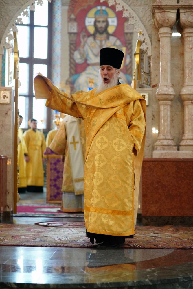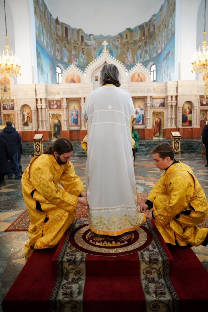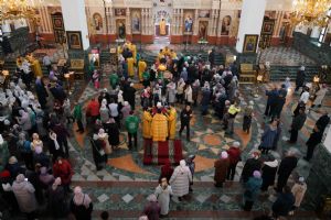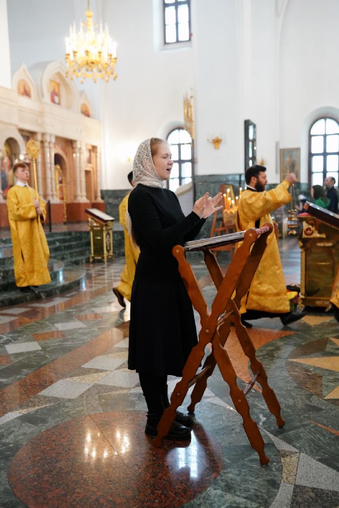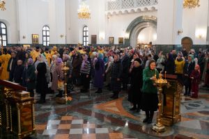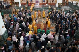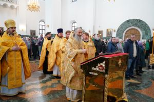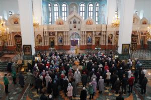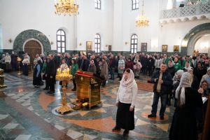 После Божественной литургии был совершен чин Торжества Православия. В центр собора священнослужители вынесли иконы Иисуса Христа и Пресвятой Богородицы. Помимо обычного для молебнов псалма, ектеньи, чтений из Апостола, Евангелия и молитвы, были исполнены особые возглашения анафем за различные ереси, расколы и иные уклонения от Православия. Тем же, кто утверждал и утверждает православную веру, было пропето многолетие, а усопшим – вечная память.