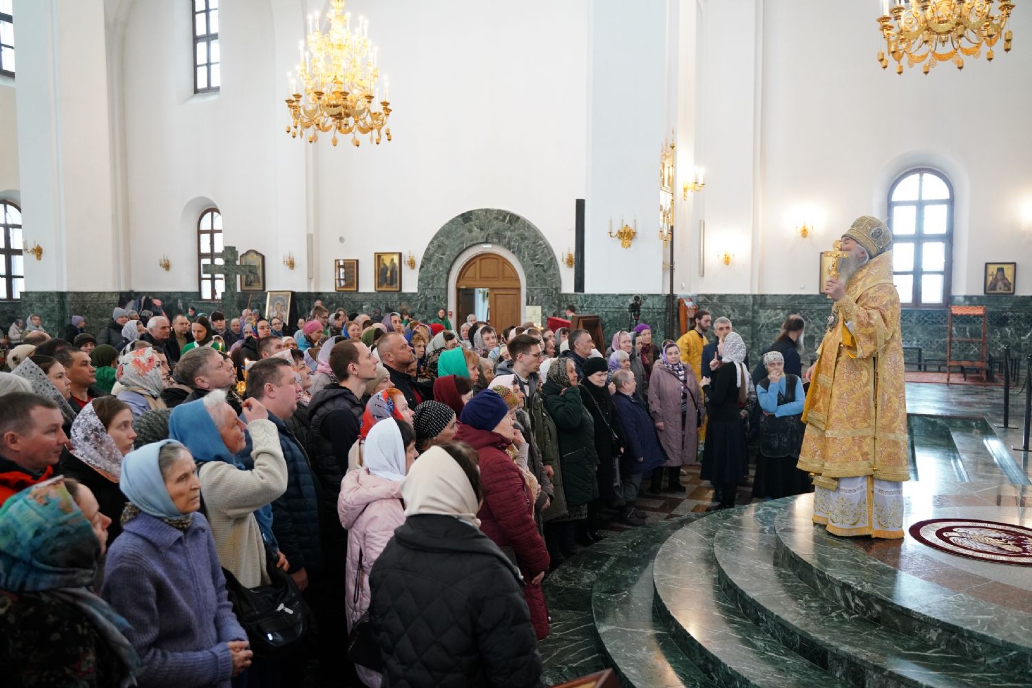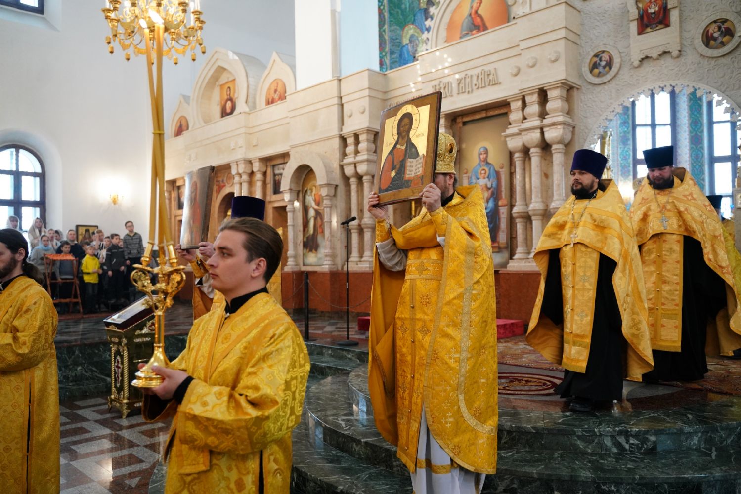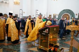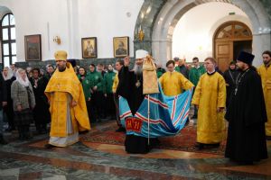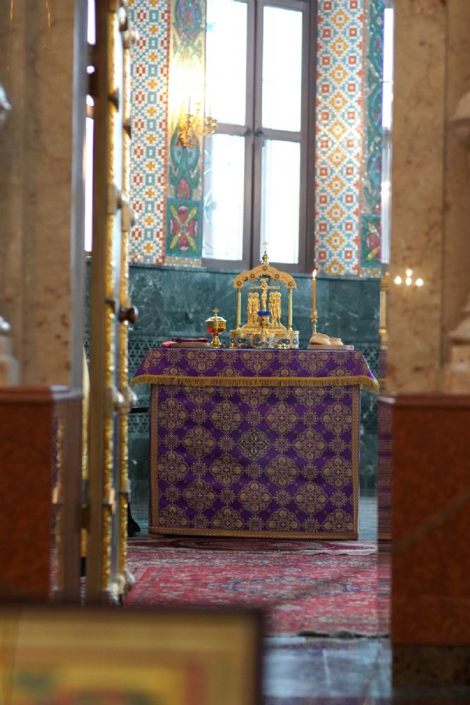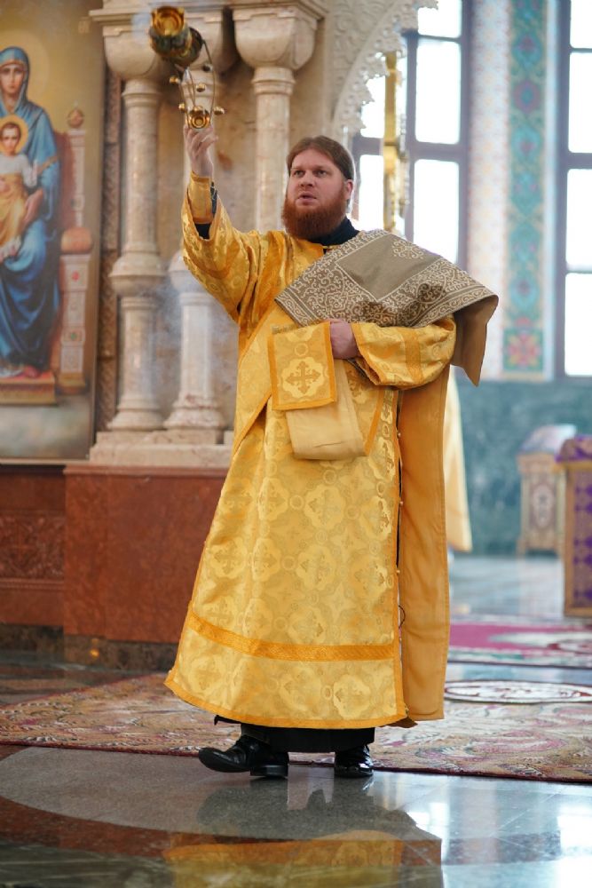 После Божественной литургии был совершен чин Торжества Православия. В центр собора священнослужители вынесли иконы Иисуса Христа и Пресвятой Богородицы. Помимо обычного для молебнов псалма, ектеньи, чтений из Апостола, Евангелия и молитвы, были исполнены особые возглашения анафем за различные ереси, расколы и иные уклонения от Православия. Тем же, кто утверждал и утверждает православную веру, было пропето многолетие, а усопшим – вечная память.