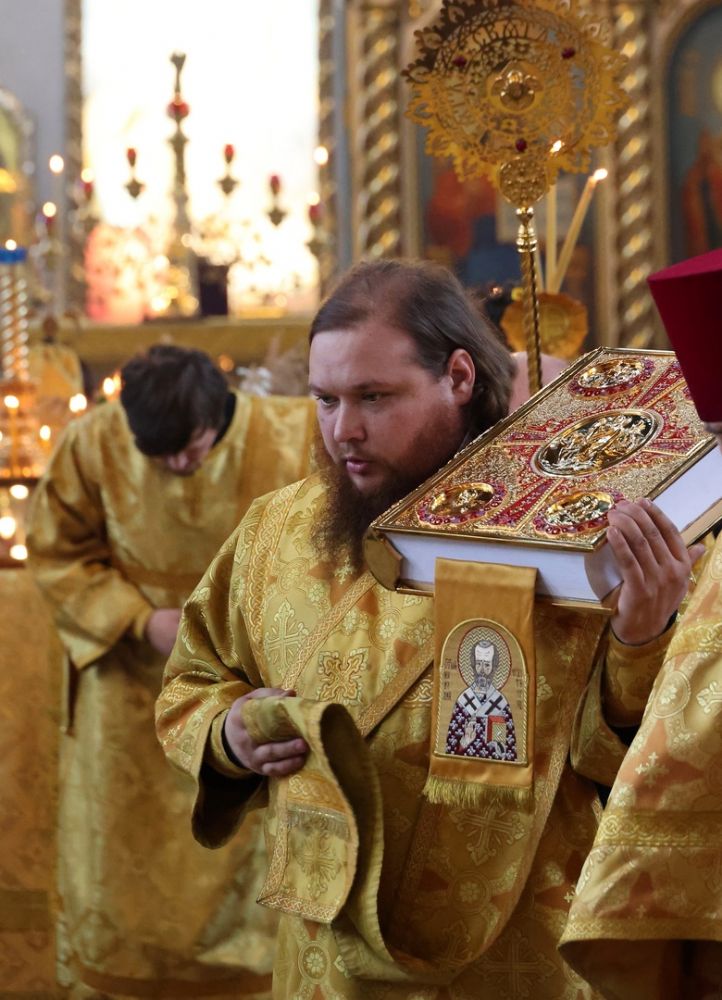 Его Преосвященству сослужи клирики кафедрального собора иерей Александр Усков, иеромонах Авель (Крашенинников), иерей Сергий Першаков, диакон Иоанн Захаров, диакон Герман Михайлов. Песнопения исполнил архиерейский хор под руководством Любови Михеевой.
