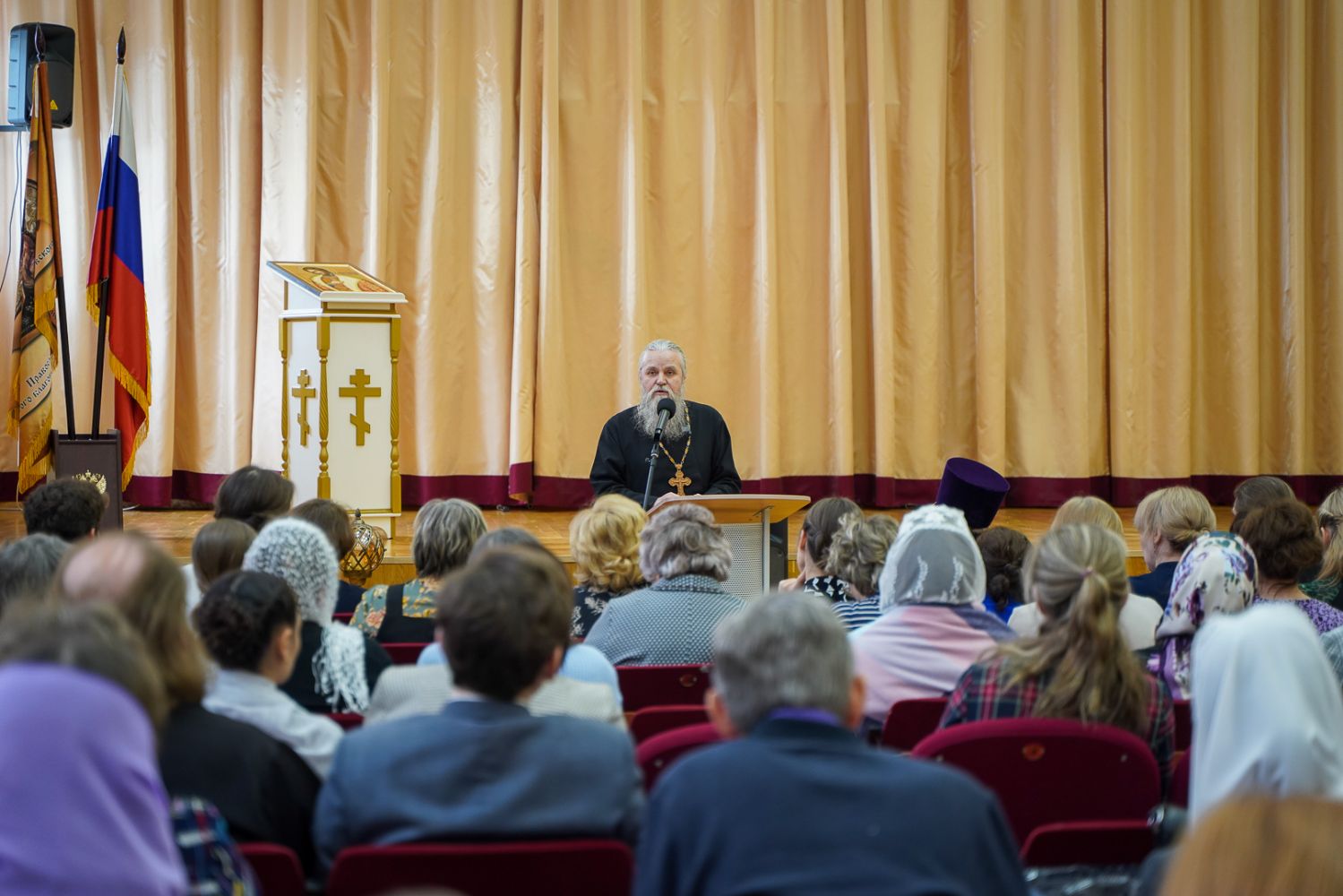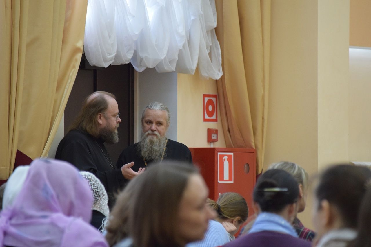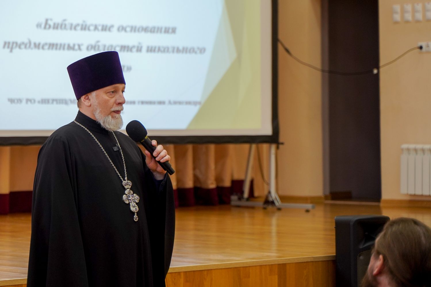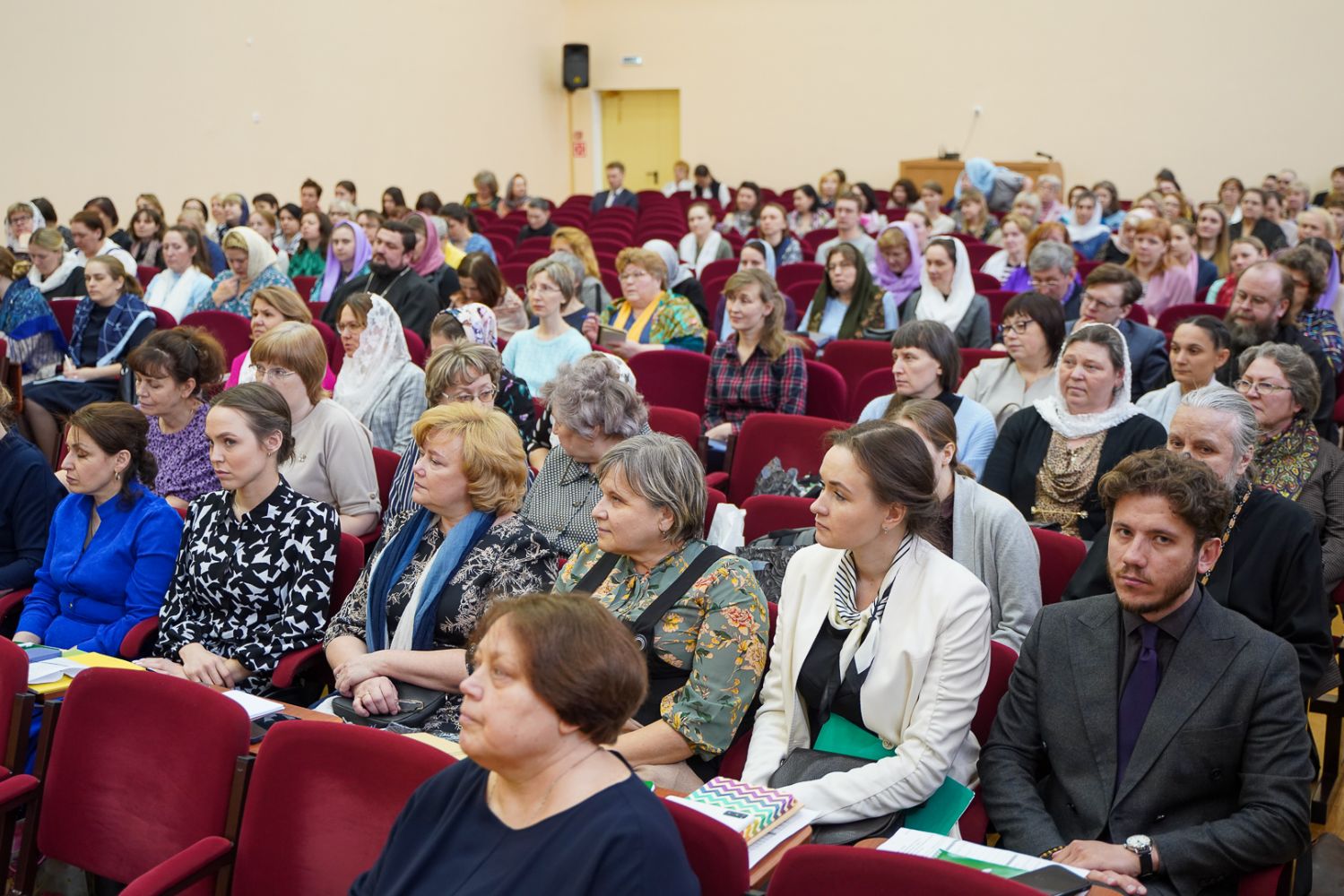 Директор гимназии преподобного Сергия Радонежского протоиерей Евгений Сурков прочитал лекцию по библейской антропологии. Далее работа продолжилась по пяти секциям: «Русский, иностранные и древние языки», «История», «Начальная школа», «Естествознание и математика», «Дошкольное образование». Участники секционных заседаний рассмотрели научно-методические разработки по обозначенной тематике.