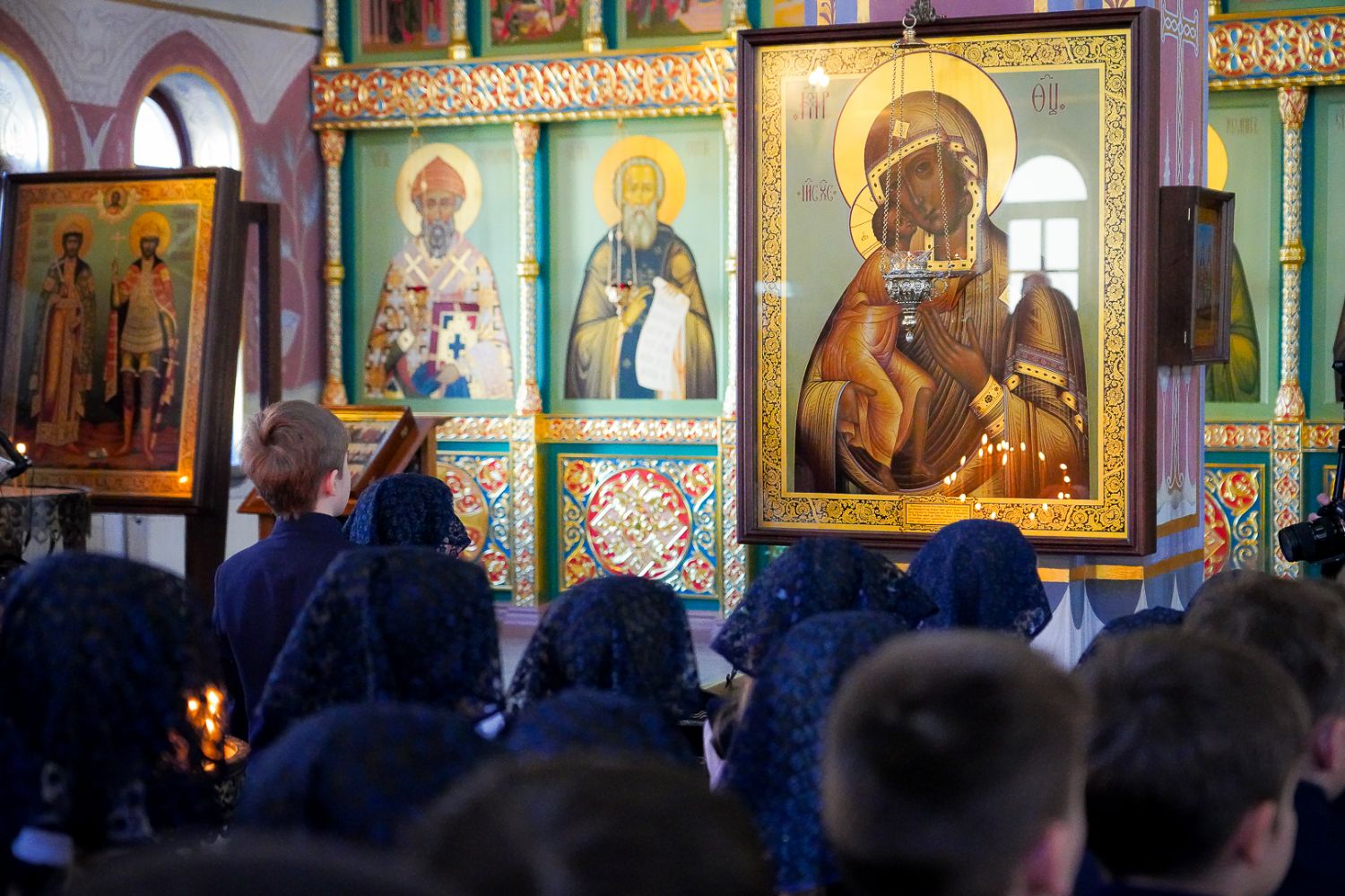 На следующий день участники заседания Ассоциации и учащиеся и учителя гимназии Александра Невского с утра молились за Литургией Преосвященных Даров, которую в храме Феодоровской иконы Божией Матери, расположенном на территории гимназии, возглавил митрополит Нижегородский и Арзамасский Георгий, после чего в актовом зале гимназии состоялась встреча педагогов с владыкой Георгием.