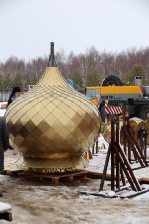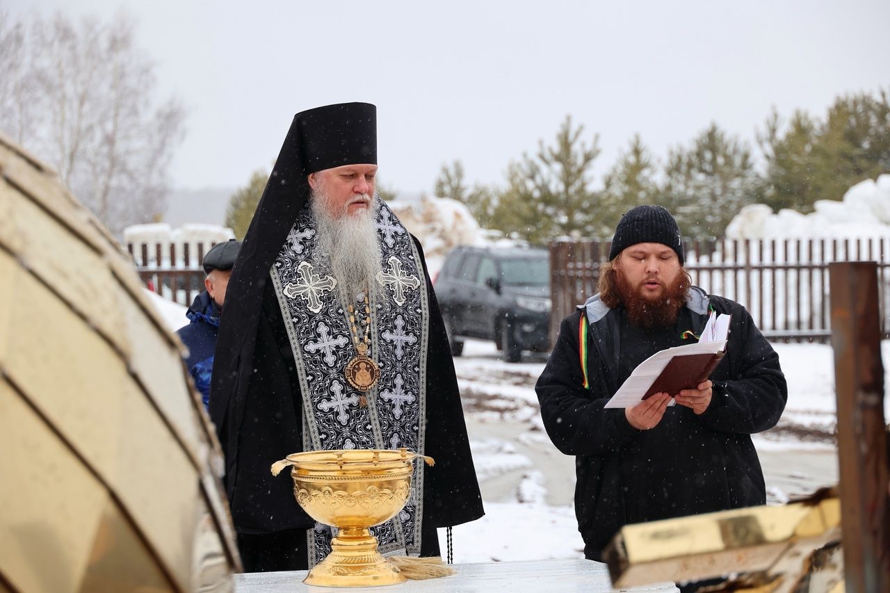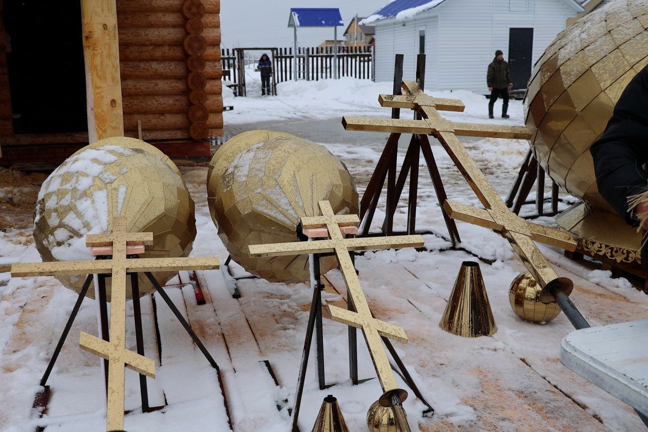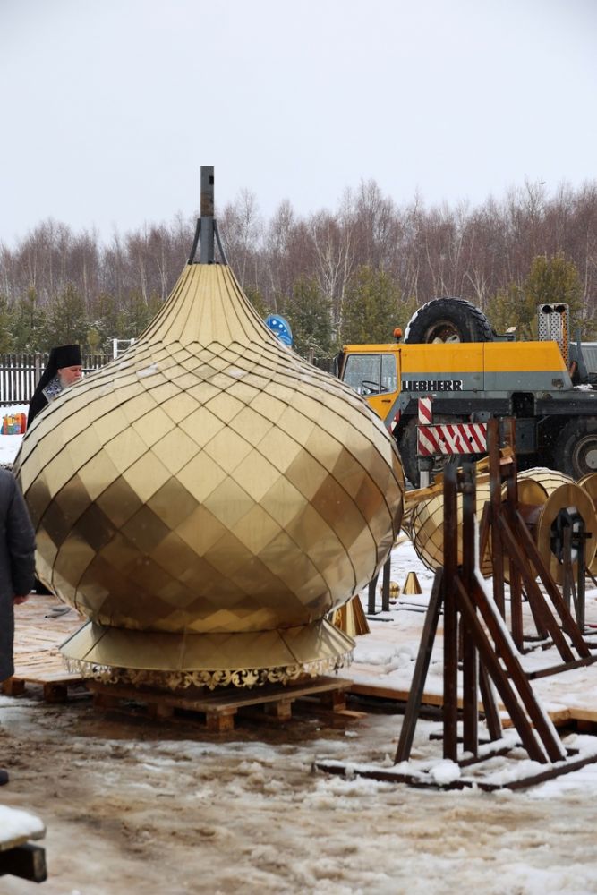 Епископ Феофан освятил кресты и купола для строящегося храма Владимирской иконы Божией Матери 1135