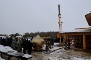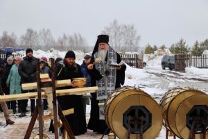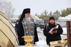 27 марта епископ Волжский и Сернурский Феофан освятил кресты и купола для храма Владимирской иконы Божией Матери, строящегося в микрорайоне Мамасево г. Волжска.