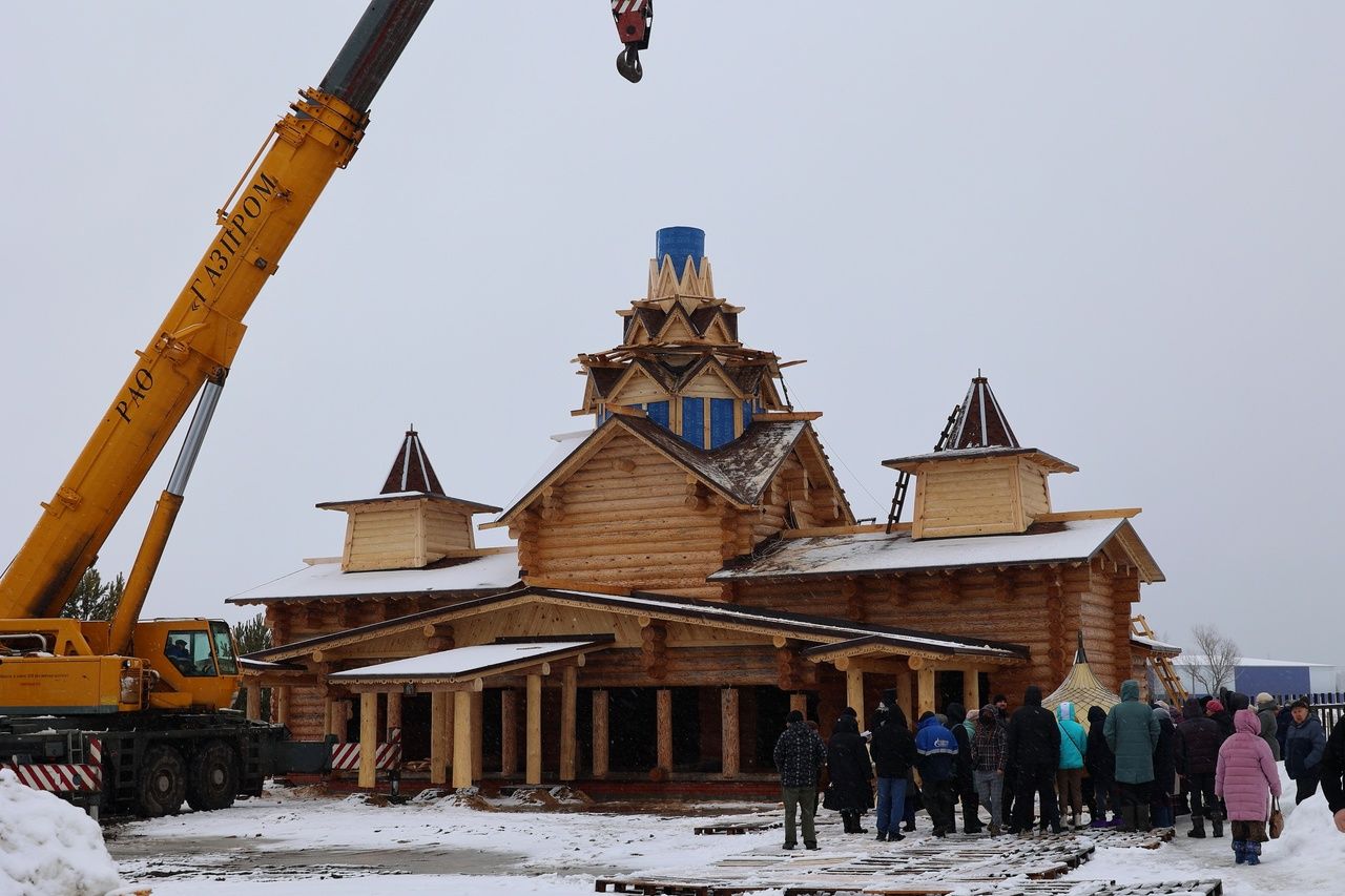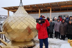 После освящения купола и кресты были подняты на кровлю храма и установлены.
