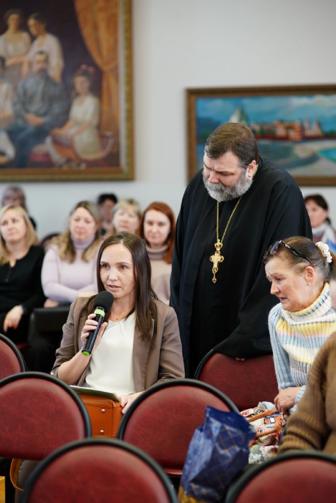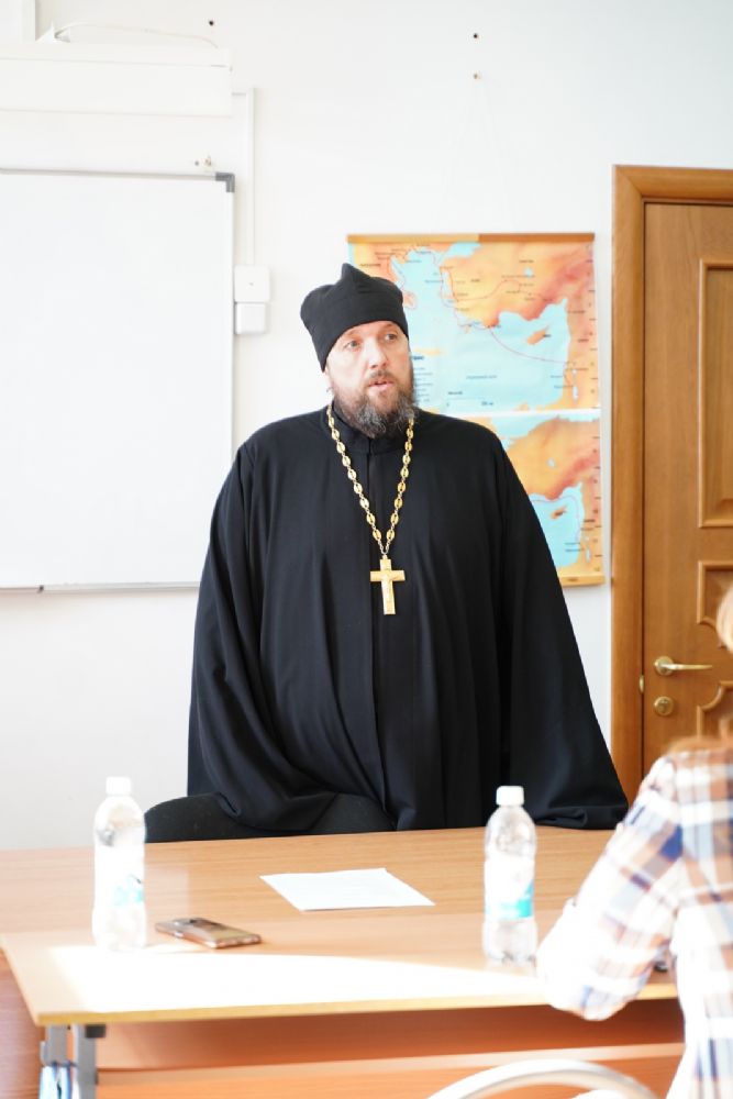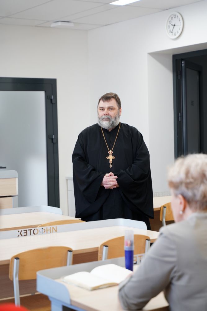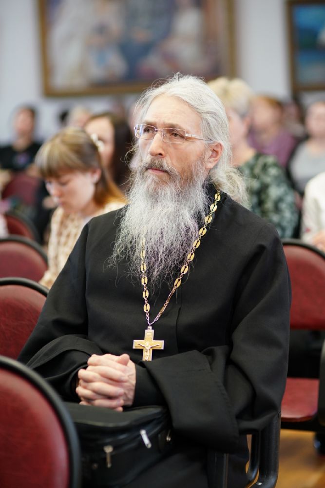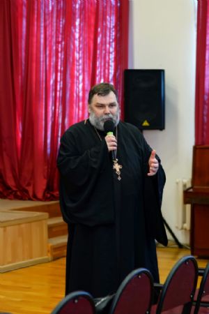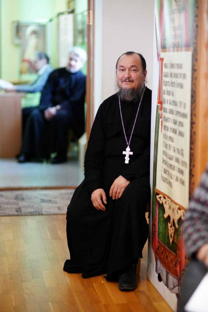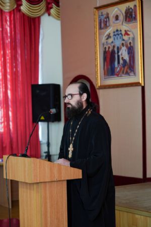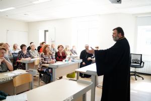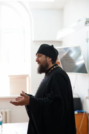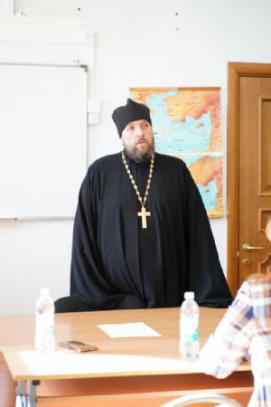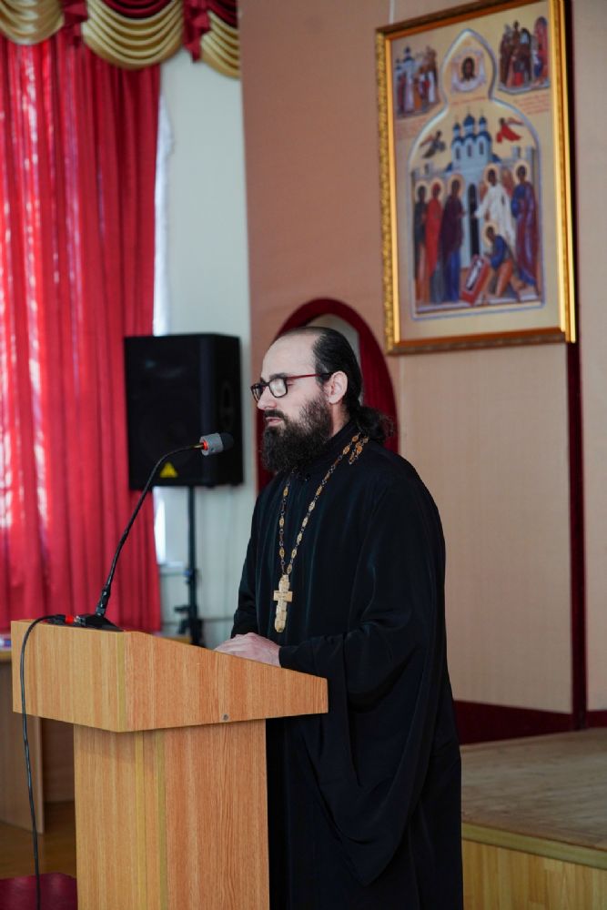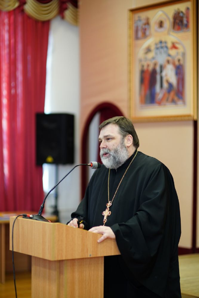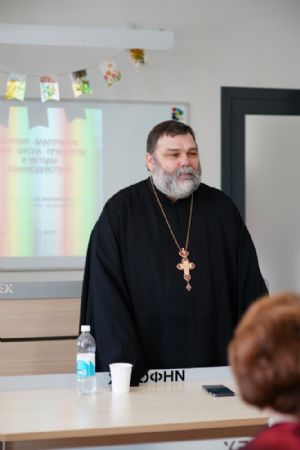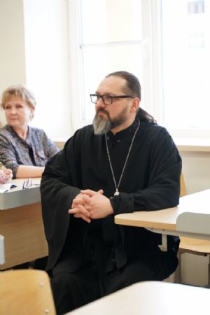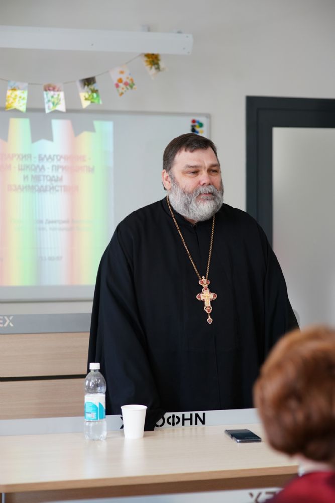 Иерей Димитрий Пономарев, кандидат богословия, штатный священник храма св. Петра Митрополита Московского, учитель ГБОУ СОШ № 367, ГБОУ лицей № 299, познакомил с особенностями реализации программы по внеурочной деятельности в рамках модуля ОПК в начальной школе, содержанием и наполнением уроков по ОДНКНР и занятий по внеурочной деятельности; со способами взаимодействия центров духовной культуры и образования со школами Санкт-Петербурга.