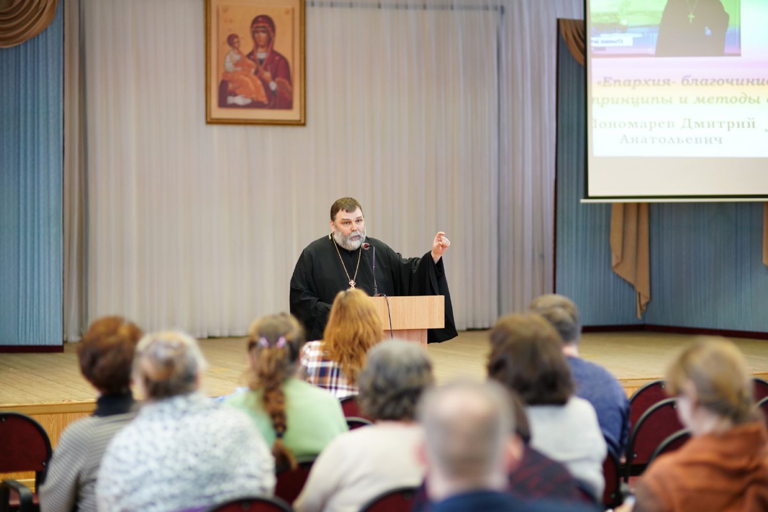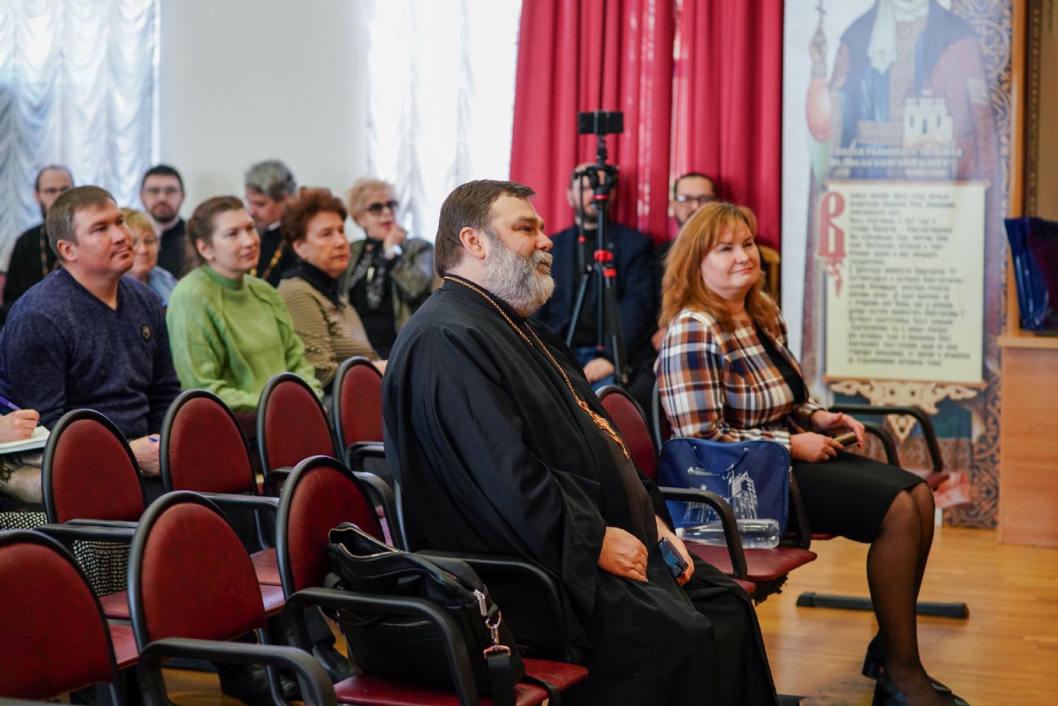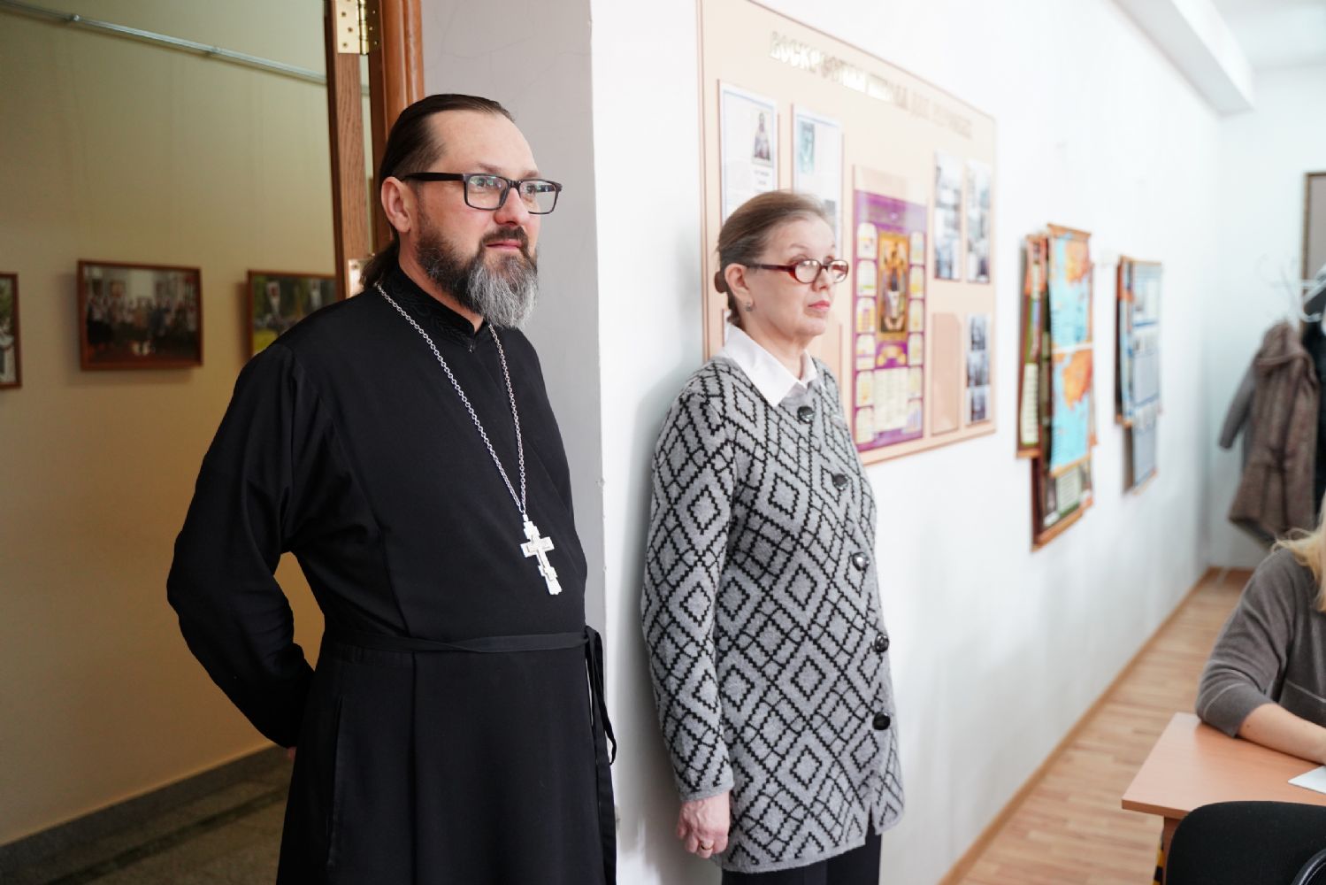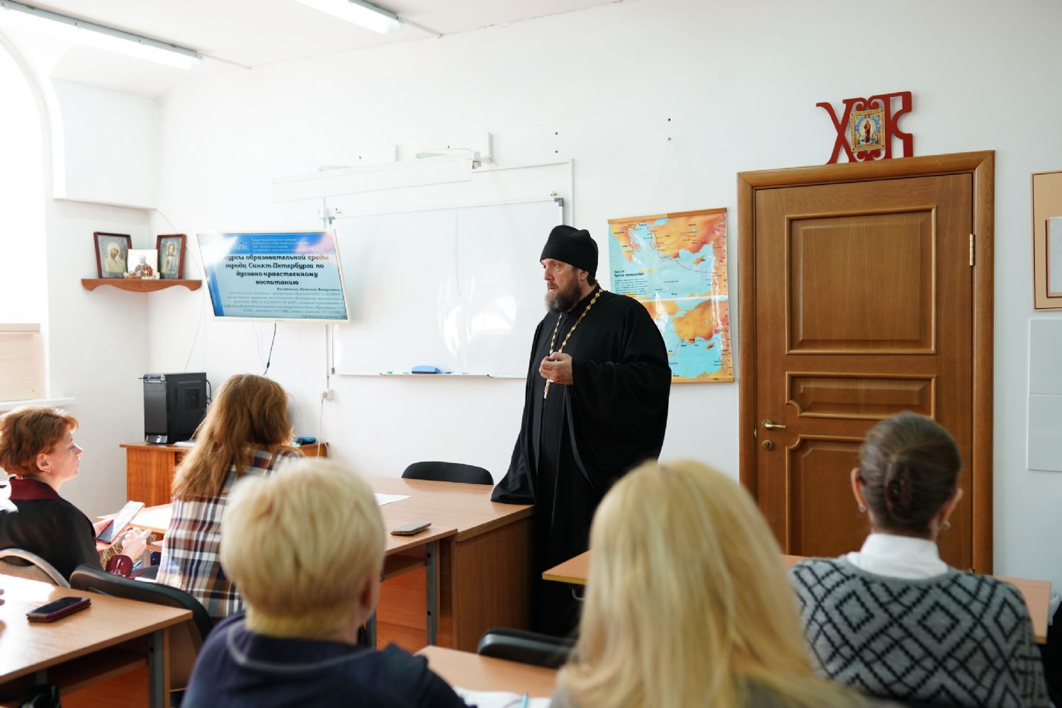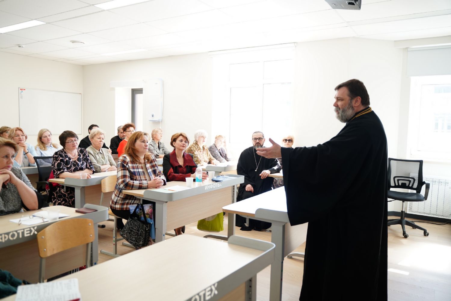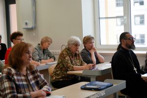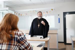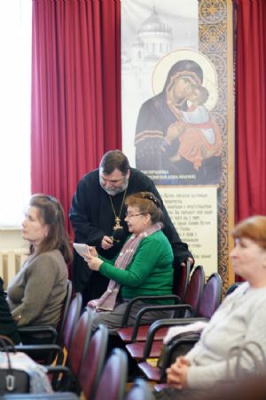 Иерей Димитрий Пономарев, кандидат богословия, штатный священник храма св. Петра Митрополита Московского, учитель ГБОУ СОШ № 367, ГБОУ лицей № 299, познакомил с особенностями реализации программы по внеурочной деятельности в рамках модуля ОПК в начальной школе, содержанием и наполнением уроков по ОДНКНР и занятий по внеурочной деятельности; со способами взаимодействия центров духовной культуры и образования со школами Санкт-Петербурга.