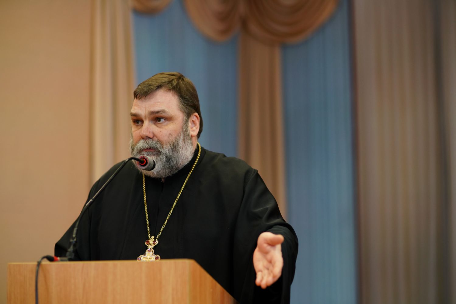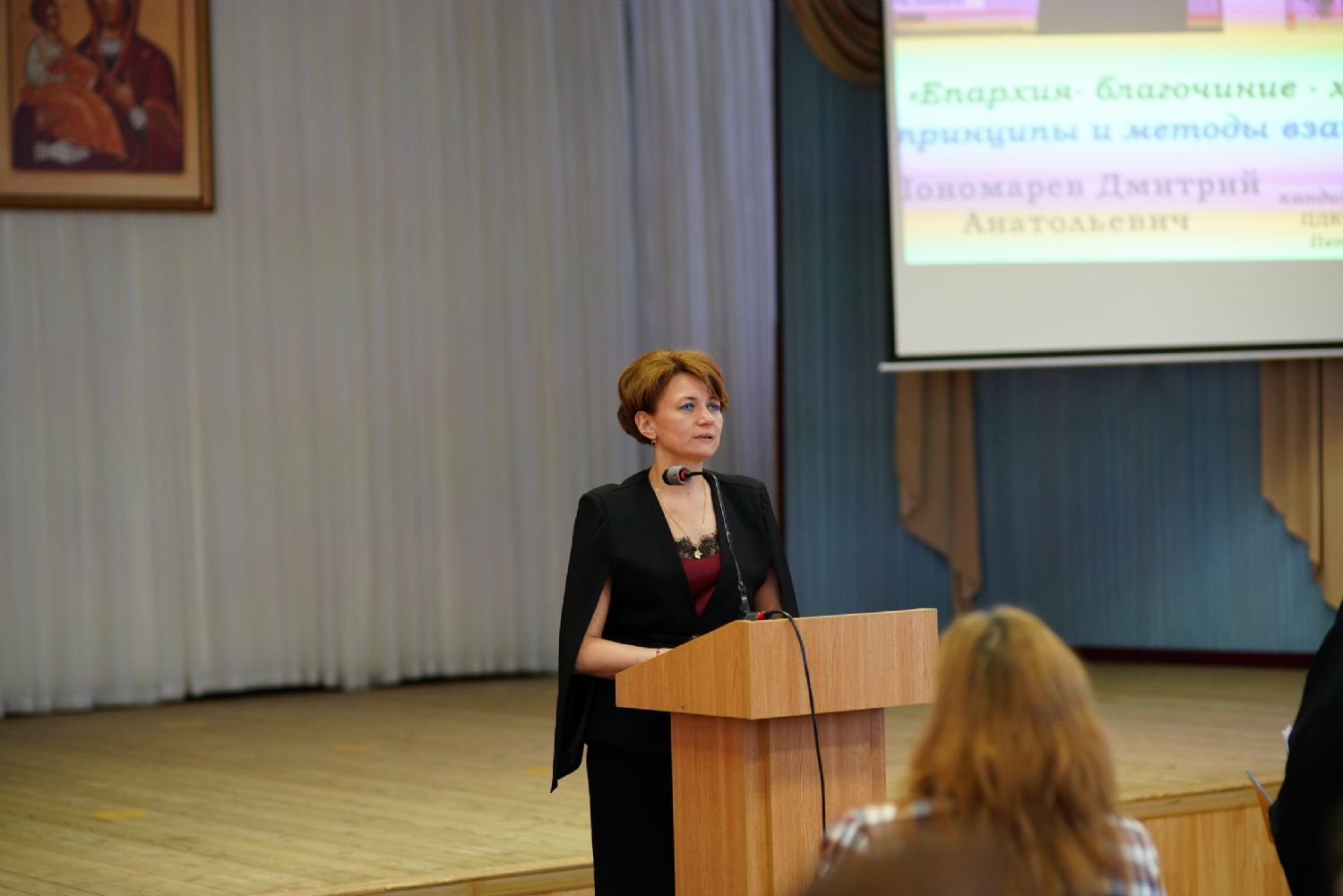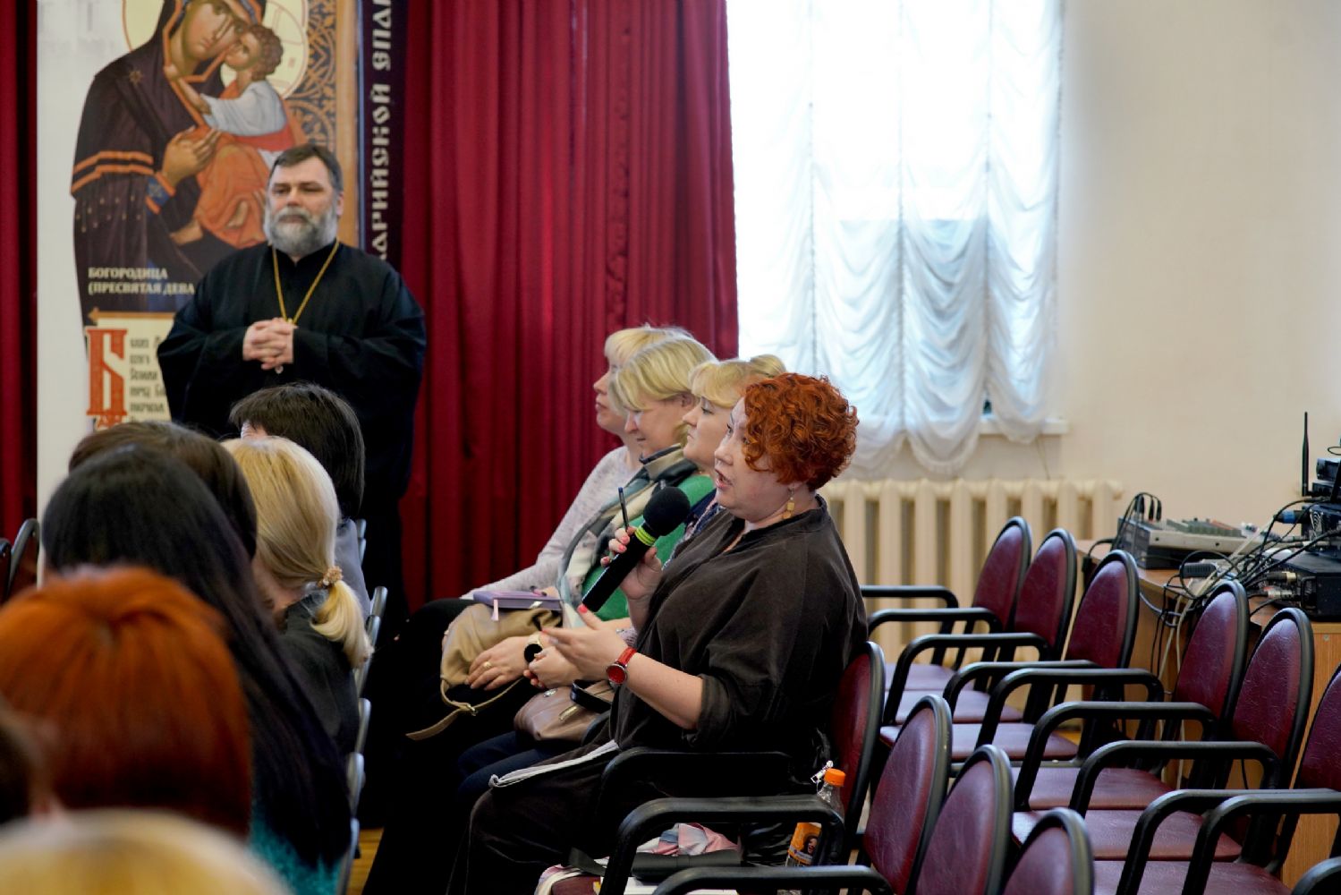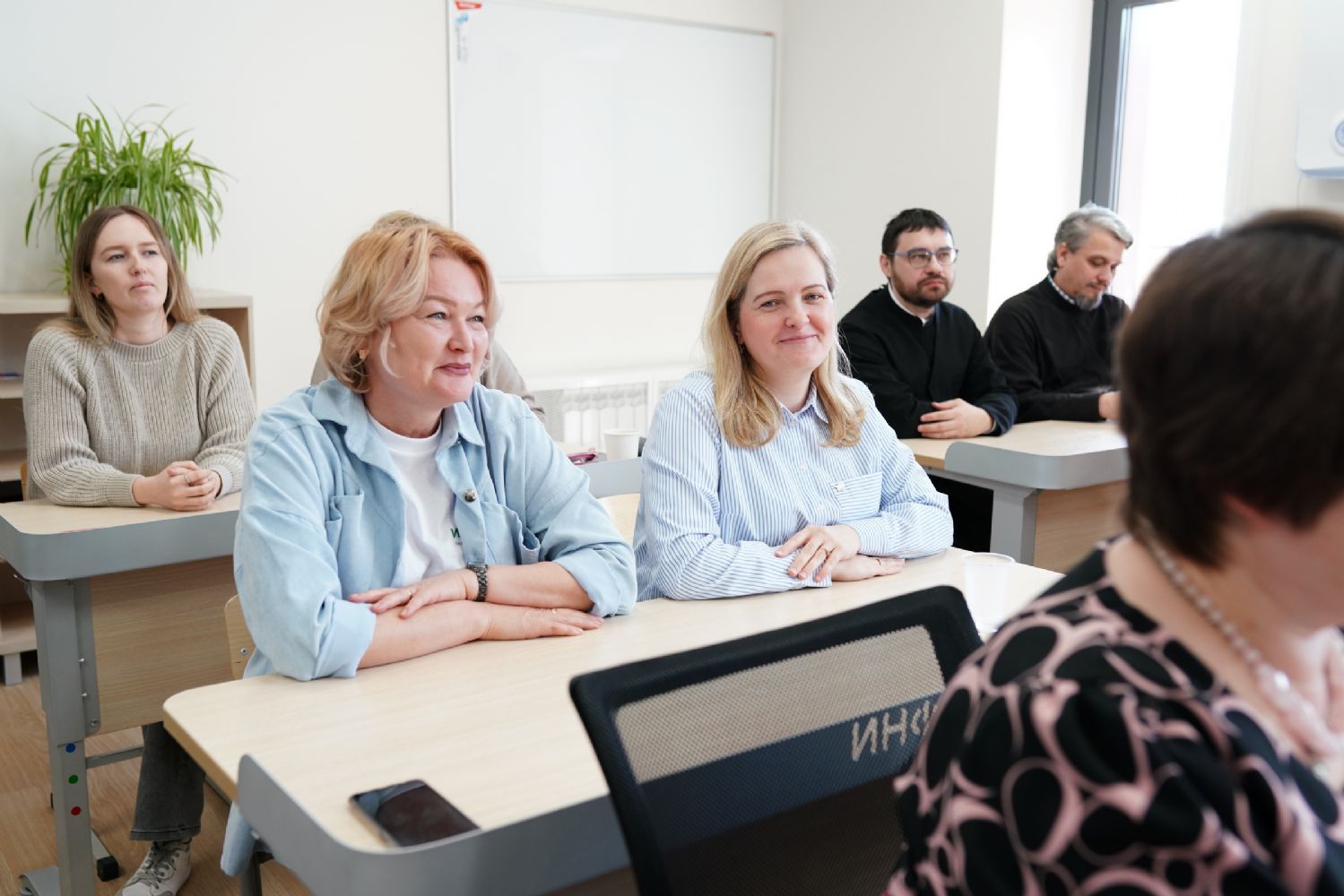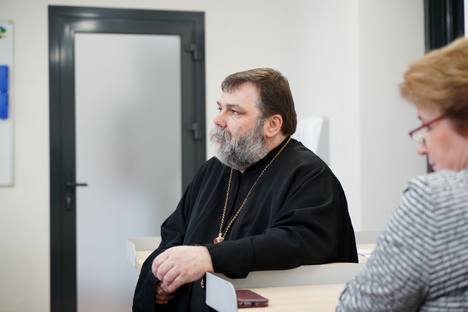 Иерей Димитрий Пономарев, кандидат богословия, штатный священник храма св. Петра Митрополита Московского, учитель ГБОУ СОШ № 367, ГБОУ лицей № 299, познакомил с особенностями реализации программы по внеурочной деятельности в рамках модуля ОПК в начальной школе, содержанием и наполнением уроков по ОДНКНР и занятий по внеурочной деятельности; со способами взаимодействия центров духовной культуры и образования со школами Санкт-Петербурга.
