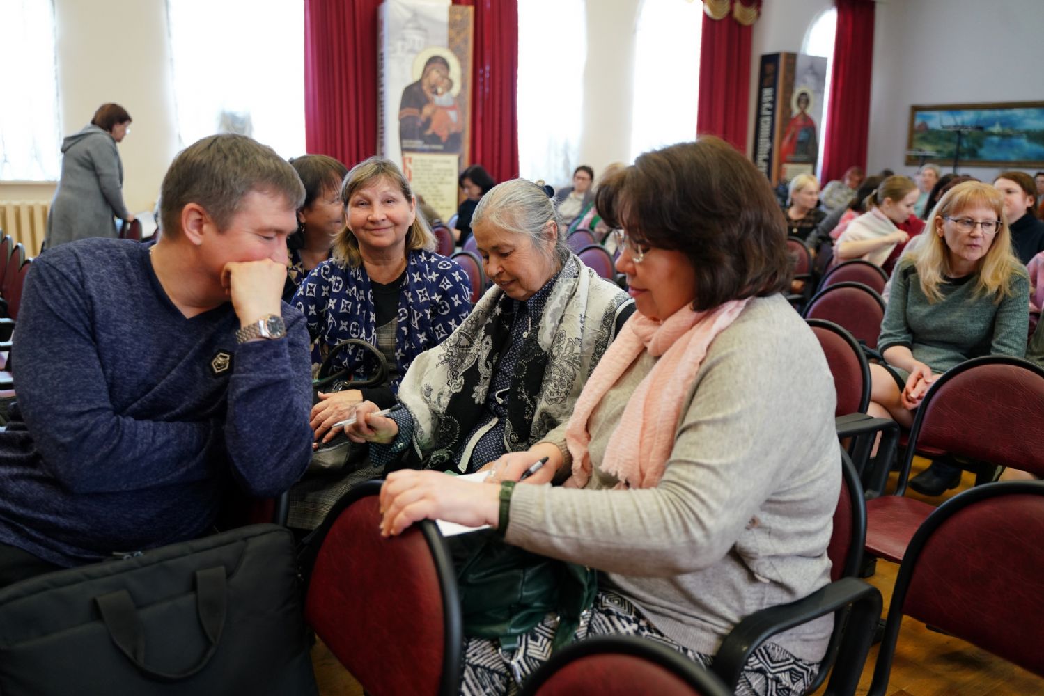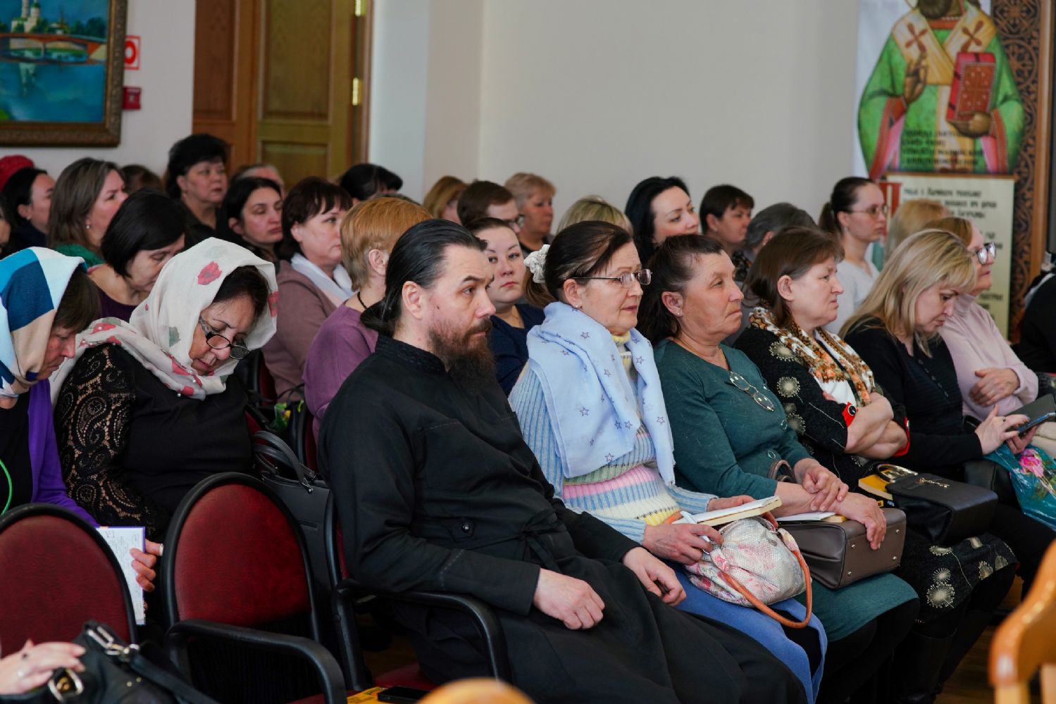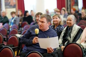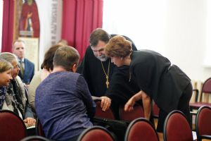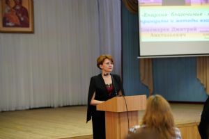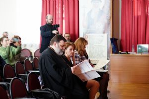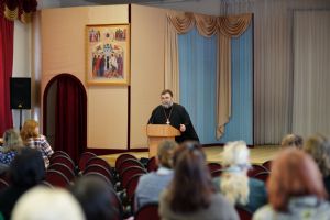 Во второй половине дня в аудиторию Православного центра Йошкар-Олинской епархии на встречу с нашими гостями пришли заместители директоров по учебно-воспитательной работе образовательных организаций г. Йошкар-Олы. Выступления педагогов Санкт-Петербурга вызвали живой отклик у участников встречи, особенно их заинтересовали авторские программы и разработки уроков по ОПК священника Димитрия Пономарева, а также модель формирования духовно-нравственного пространства в ГБОУ СОШ № 367 Фрунзенского района Санкт-Петербурга, с которой завучей познакомила Соколова Ирина Геннадьевна, директор данной школы.